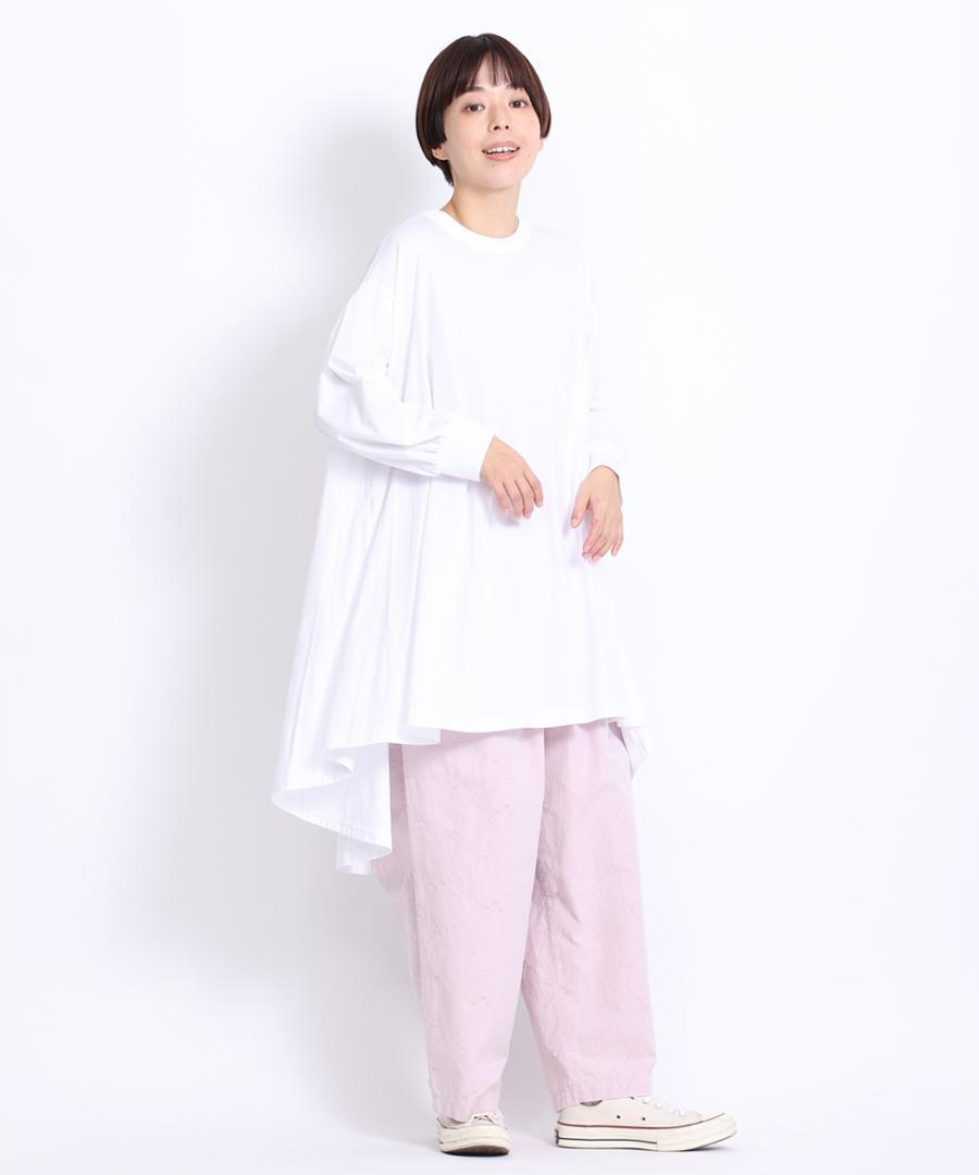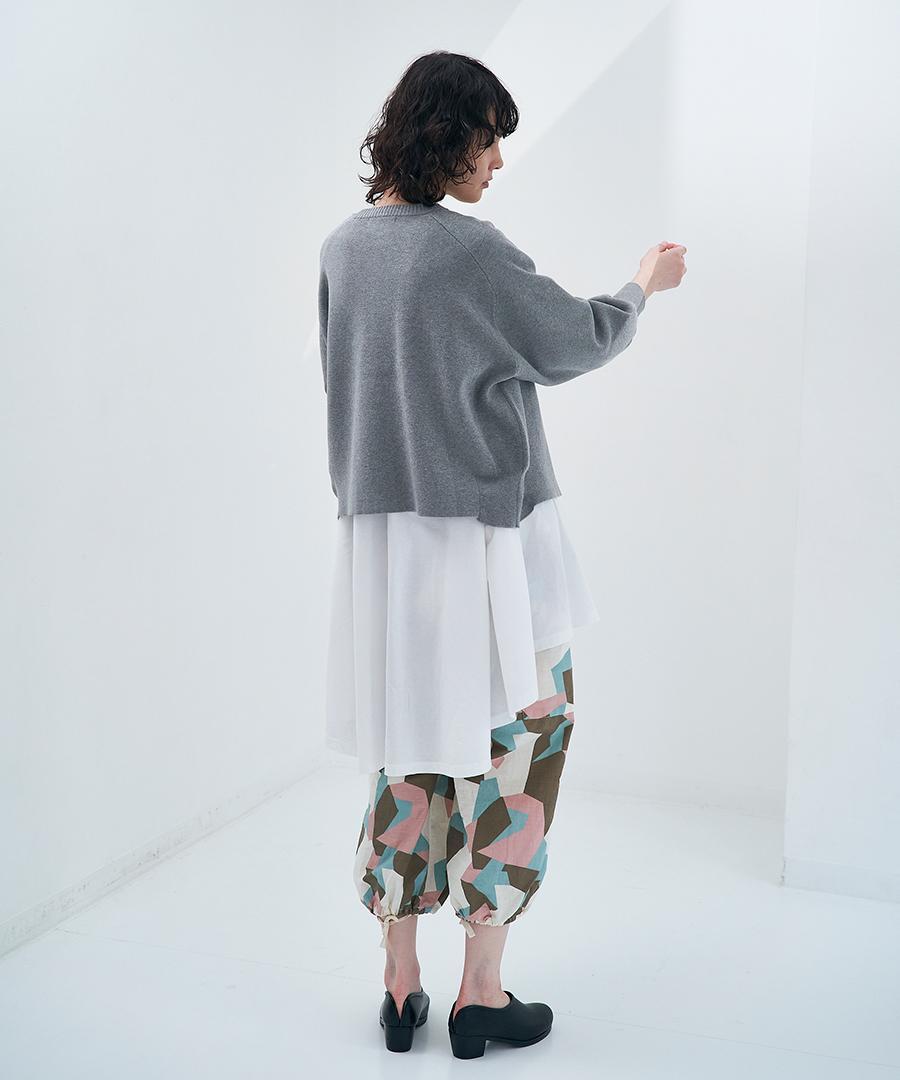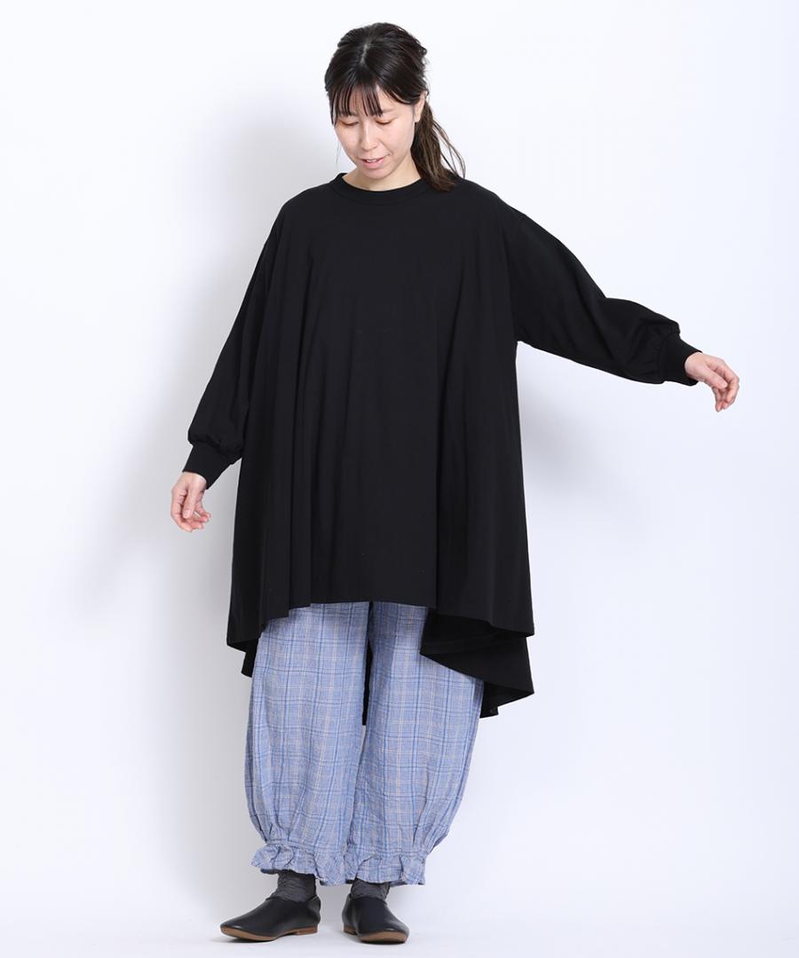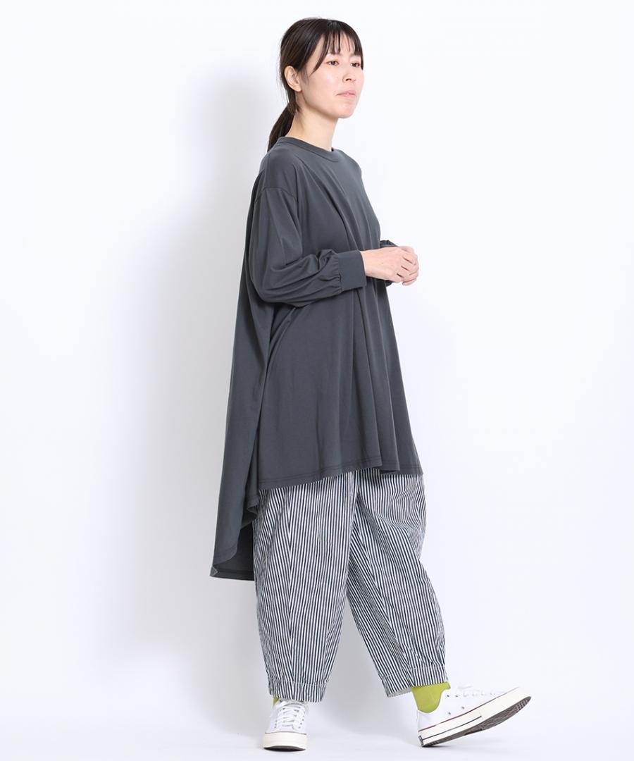 チュニック丈なので、ボトムと合わせたゆったりめのスタイリングや、スカートと合わせてワンピース風なスタイリングなど様々なアレンジをお楽しみいただけます。