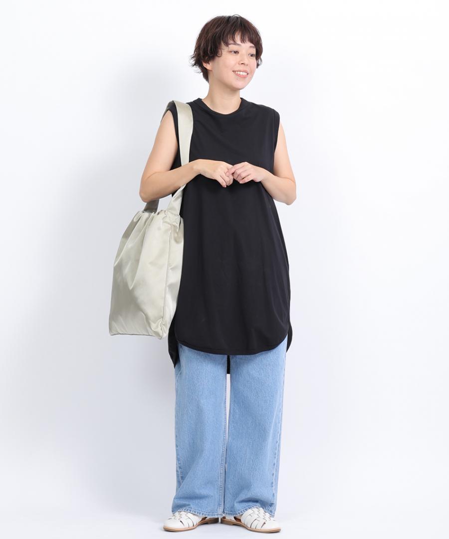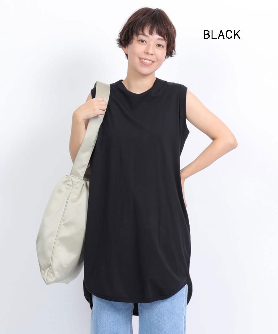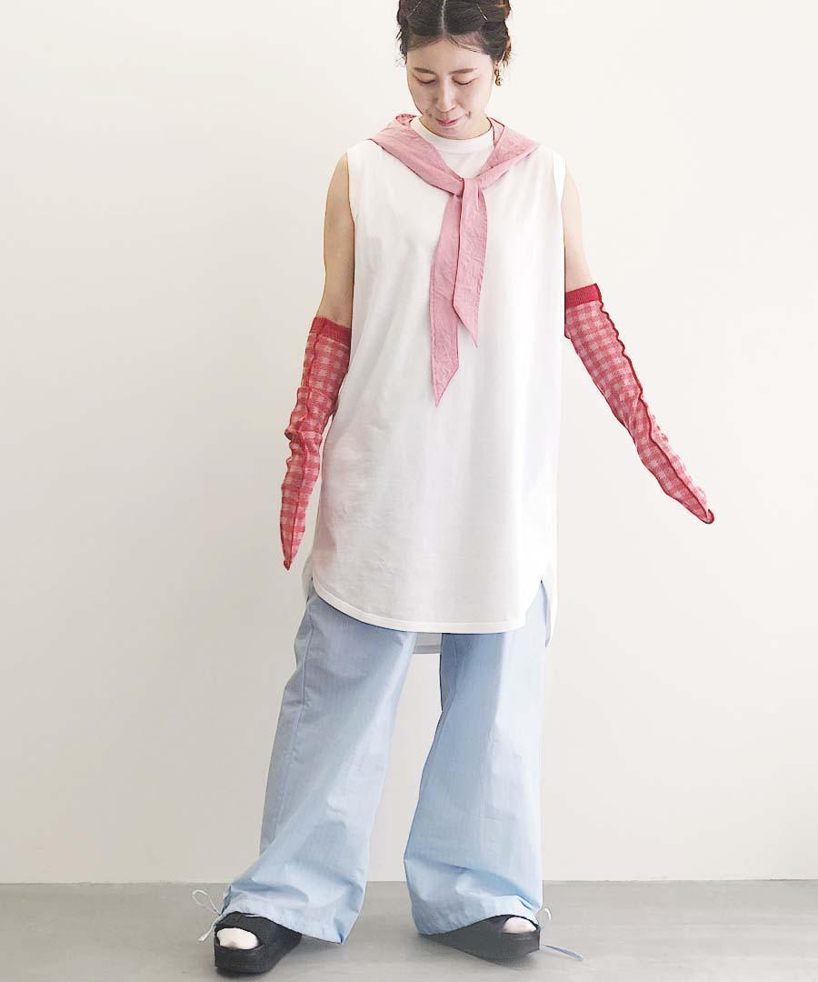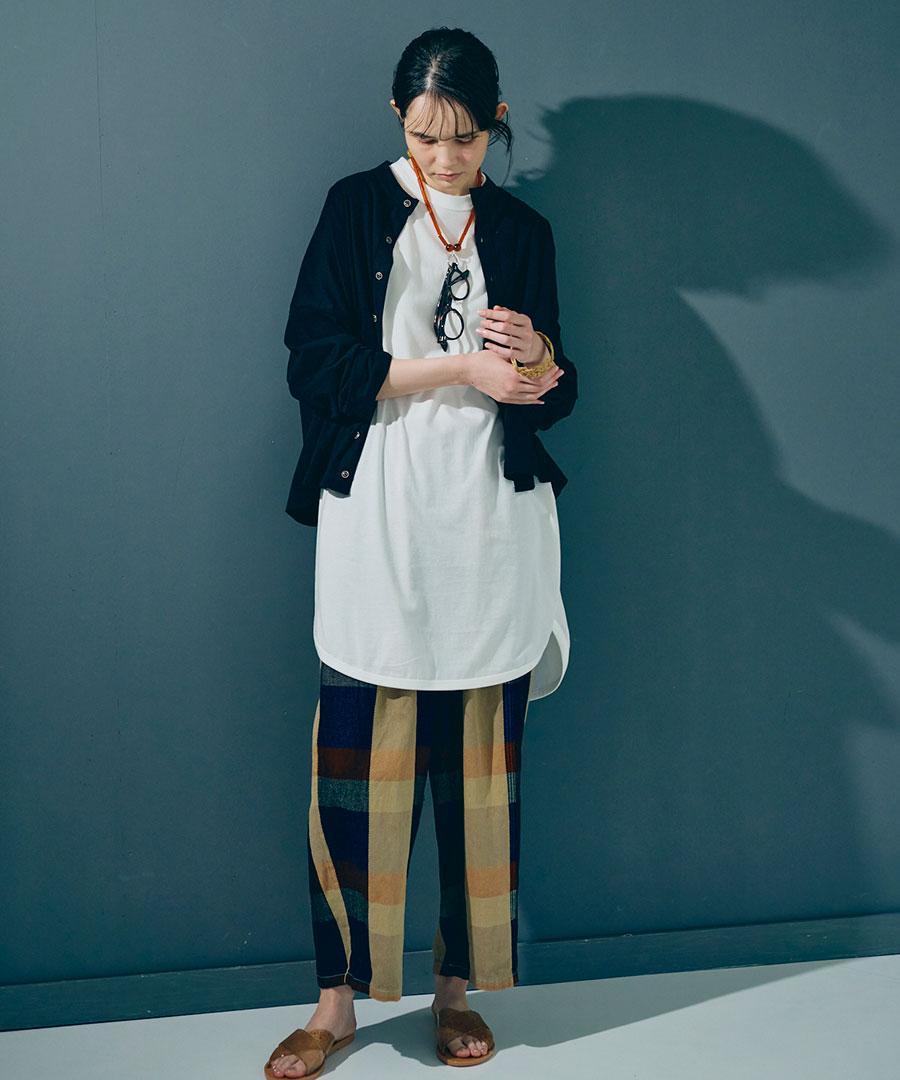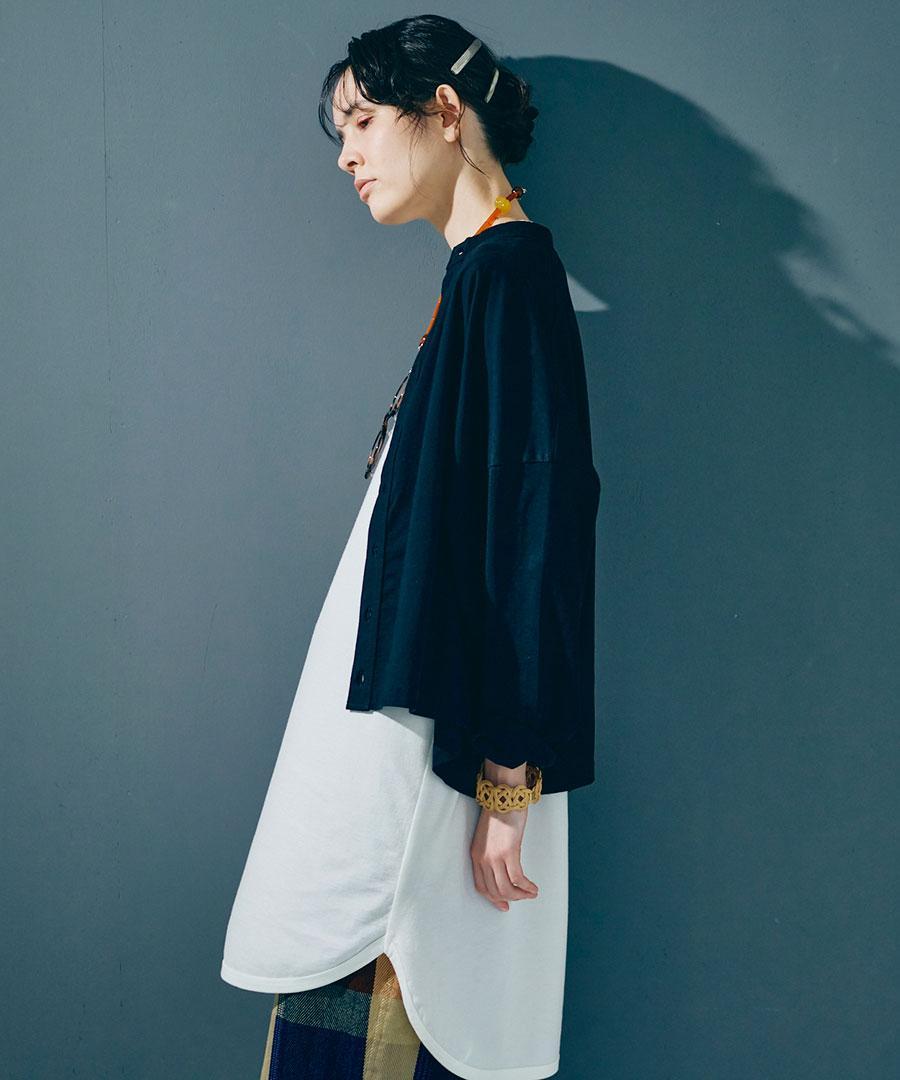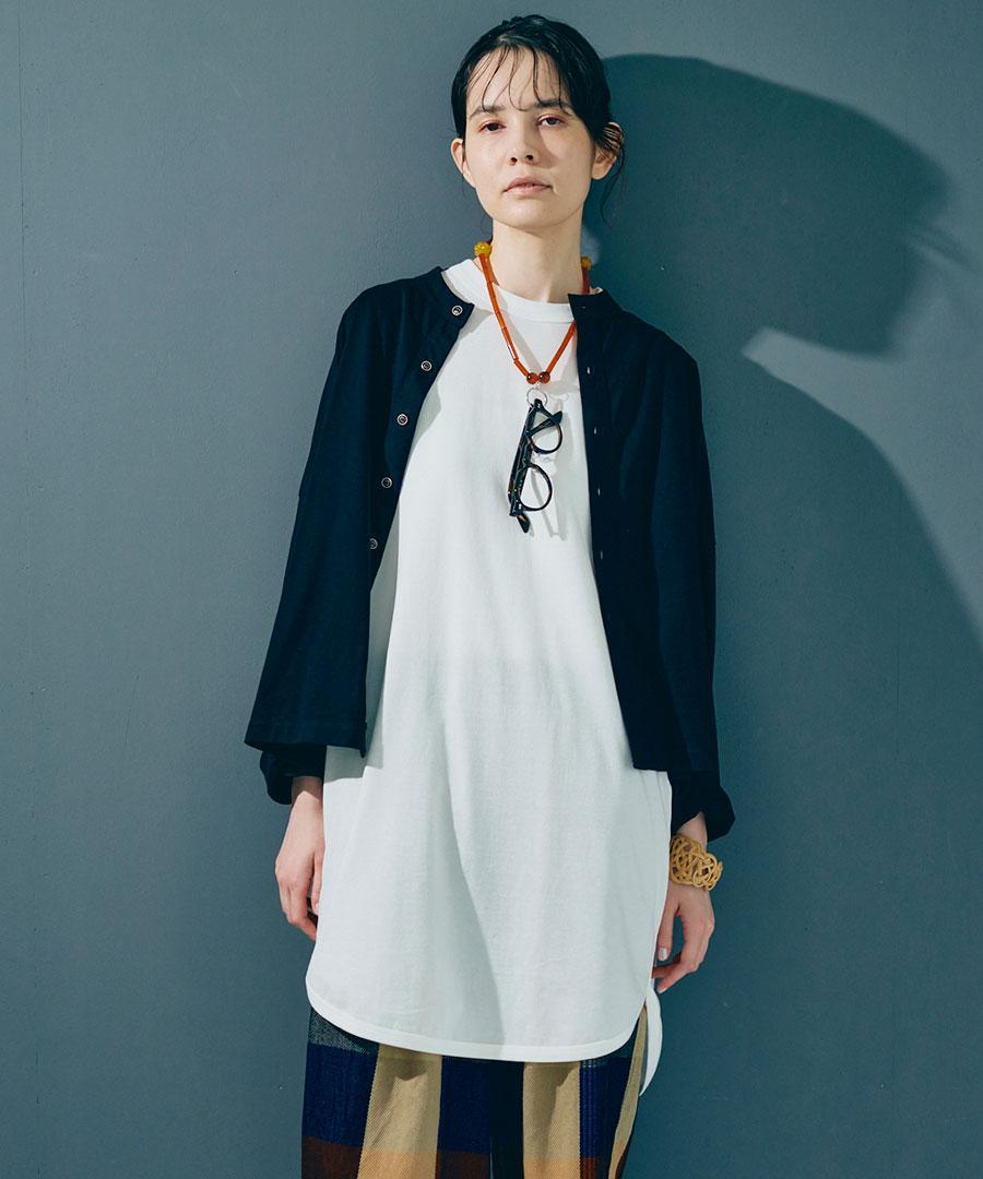 モデル着画のように、Tシャツの下に重ねてインナーワンピースのように着るのもおすすめですよ。