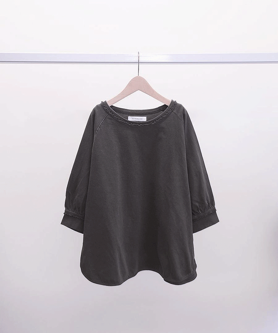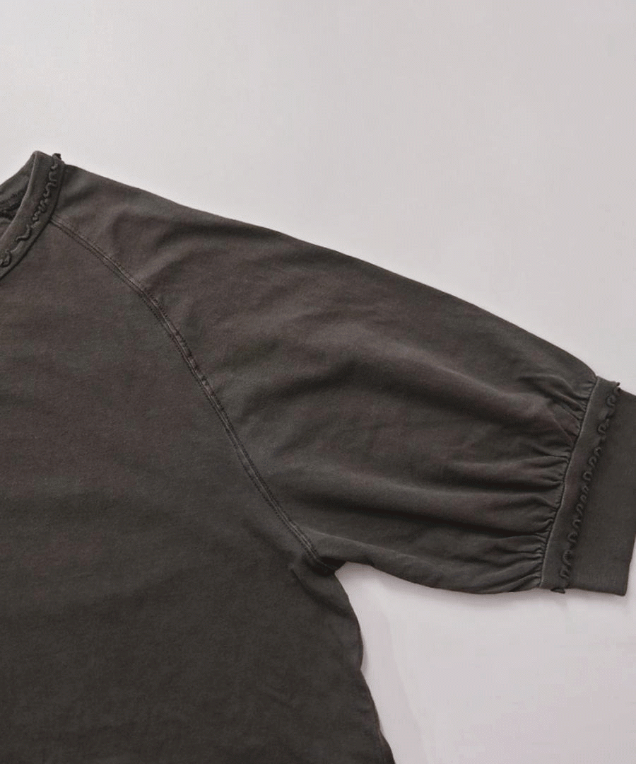 ピグメント染めを施した6分袖Tシャツ。
