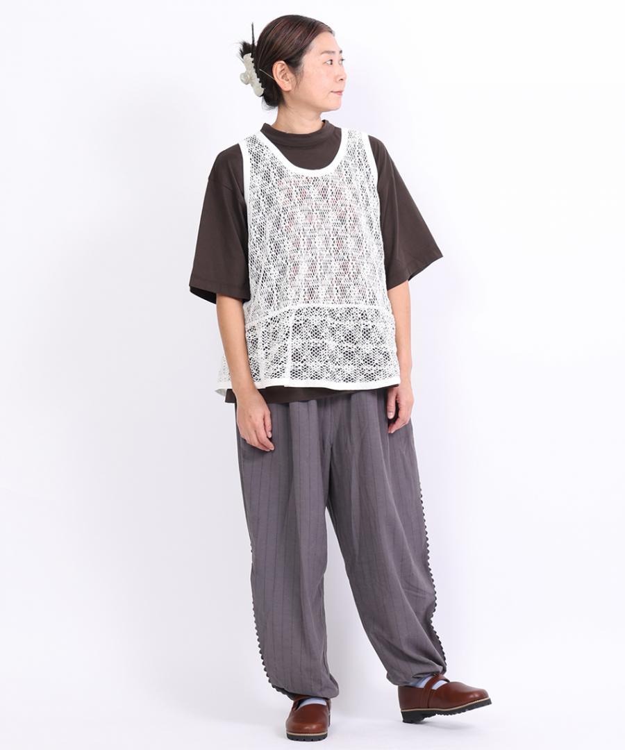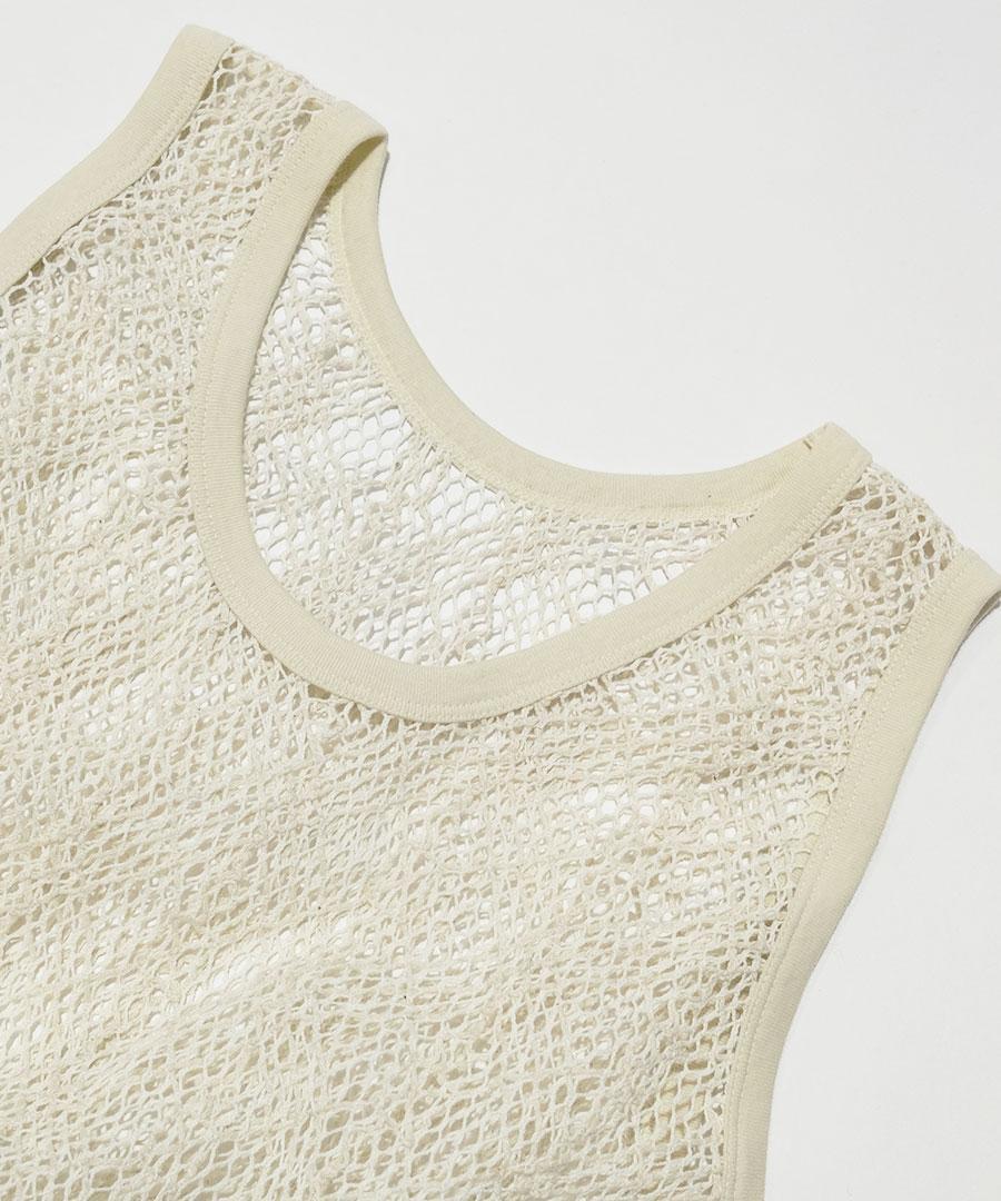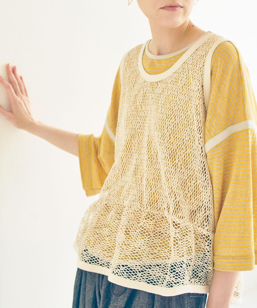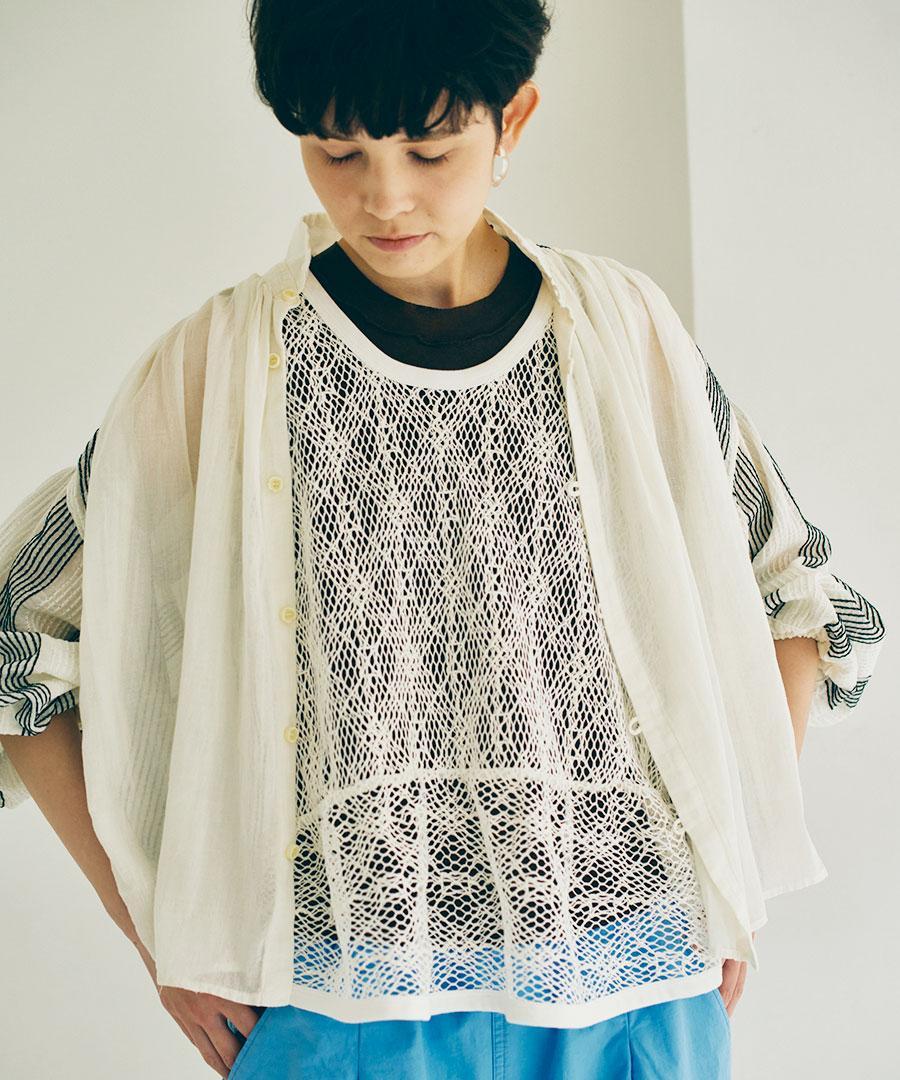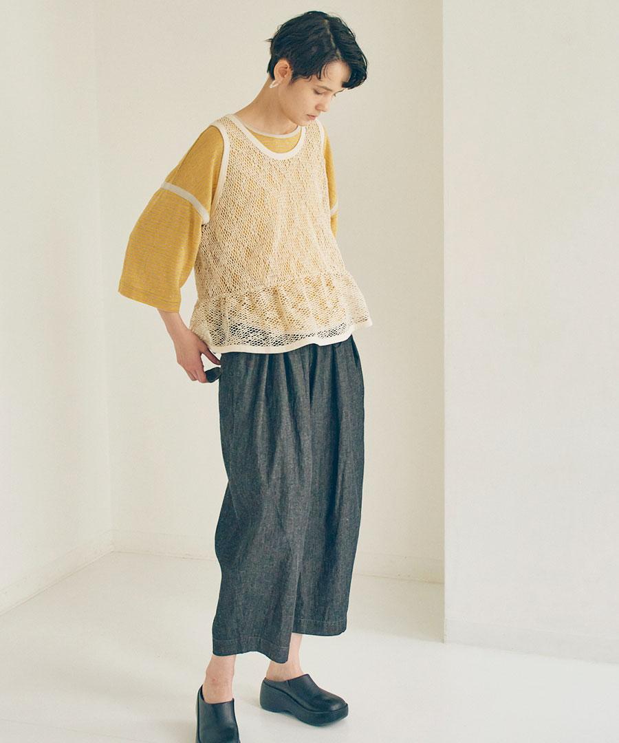 麻特有の粗野な糸節とムラ感が生む、表情豊かなメッシュ素材です。
