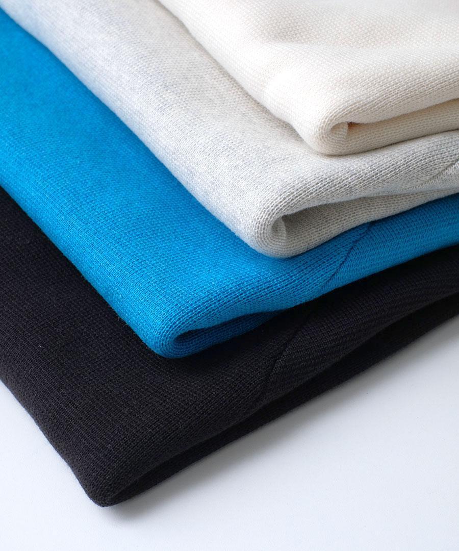 ミラノリブ素材は通常のリブ素材に比べフラットな表面が特徴で、程よく肉厚で型崩れがしにくく綺麗なシルエットなのが特徴です。