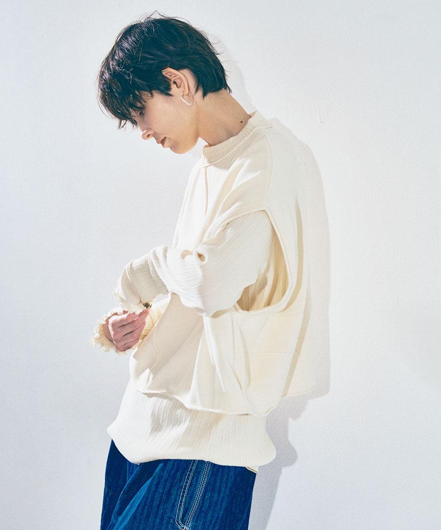 しっかりとした編み地とリブの組み合わせで丸みあるシルエットが特徴です。
