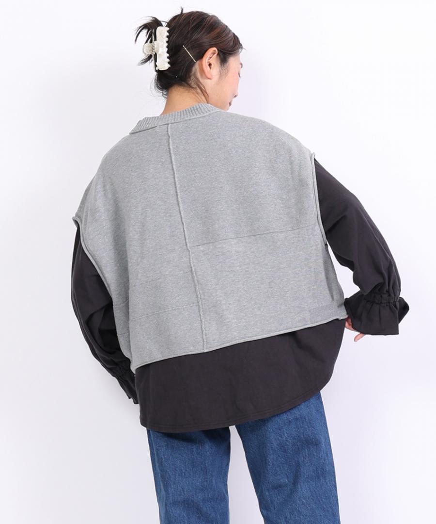 身幅ゆったりでプルオーバー感覚で着られるベストです。