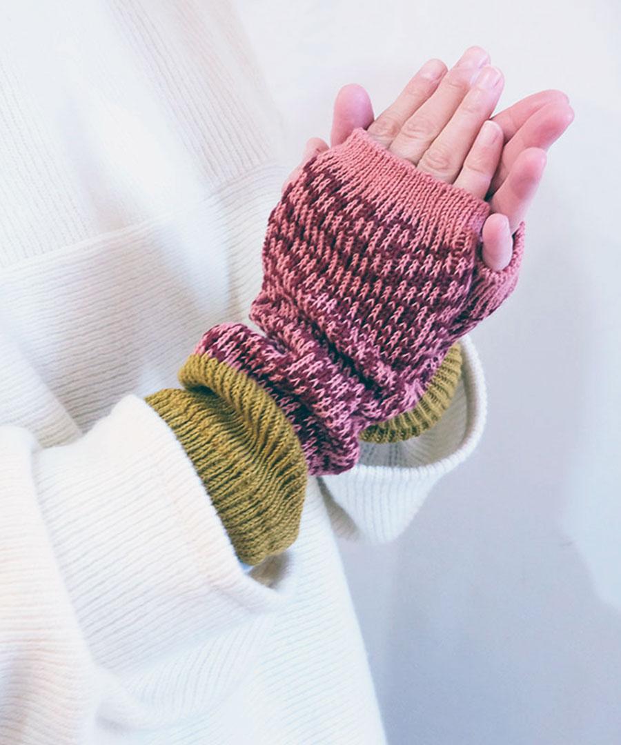 コットンベースにアクリルウールの柄糸でふんわりさせたローゲージの2型。