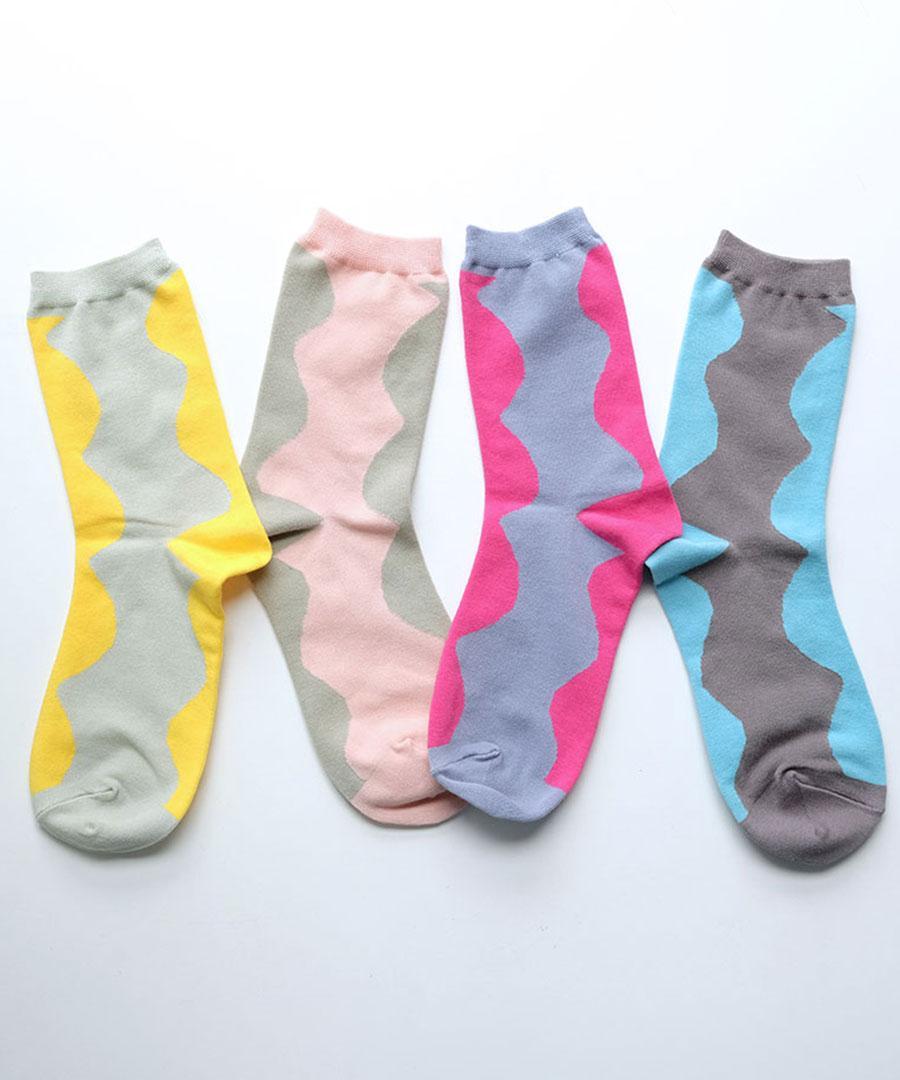 ハイゲージで薄手に仕上げた配色の靴下。強撚タッチのコットンで少しドライな触り心地。