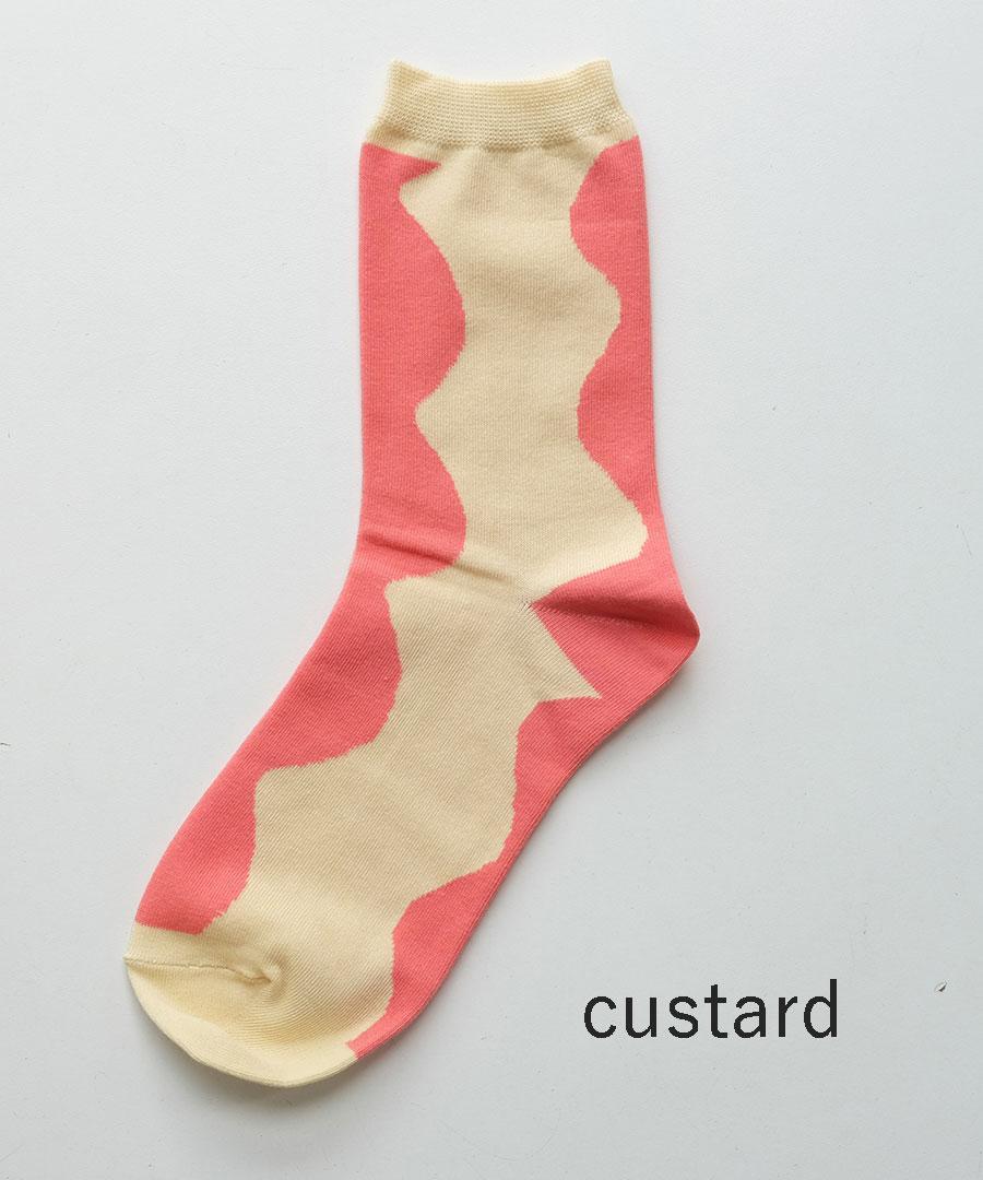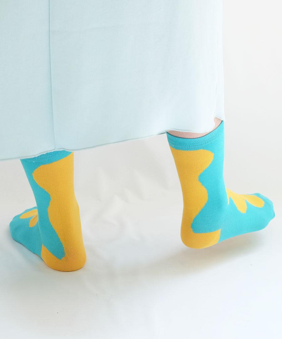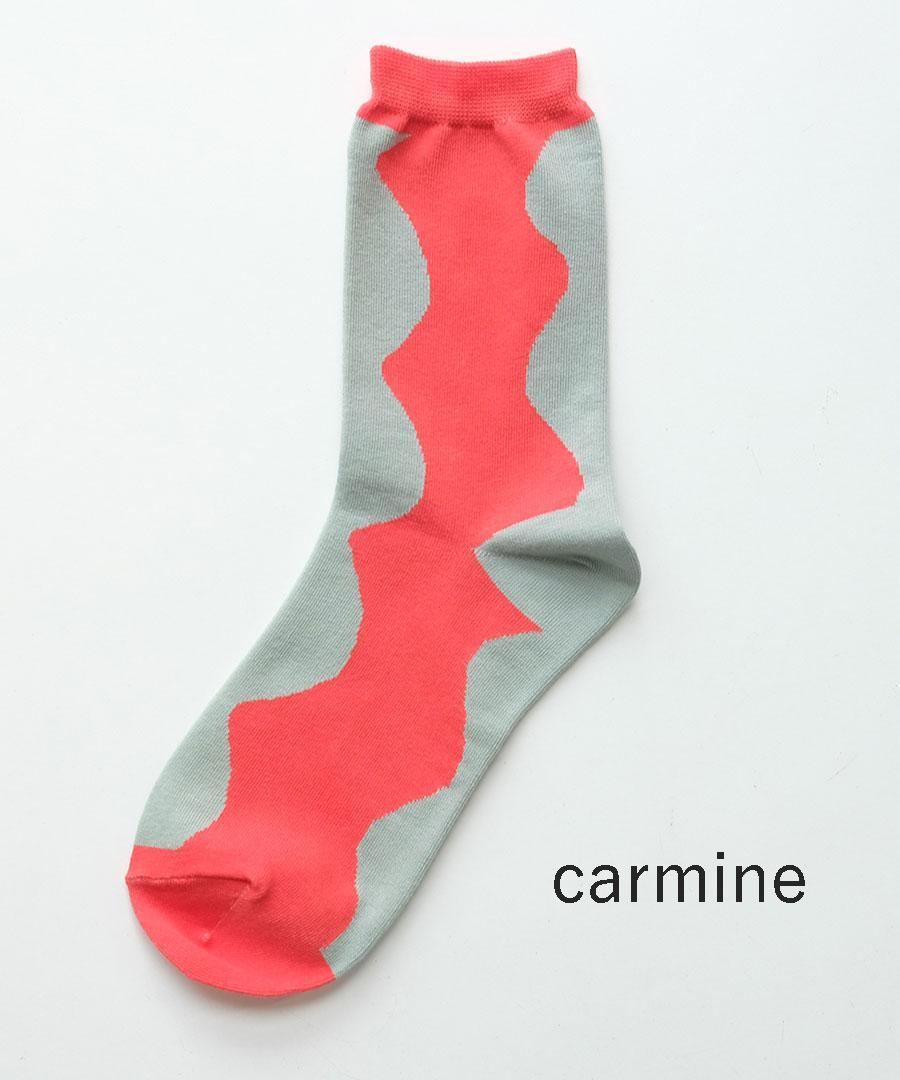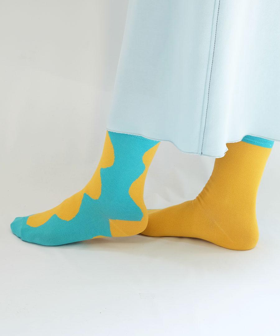 ハイゲージで薄手に仕上げた配色の靴下。強撚タッチのコットンで少しドライな触り心地。