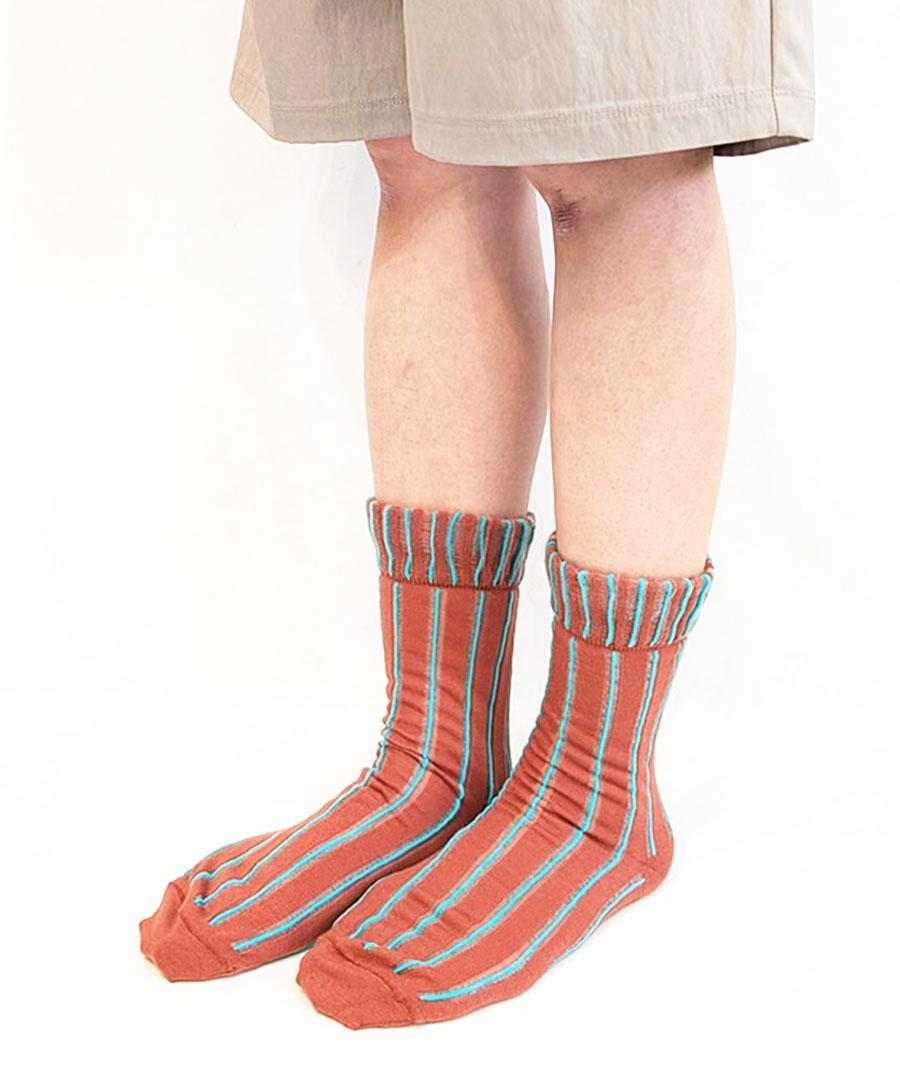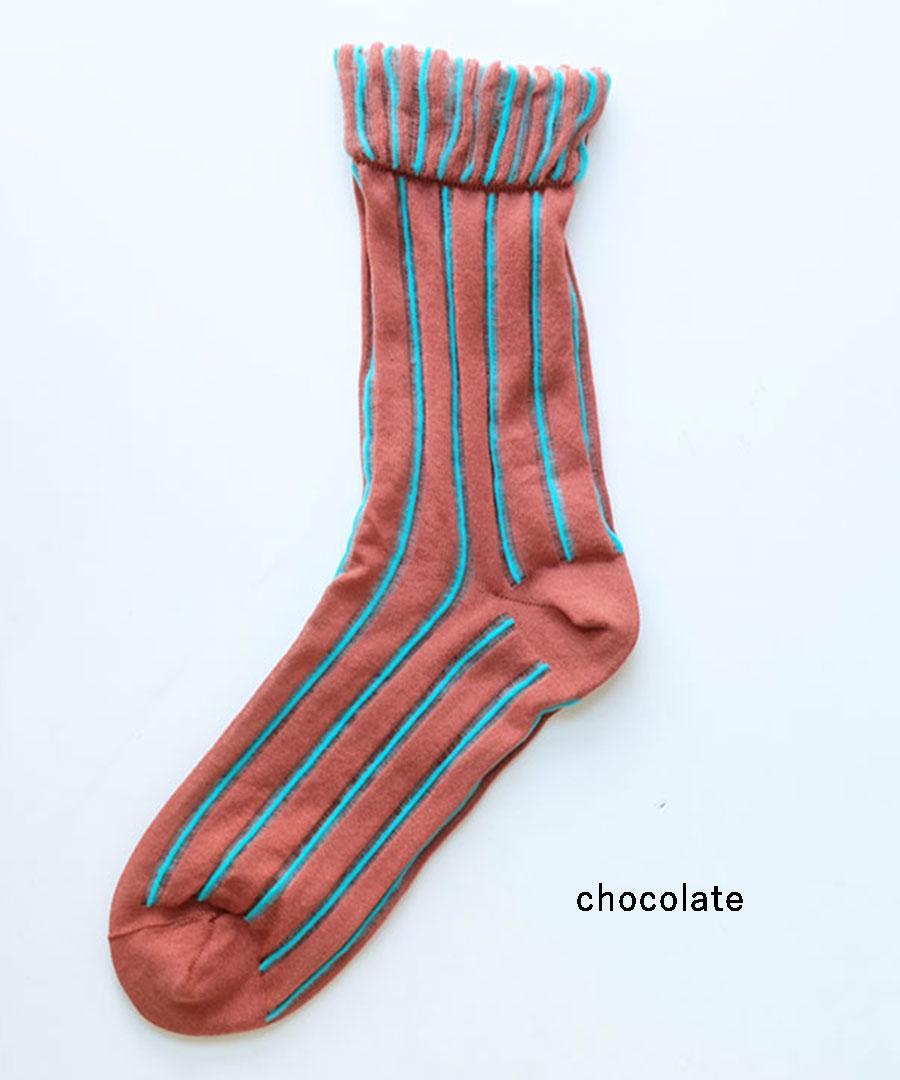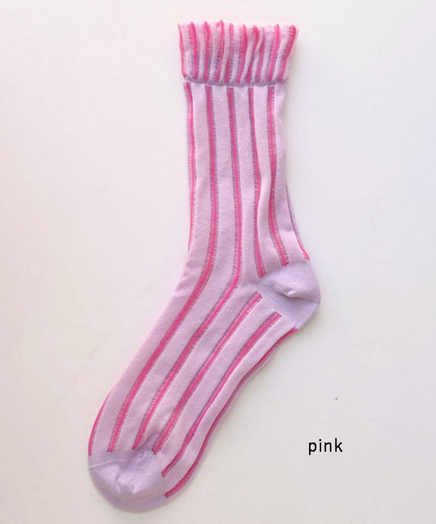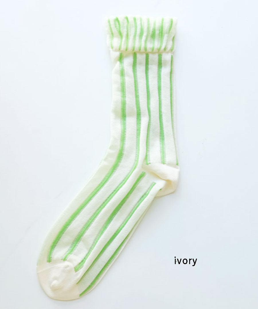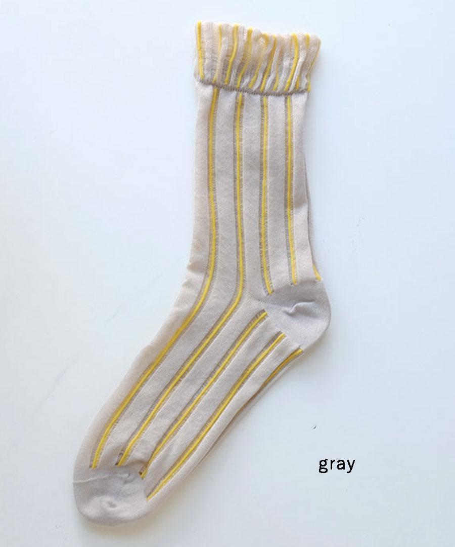 コットンベースにストライプをテグスですけさせたシアーソックス。