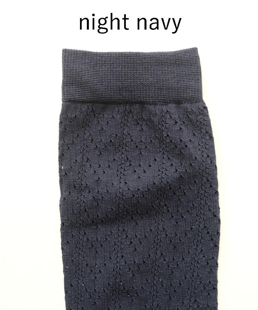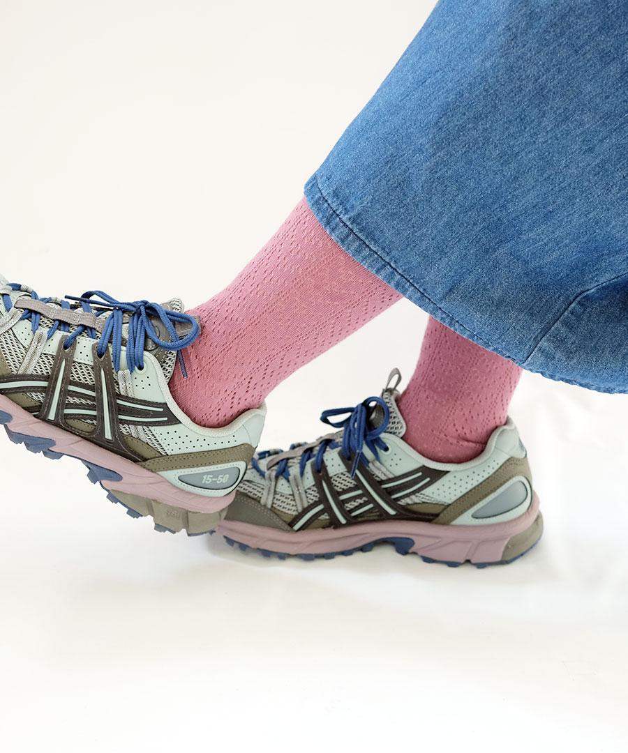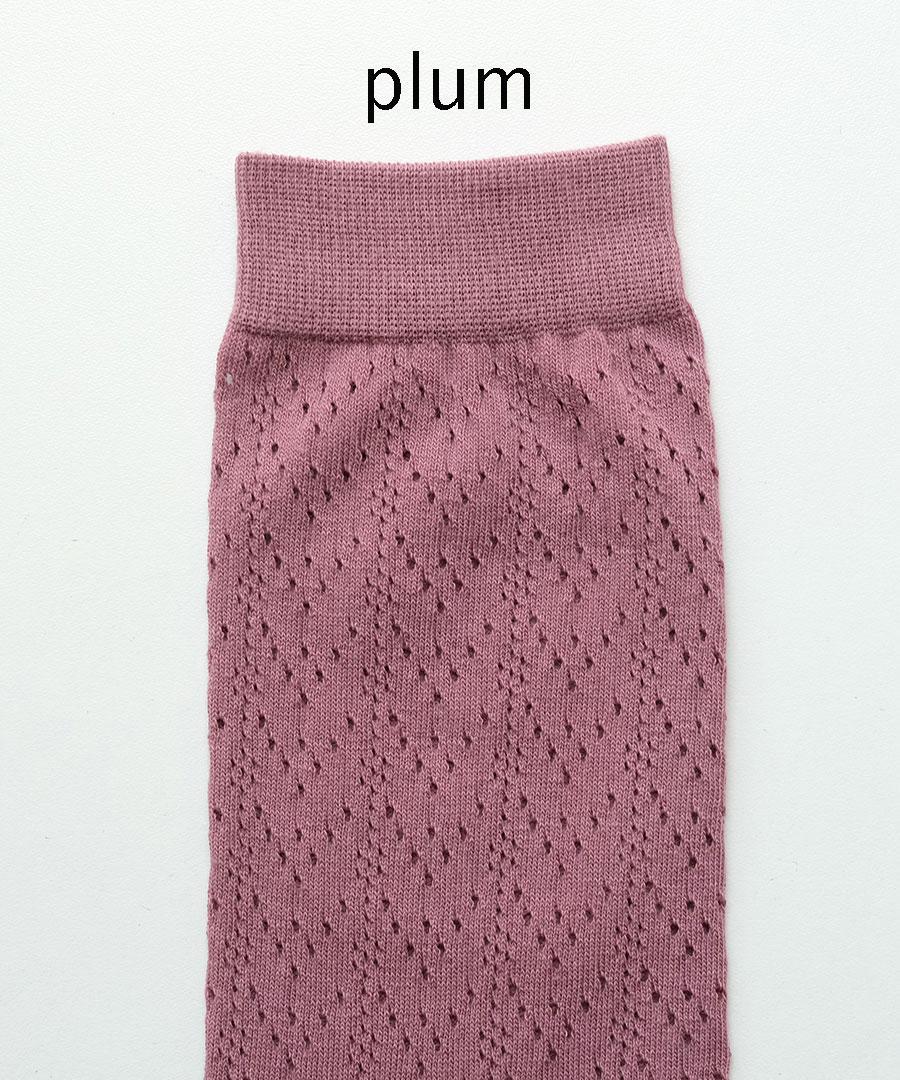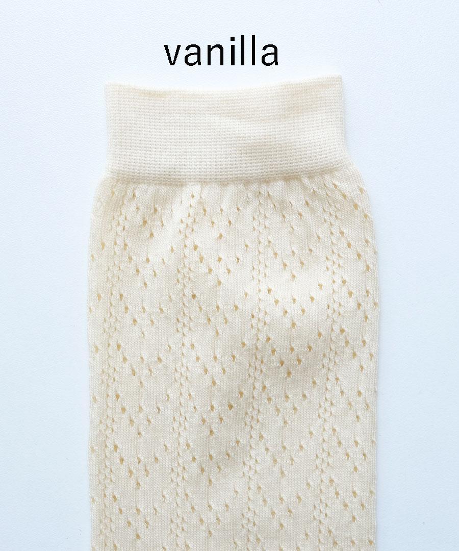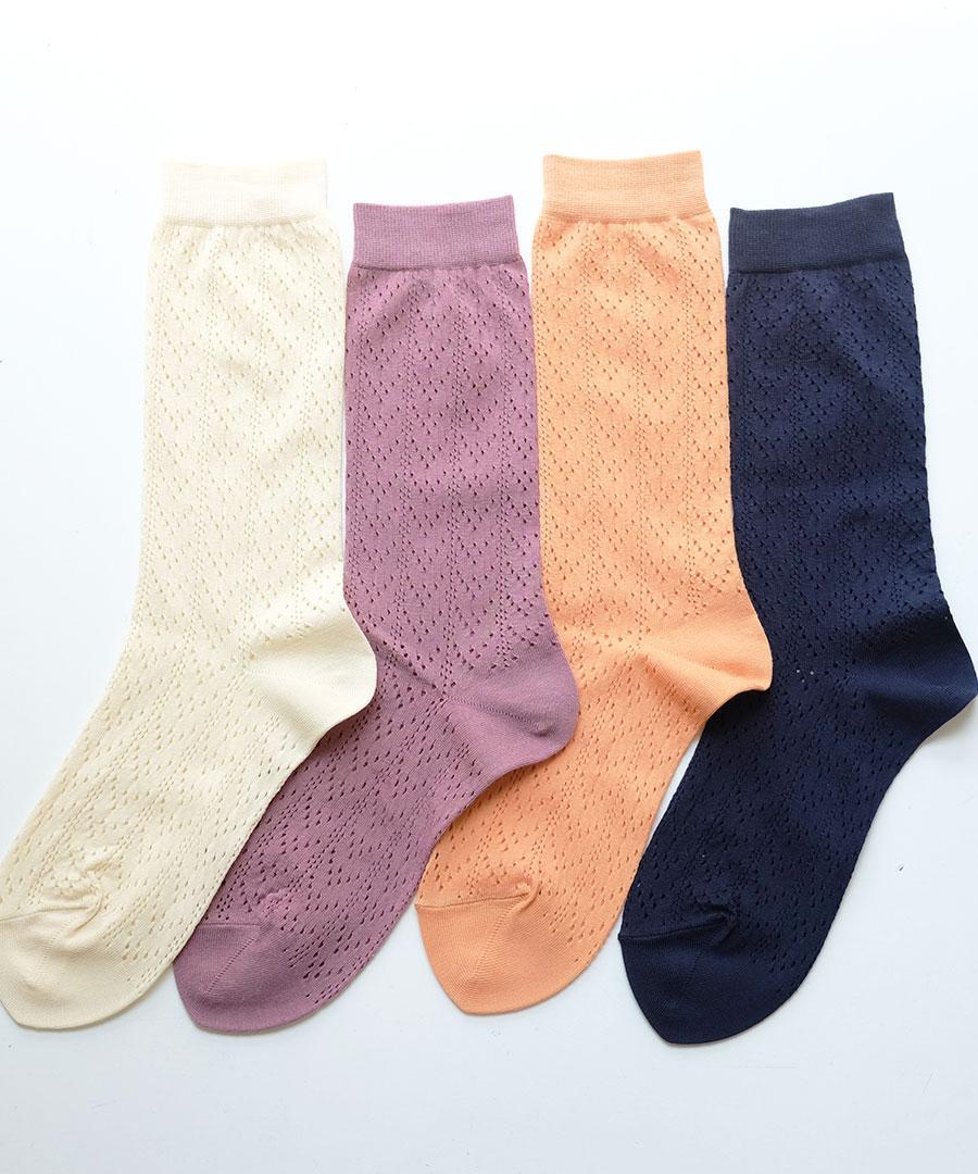 大小のメッシュ編みを組み合わせた、レース見えするソックスです。