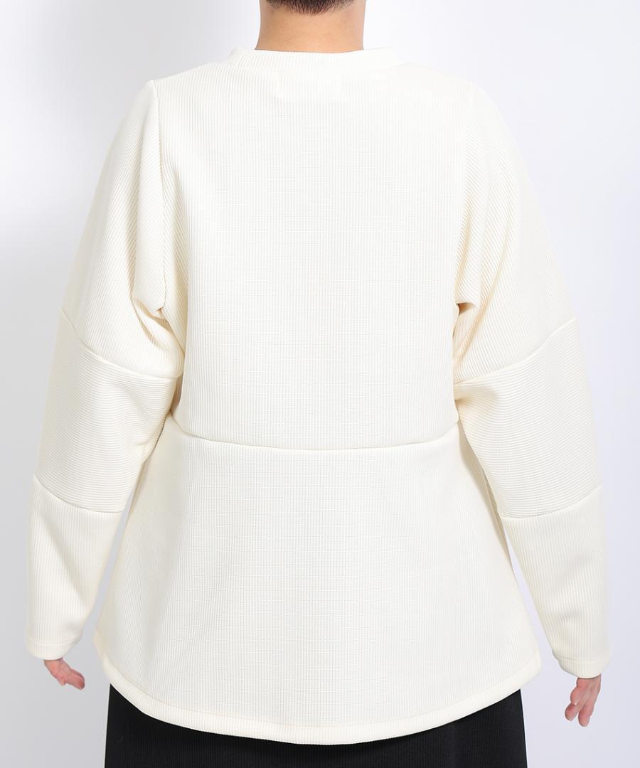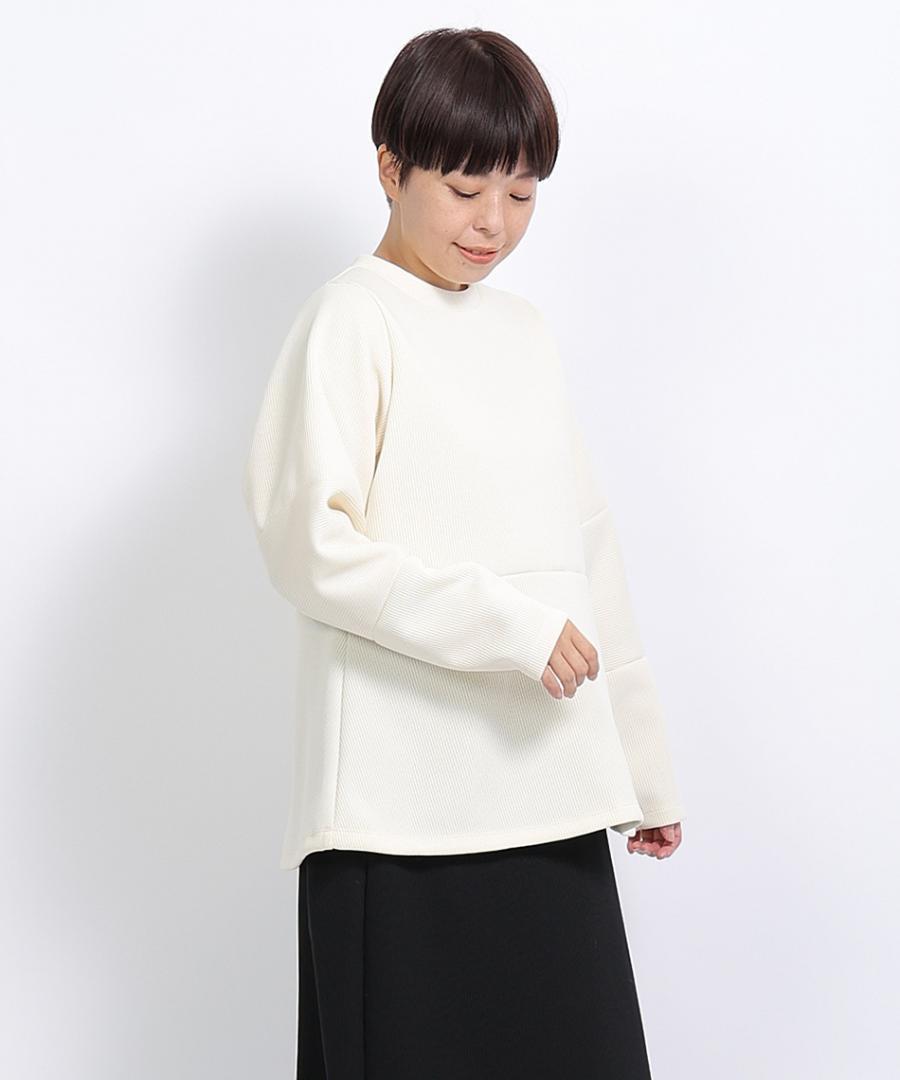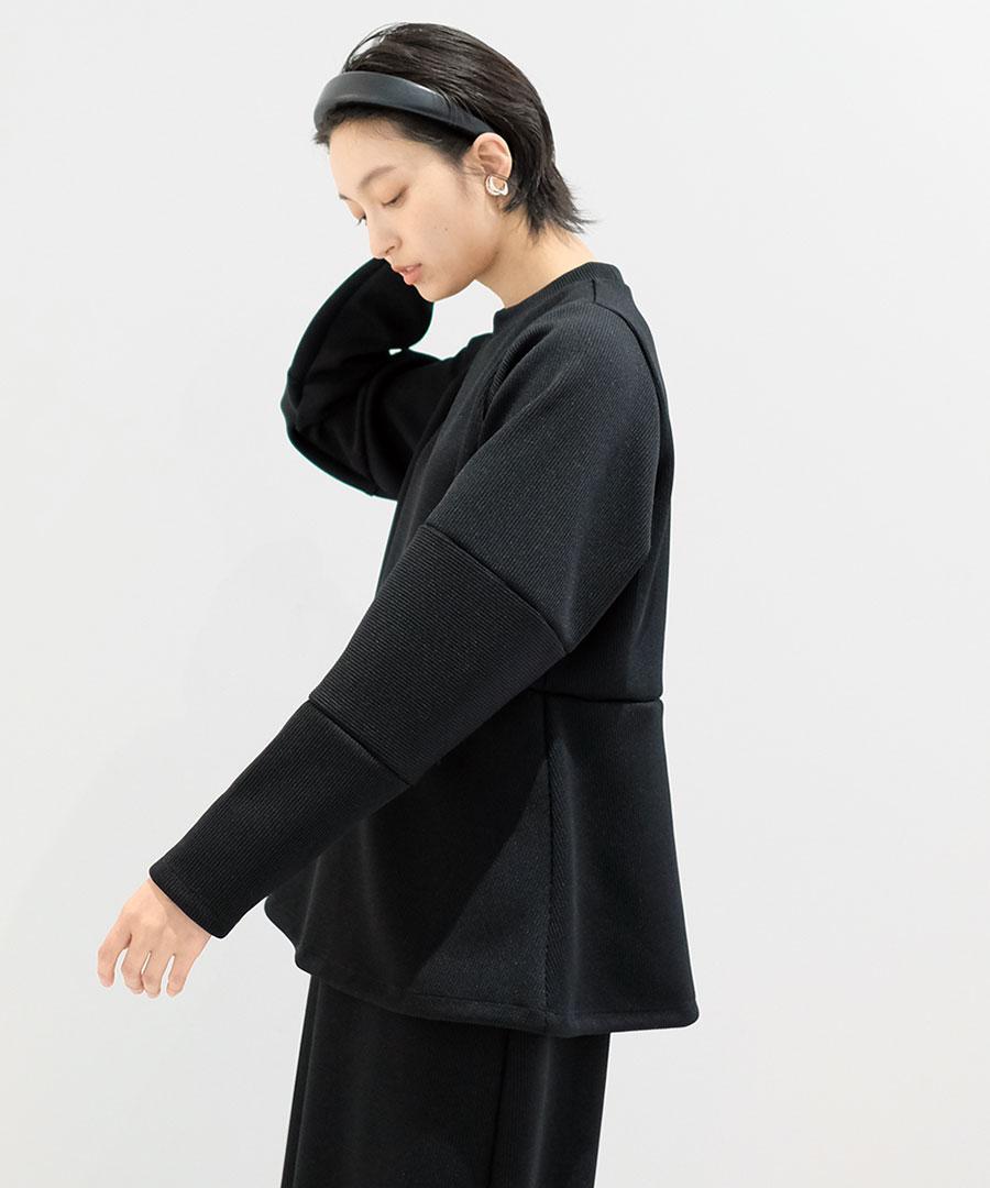 袖を切り替えてヨコ使いすることで立体感を表現しています。