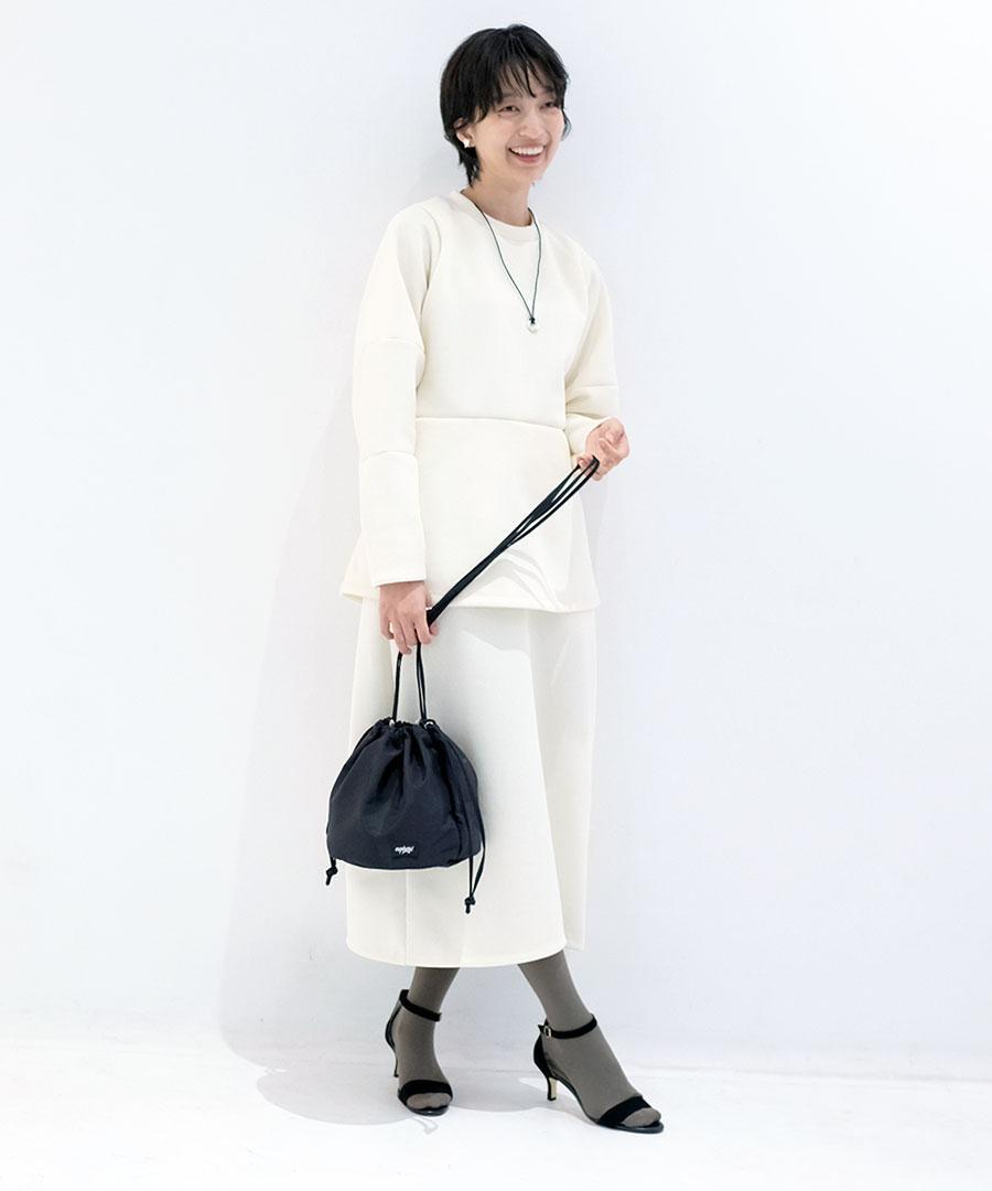 ウエストをわずかにシェイプし、裾に従ってフレアにすることでメリハリを持たせました。
