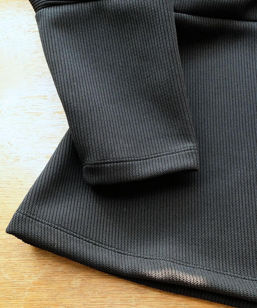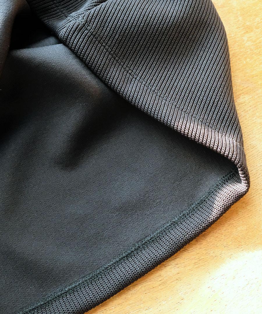 表がローゲージで裏がハイゲージのため、ニット見えしつつボンディングしているような素材です。