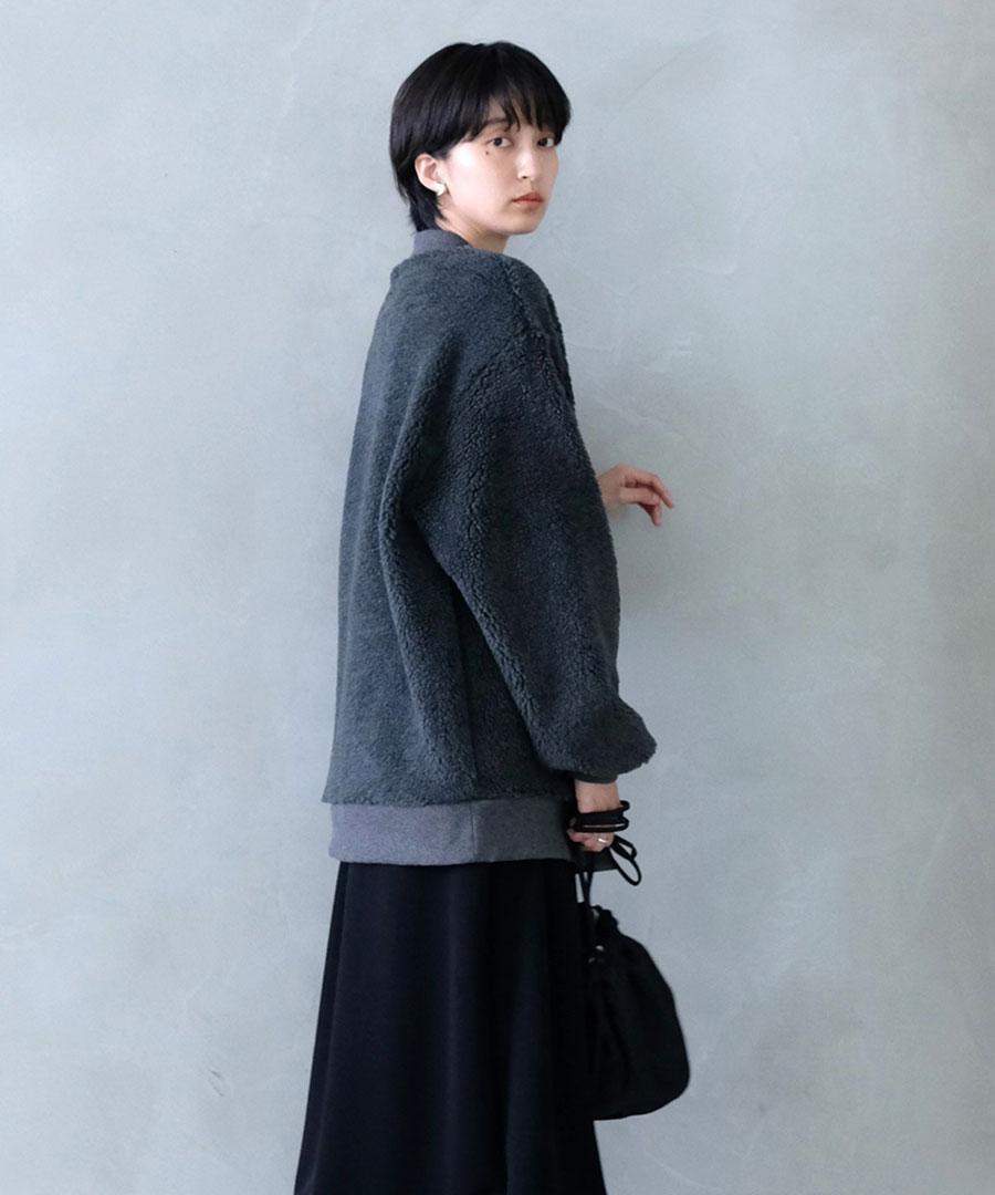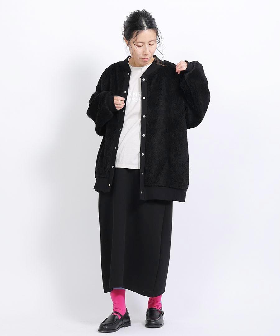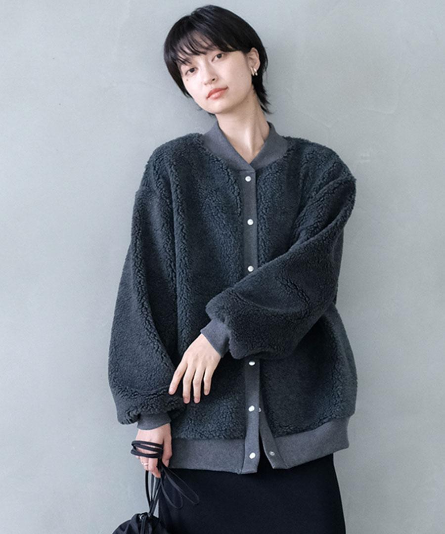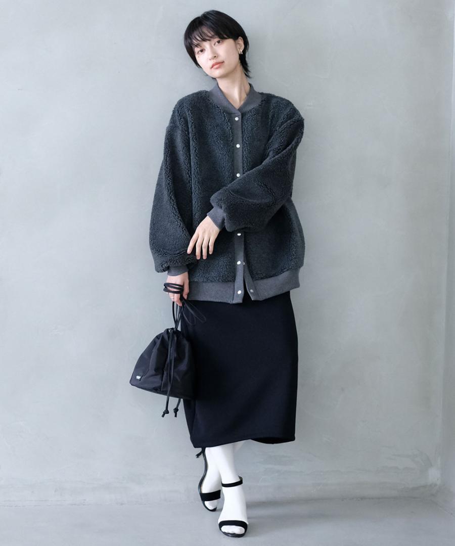 着丈を長めにすることで縦見えするため、ボアの膨張感をカバーしてくれます。