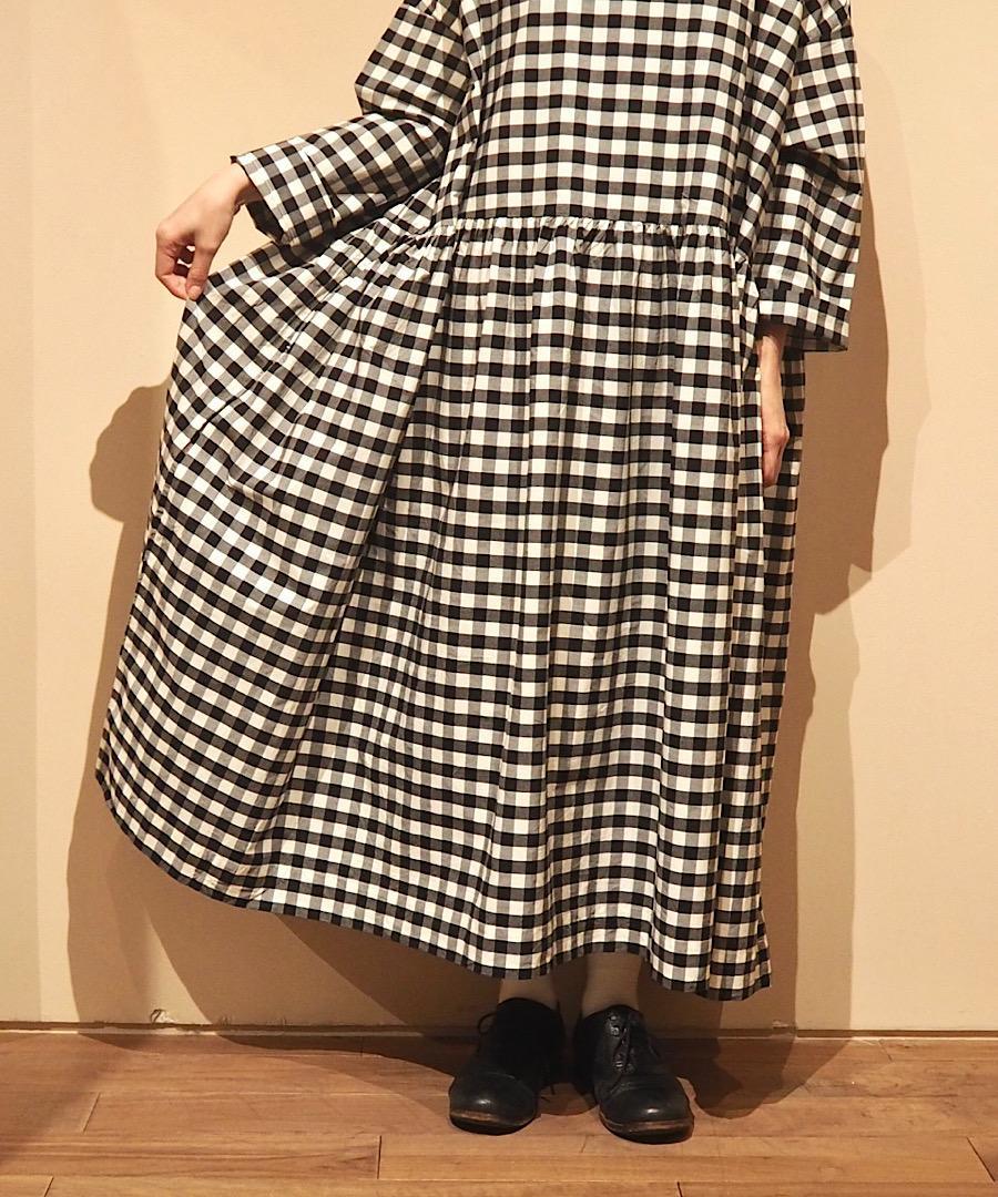 ウエストの切替部分にたっぷりとギャザーを入れ、ふんわりと裾に広がるシルエットが可愛いです。