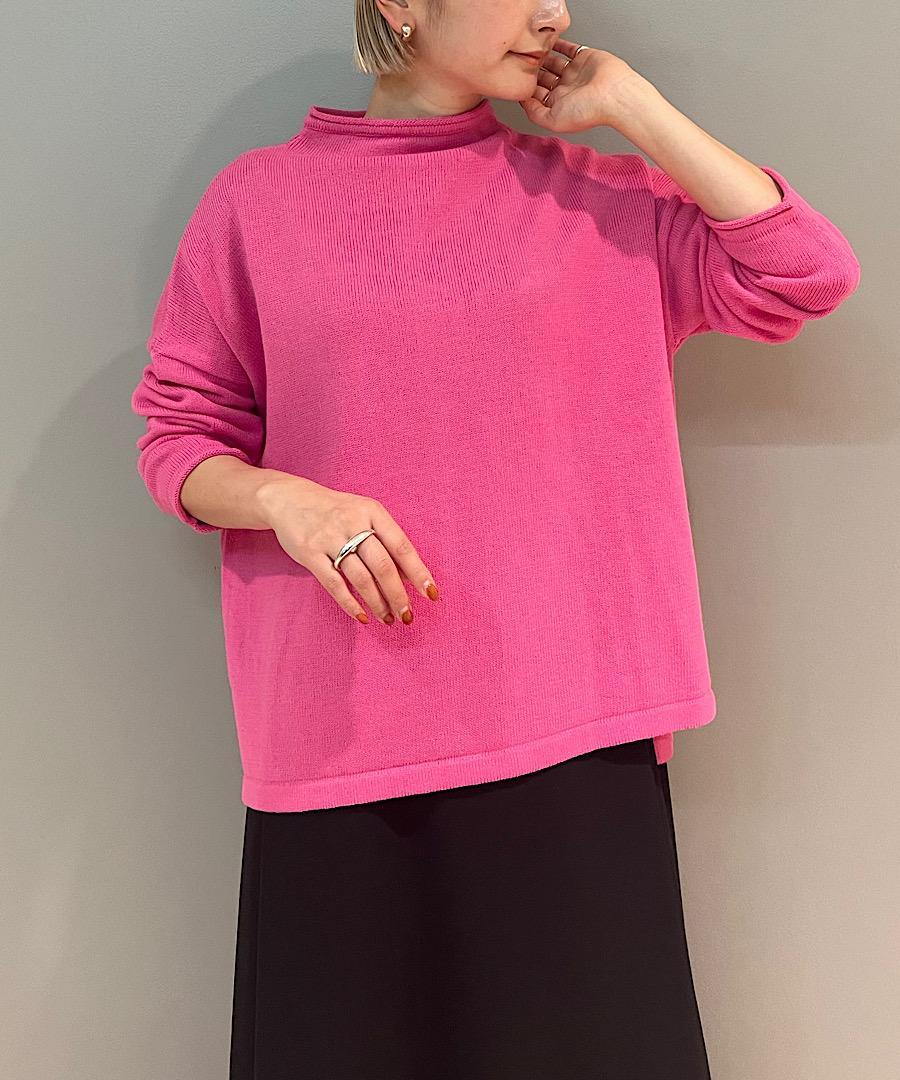 コットンリネン糸をローゲージに編み込んだ定番のボトルネック。