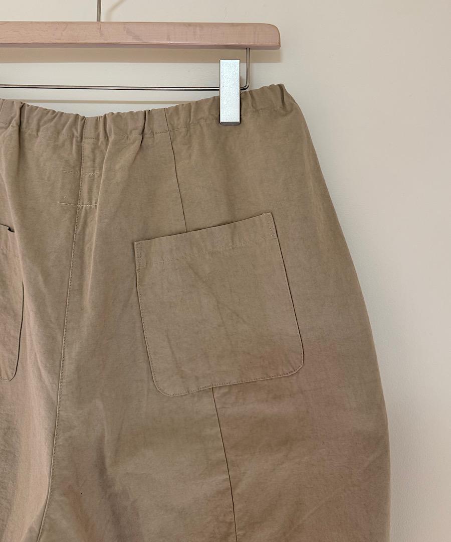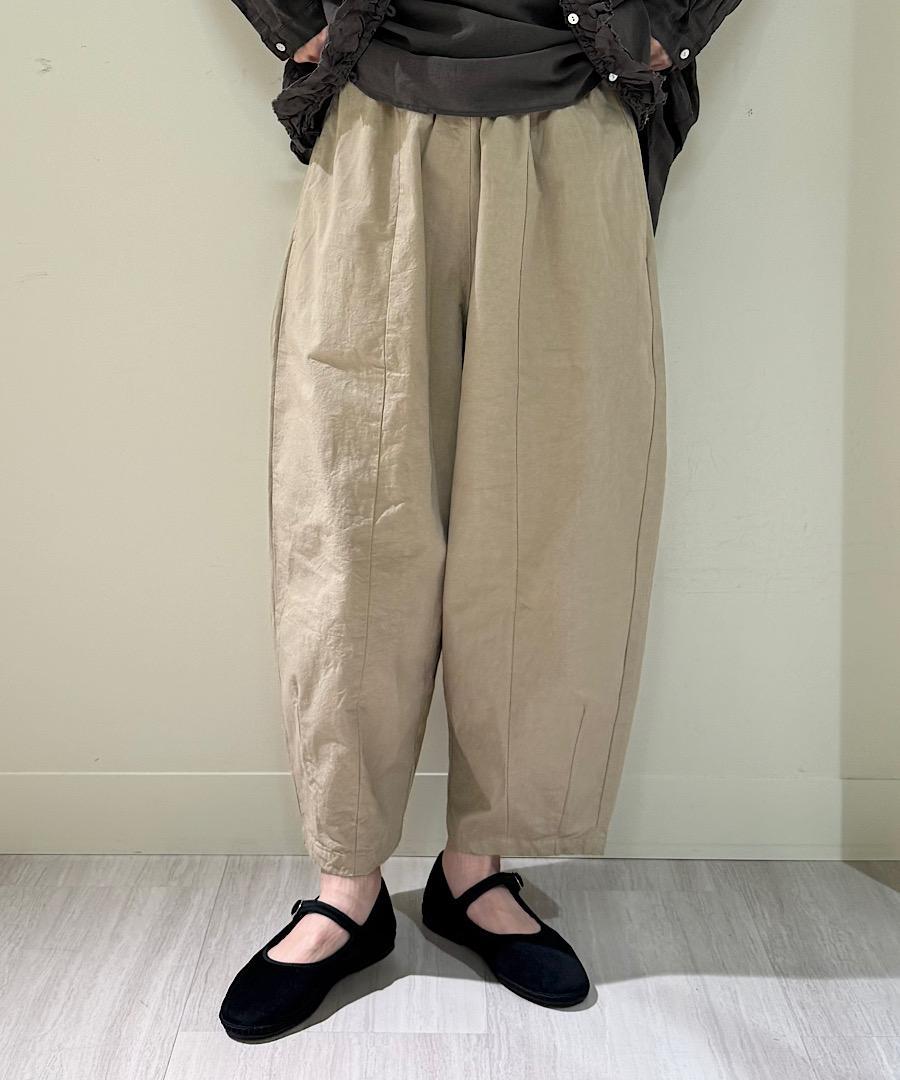 立体的な丸みのあるシルエットで、裾に向かってゆるくテーパードしています。