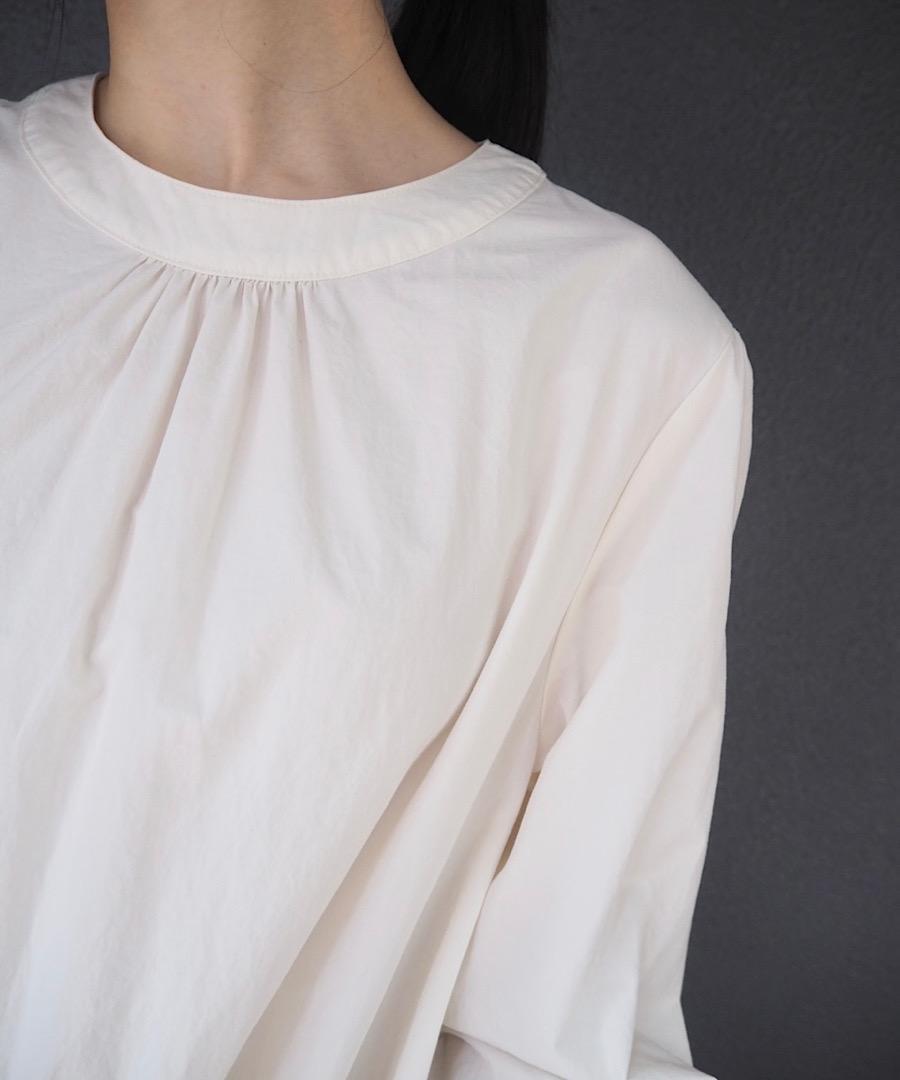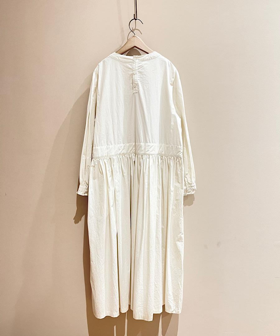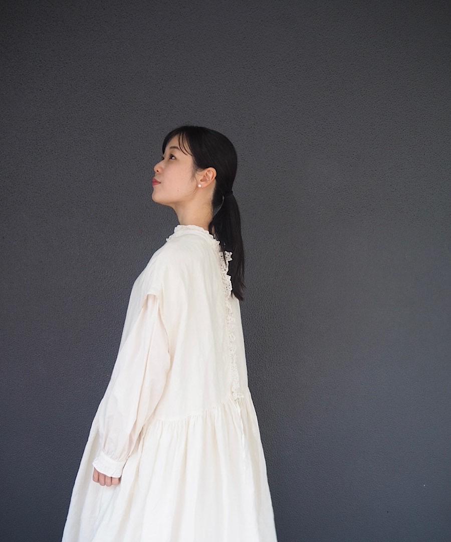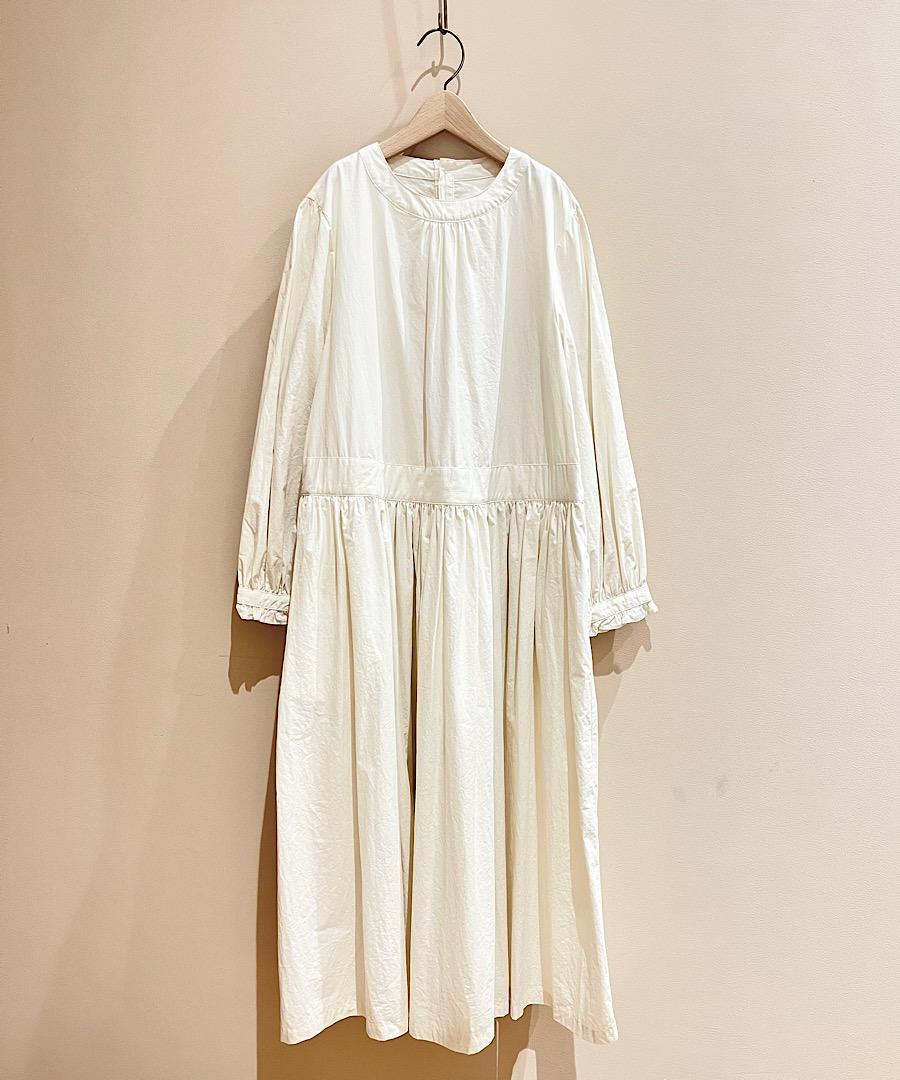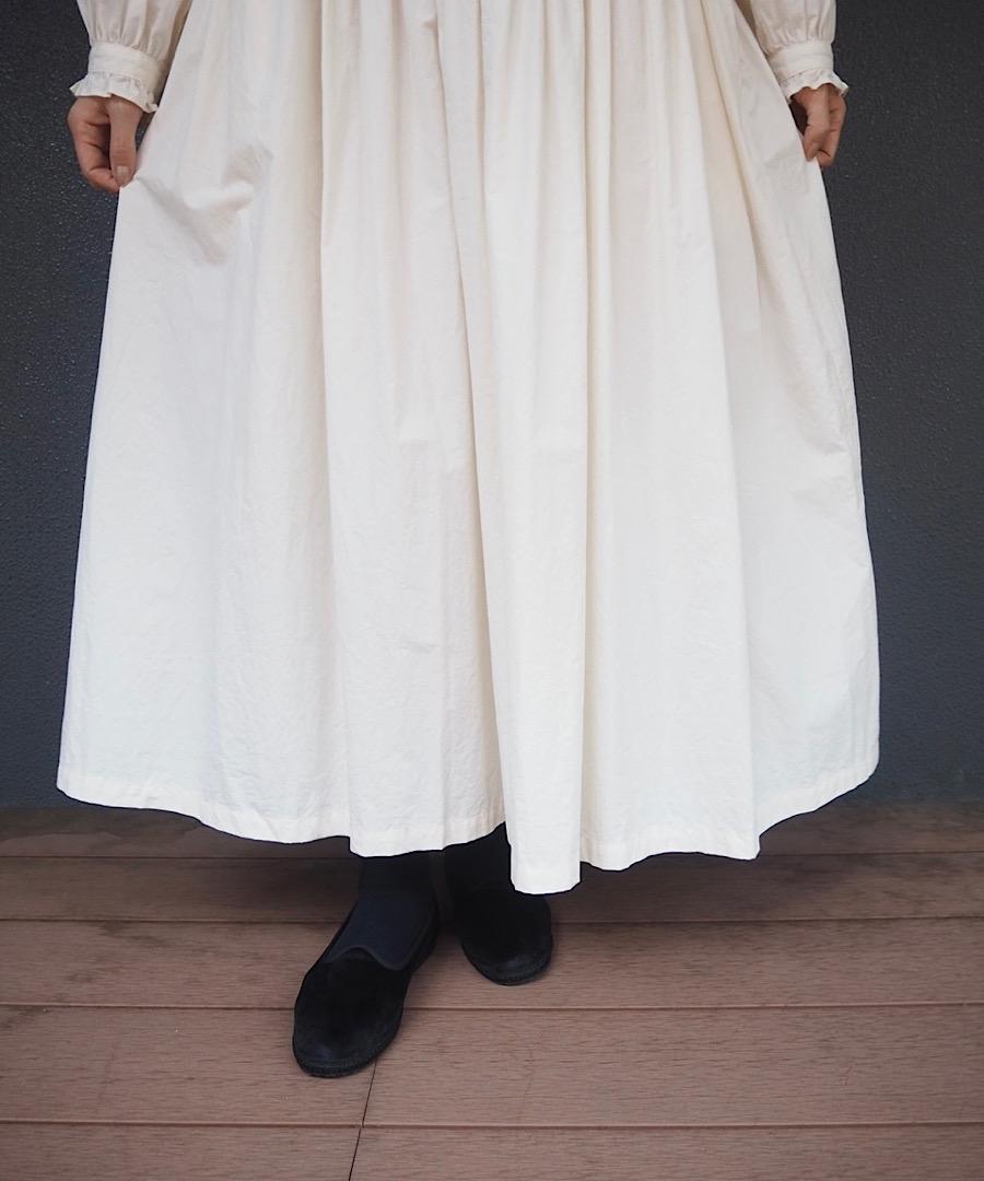 首元にはポイントに少しのギャザー、ウエストにはたっぷりのギャザー、袖口には小さなフリル、とこだわりがギュツと詰まっています。