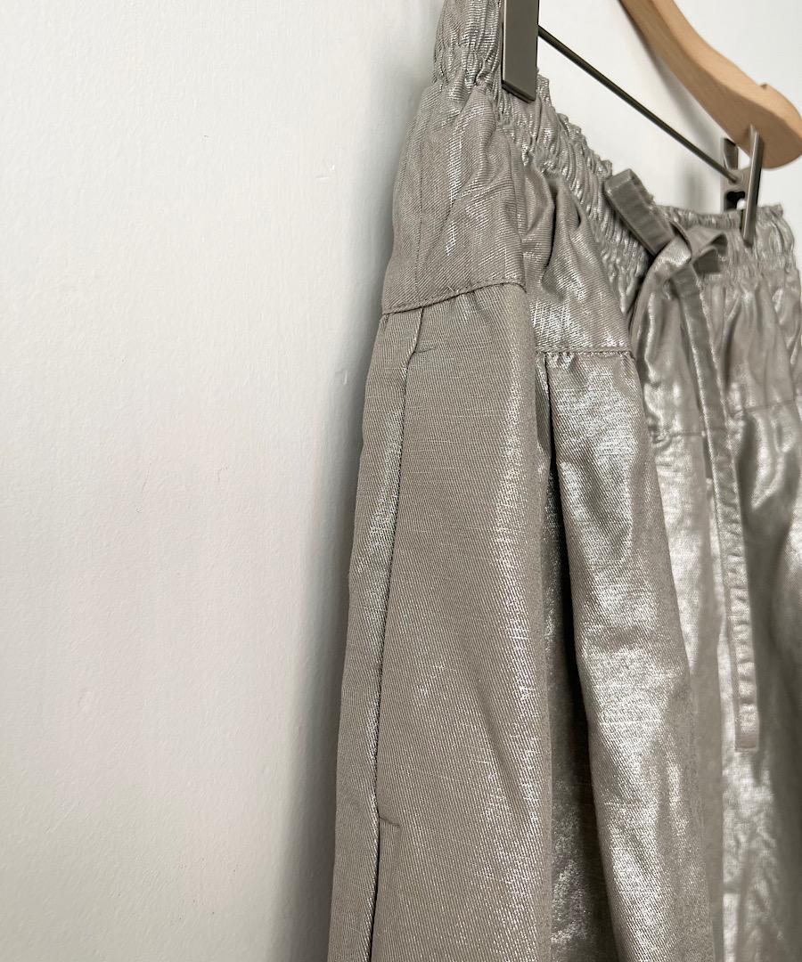あてがった箔加工ツイル生地は経年変化でアンティークのような風合いにフェードしていく特別な素材です。