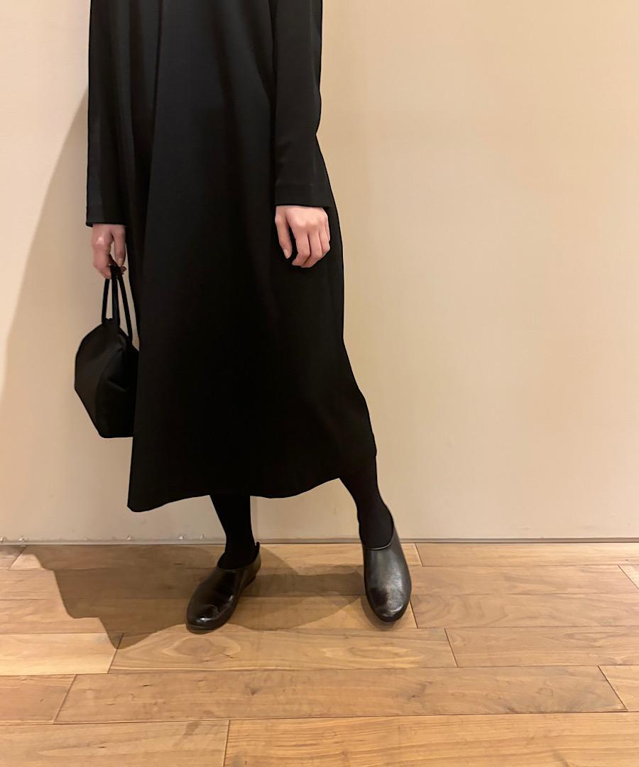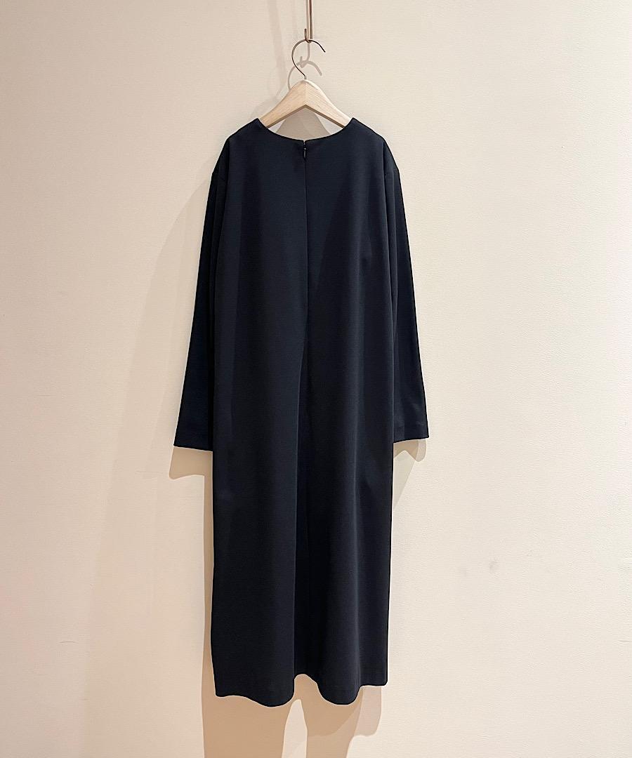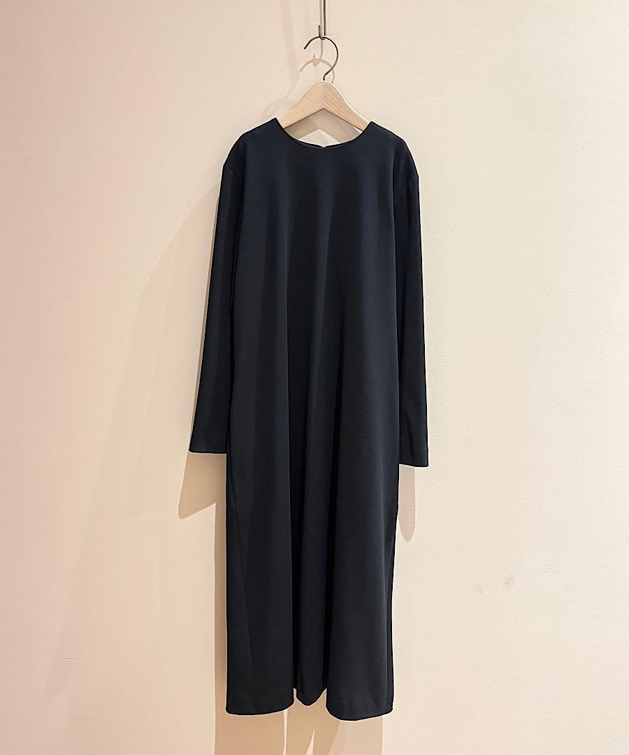 ジョーゼットの上品さと、カットソー素材の着心地の良さを合わせもつ、ユニークな生地で仕立てたワンピース。