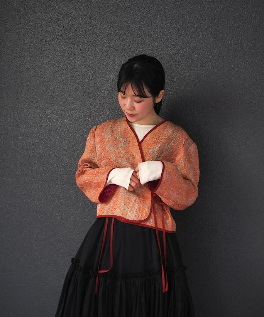 インドのシルクカンタ刺繍の生地を使用した、カシュクールタイプのジャケットです。