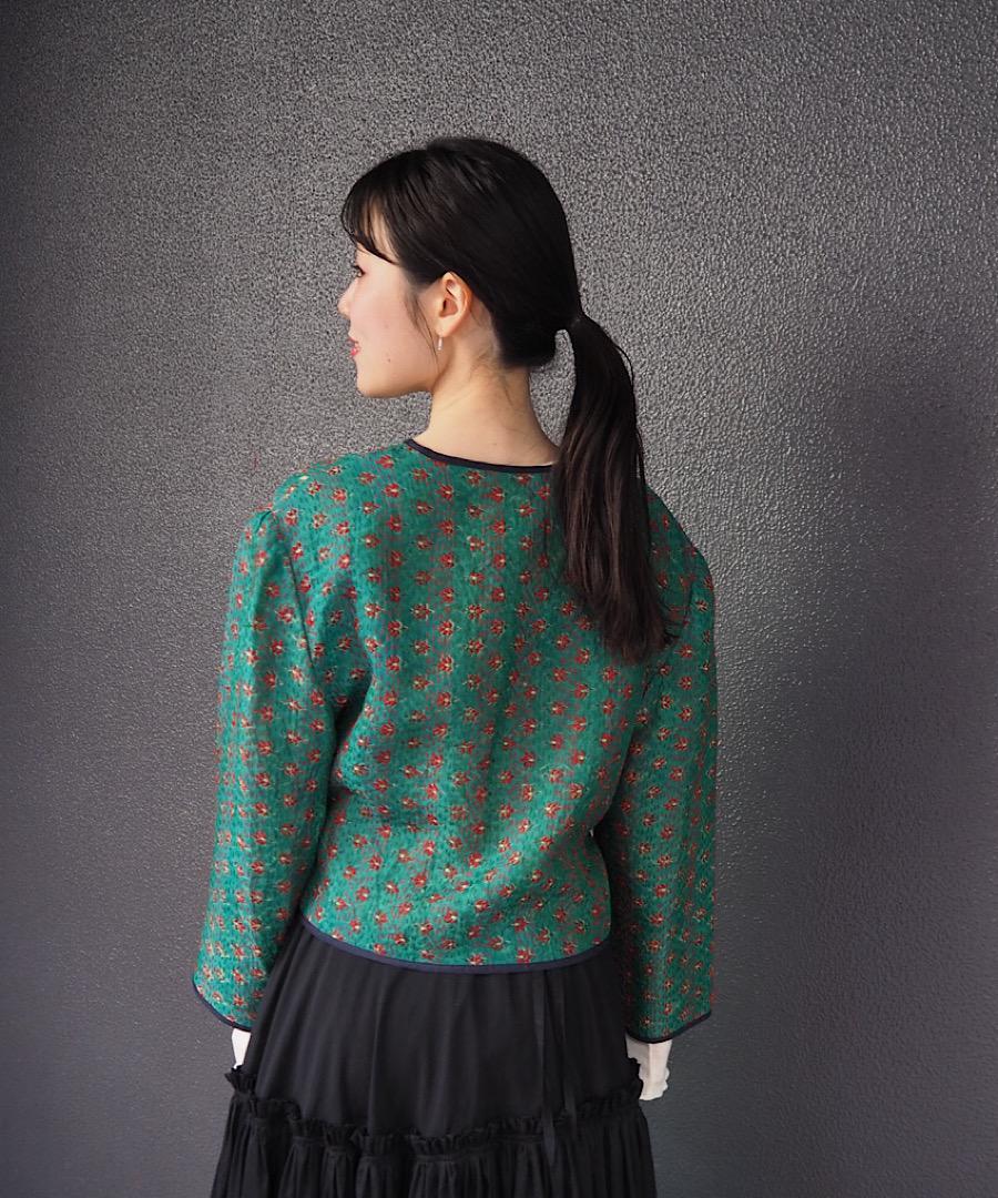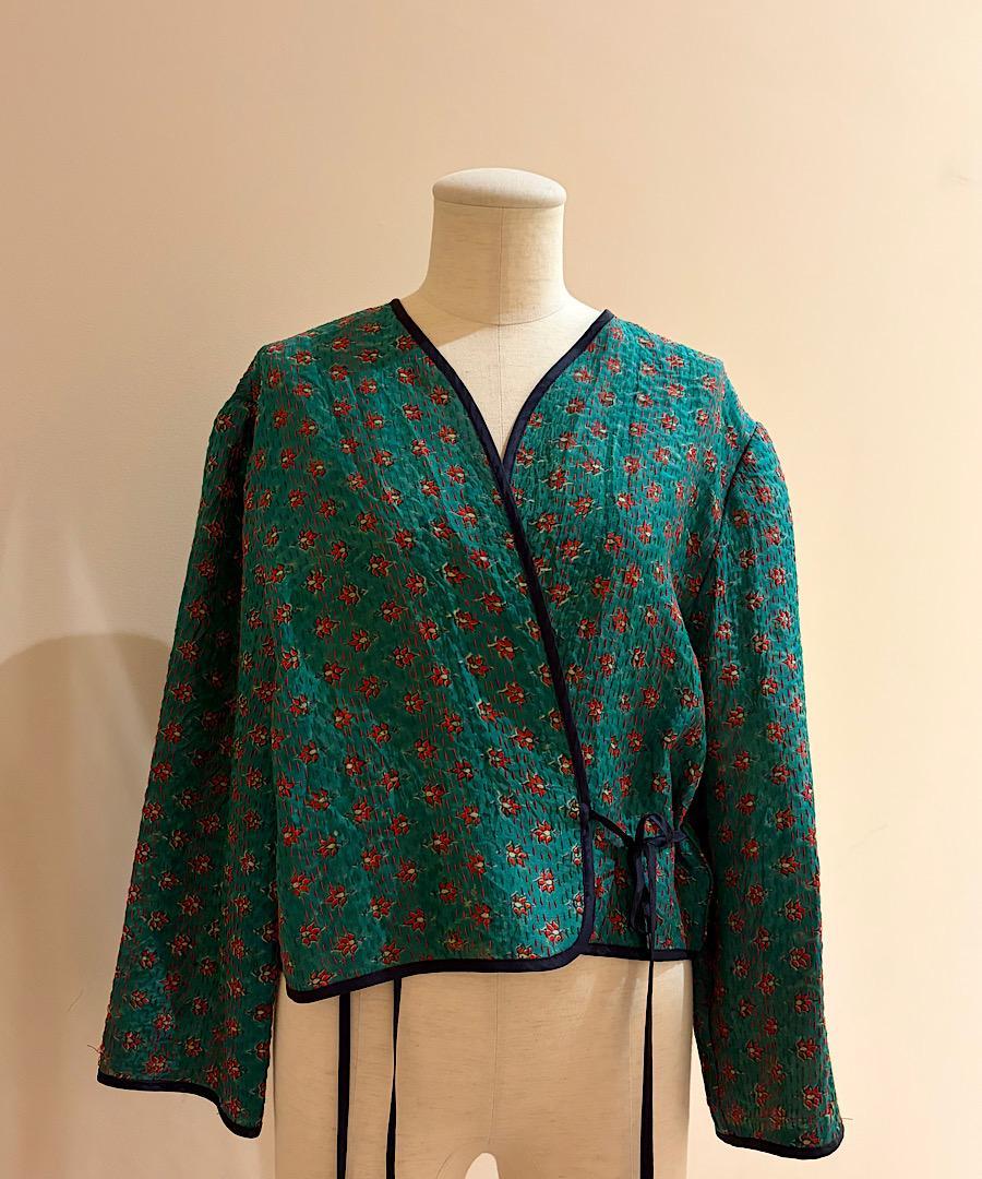 インドのシルクカンタ刺繍の生地を使用した、カシュクールタイプのジャケットです。