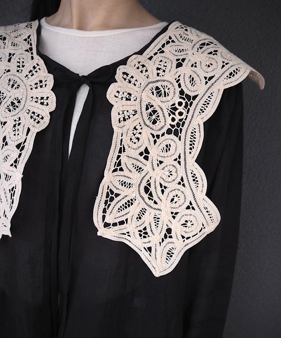 中国汕頭でヨーロッパ向けに作られた、バテンレースパーツを使用したブラウスです。