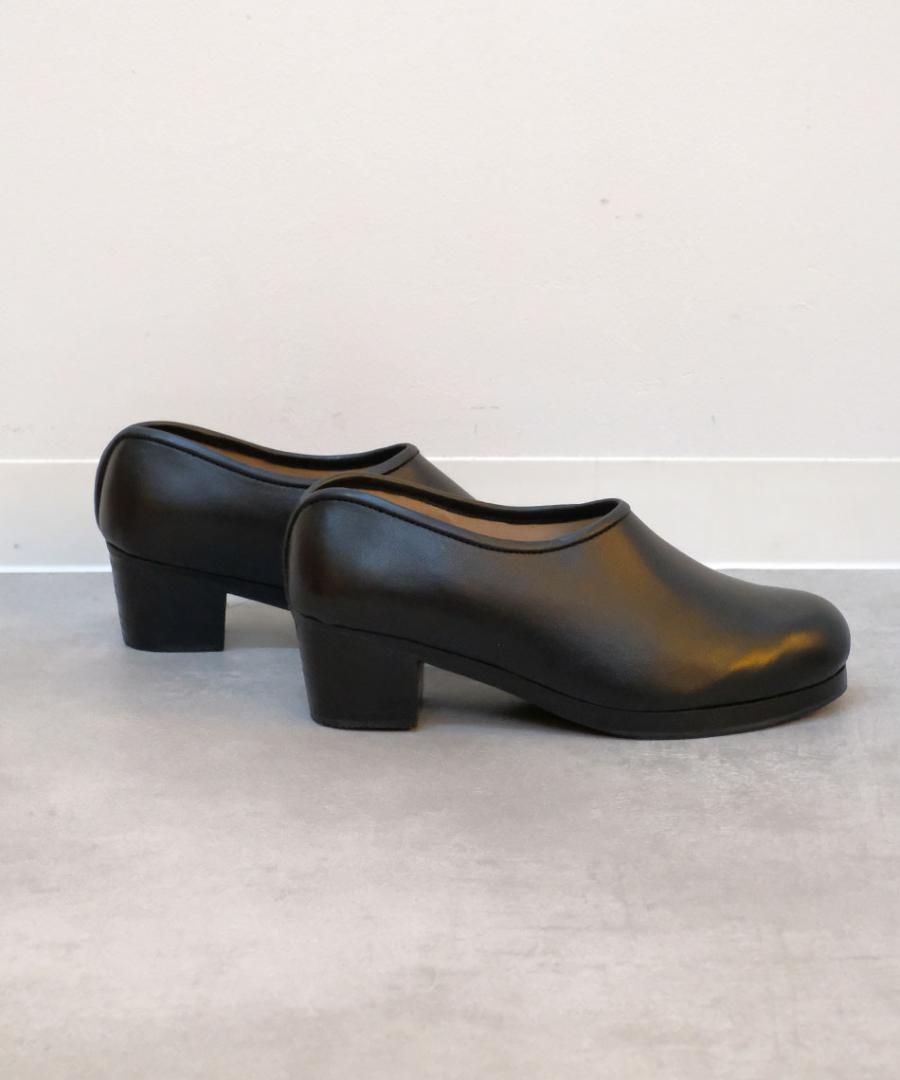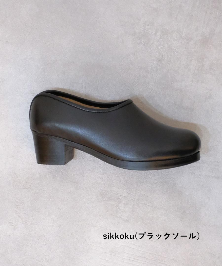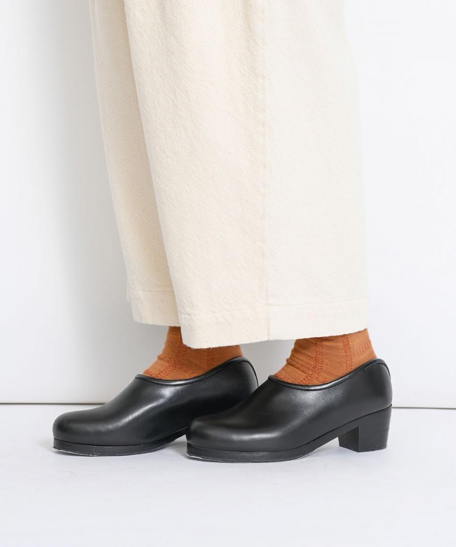 普段ヒール靴を履きなれていない方にも、安定感から履きやすいサボ型ヒール靴ですよ。