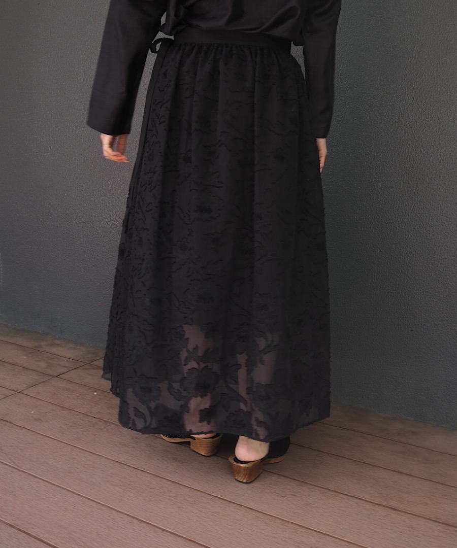 上品なシアー感のある生地に浮かぶような花柄モチーフが印象的なファブリックです。