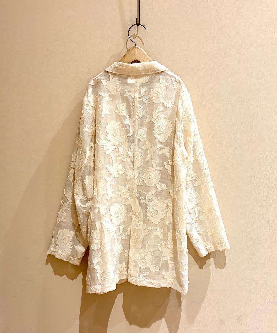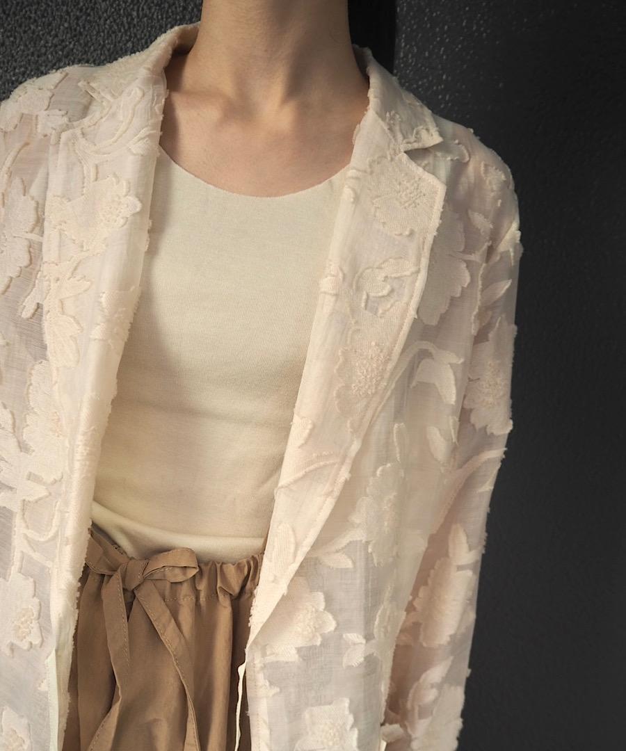上品なシアー感のある生地に浮かぶような花柄モチーフが印象的なファブリックです。