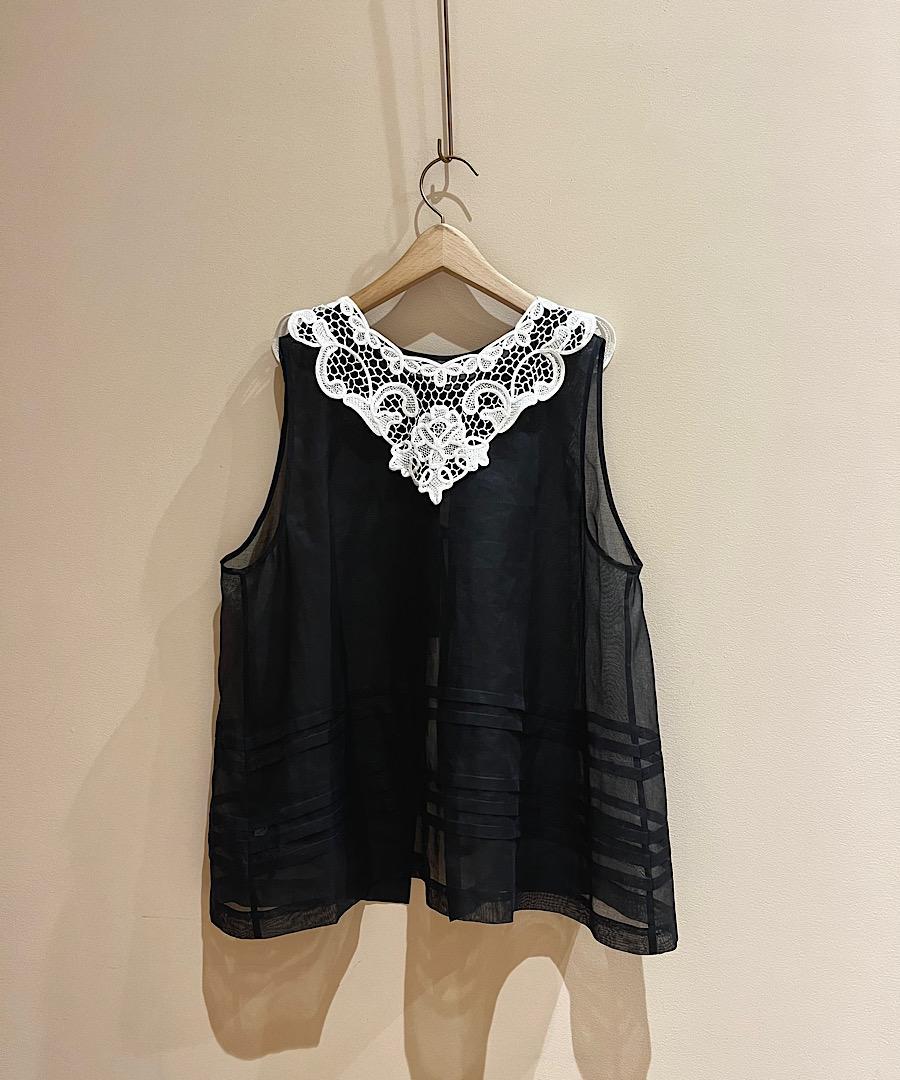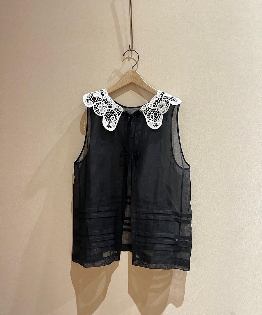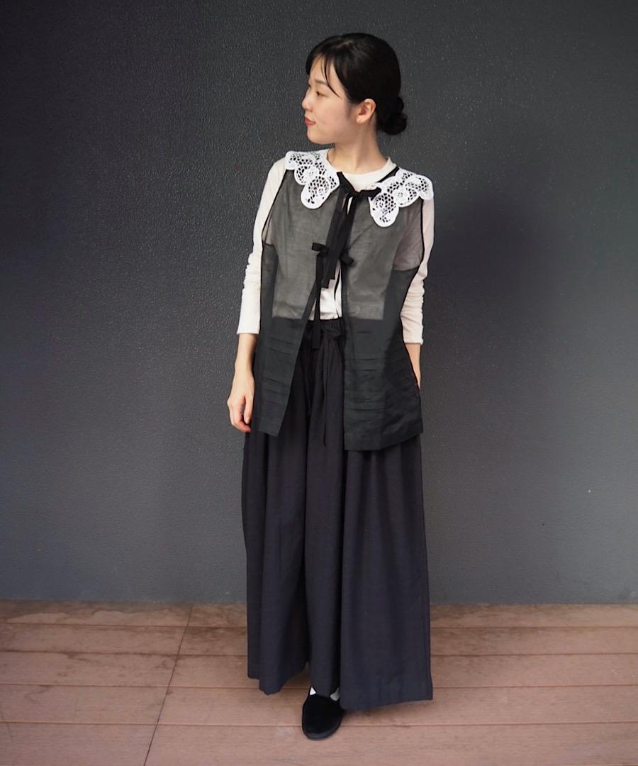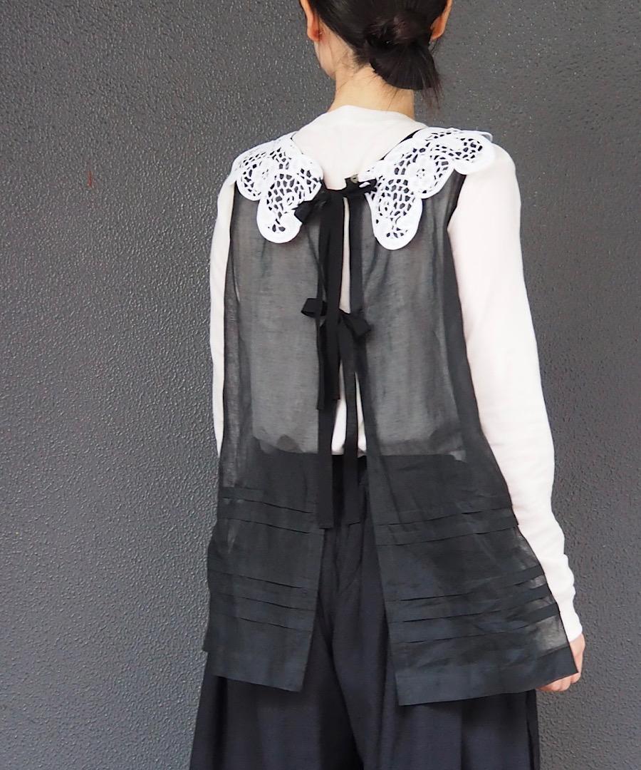 デッドストックのコットンオーガンジー生地にタックを施したジレ。