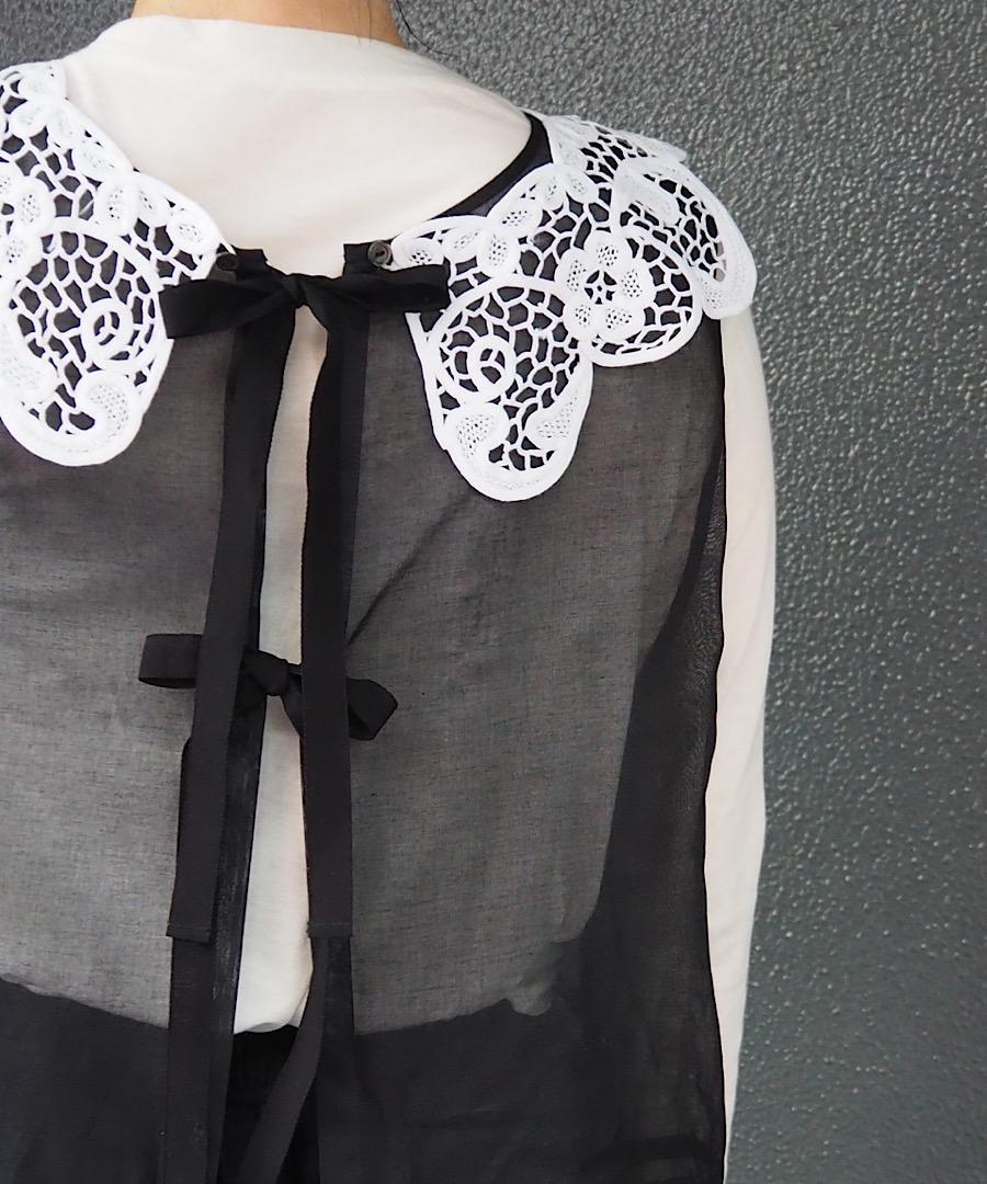 片側は2段のリボンを結ぶデザインで、前後どちらが前でも着ていただけます。