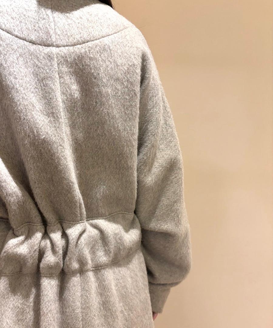 ウエスト部分には腰にベルトが通っておりシルエットを自由に変形できるのでぎゅっと絞って着たり、ラフに羽織ったりとコーディネートの幅が広がるデザインです。