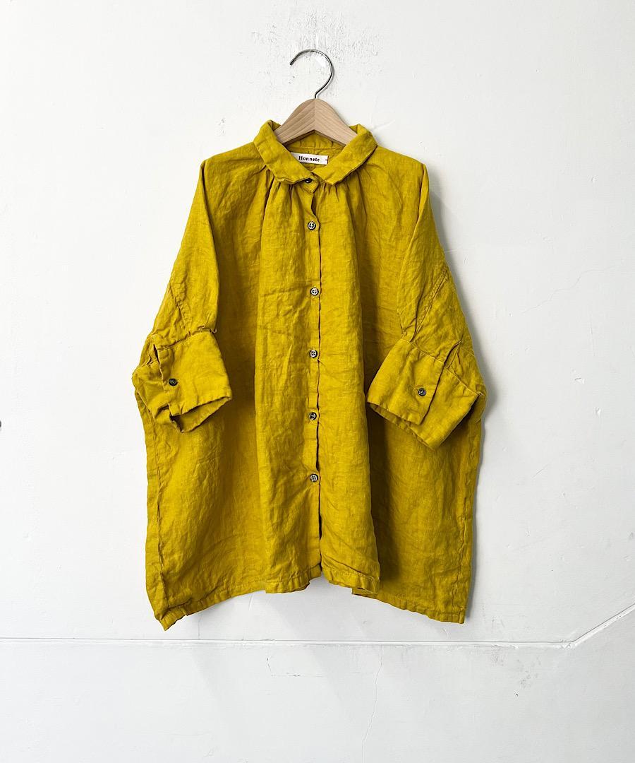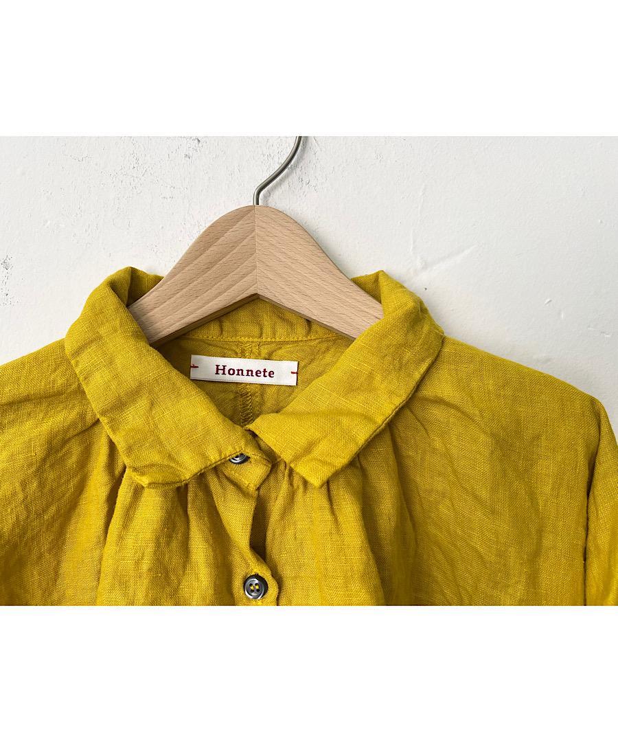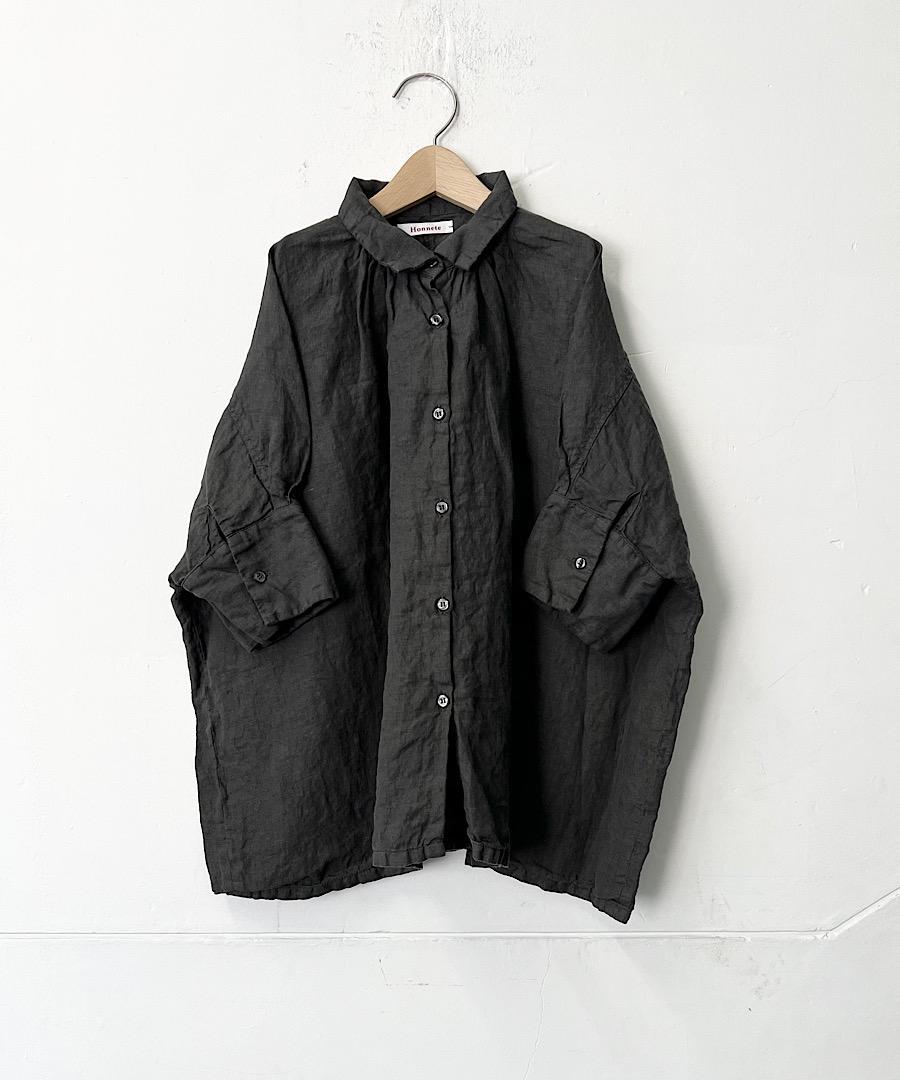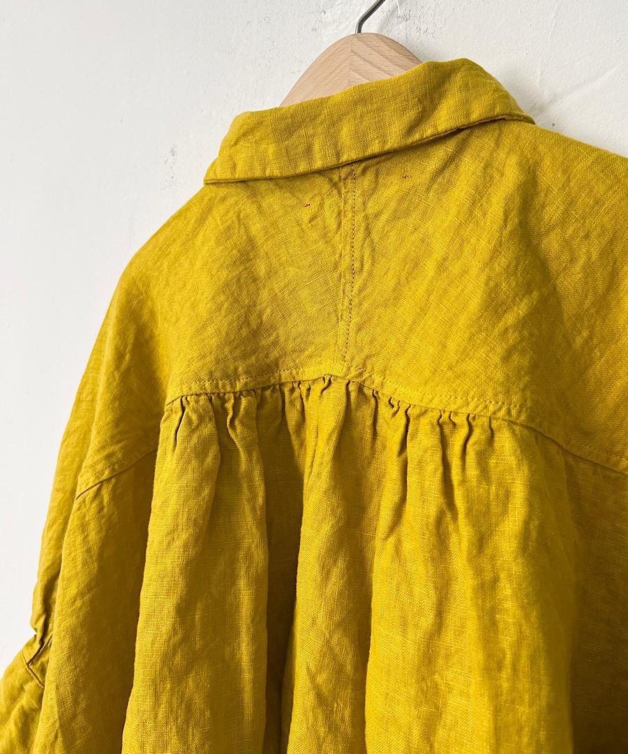 コンパクトな襟に寄せられたギャザーが可愛らしく立体感のあるデザイン。