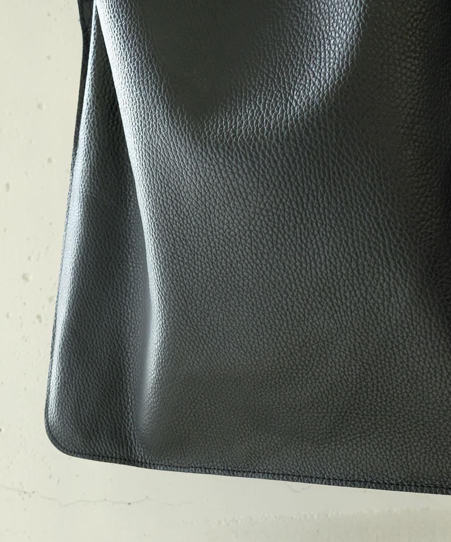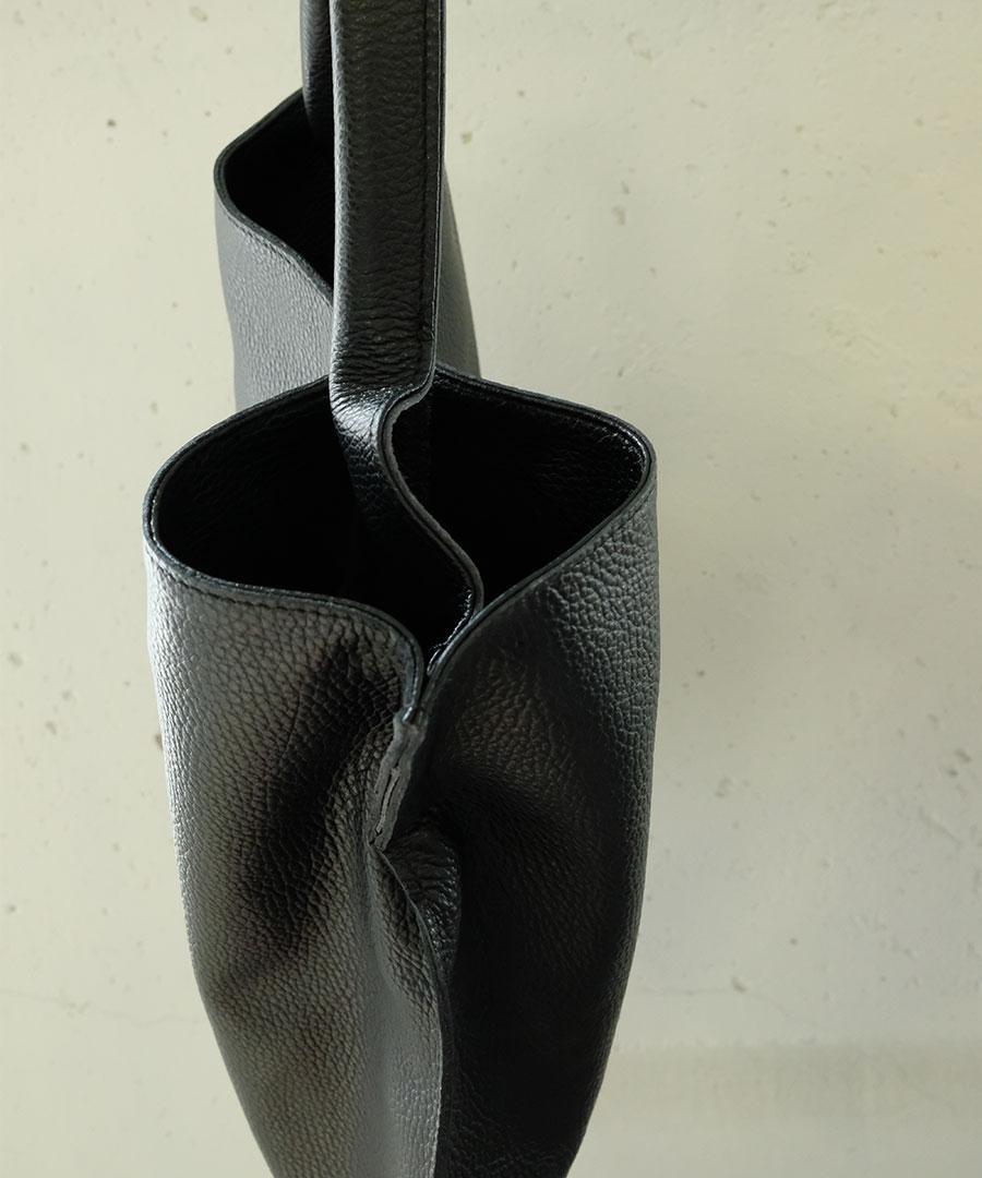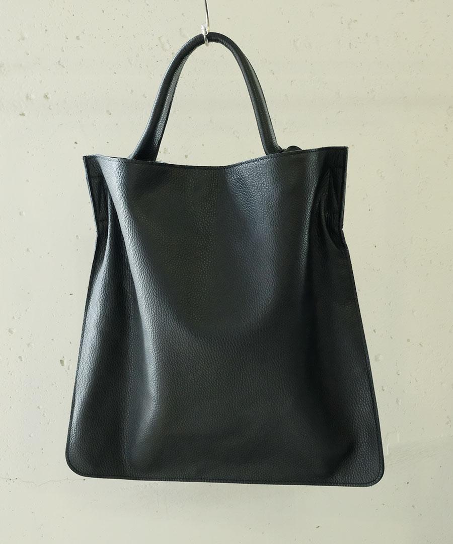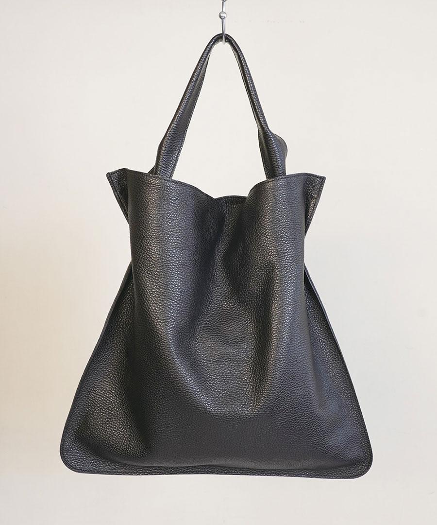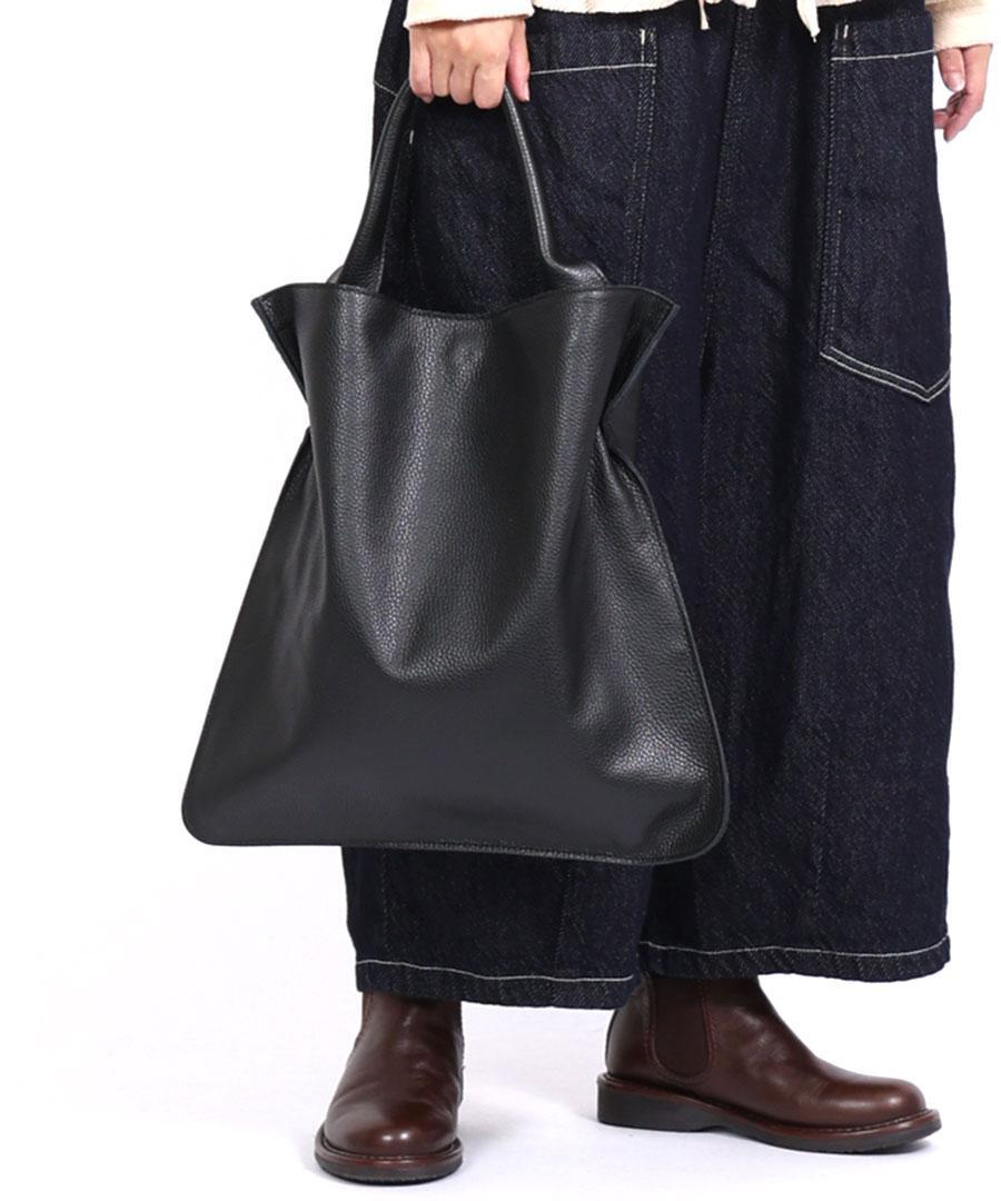 柔らかいレザーのマチのないトートバッグ。