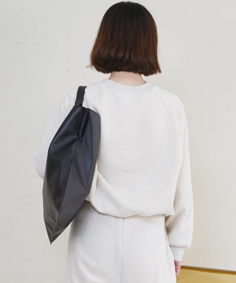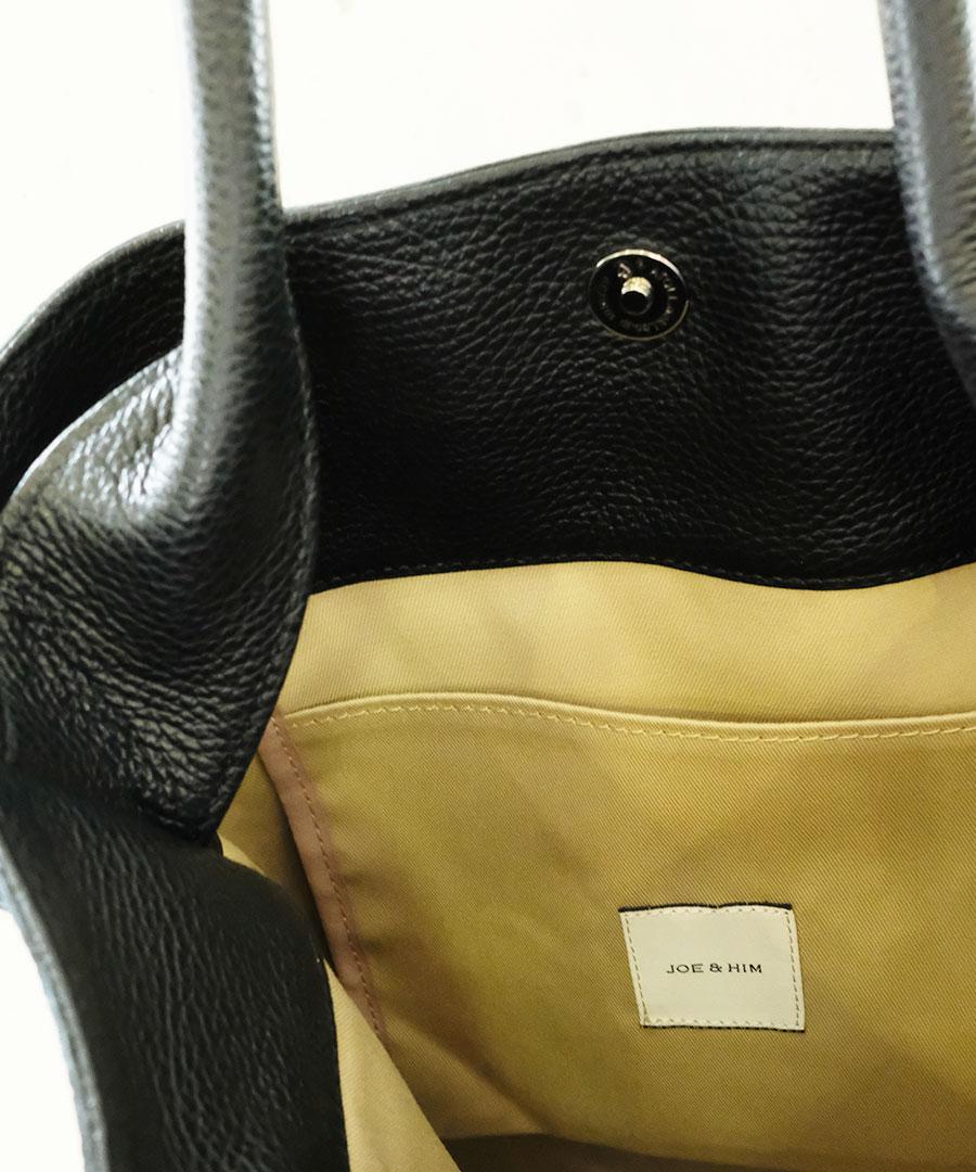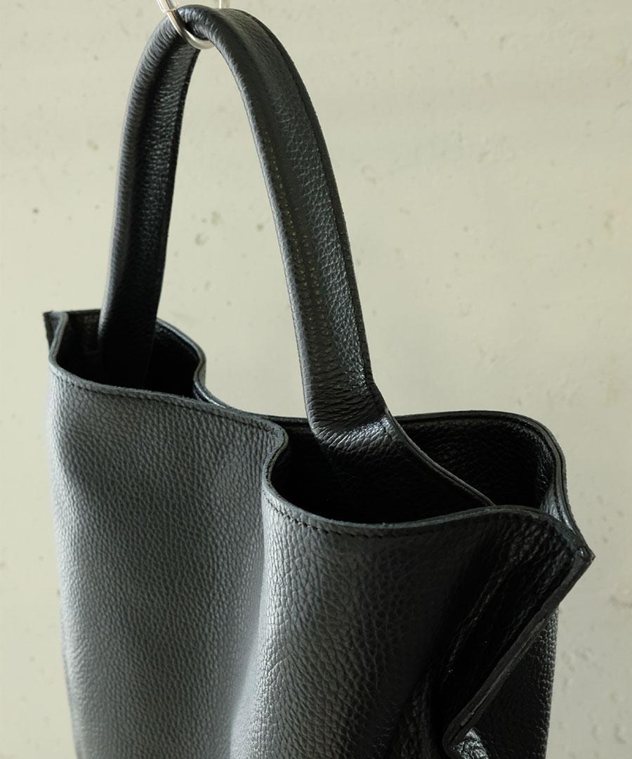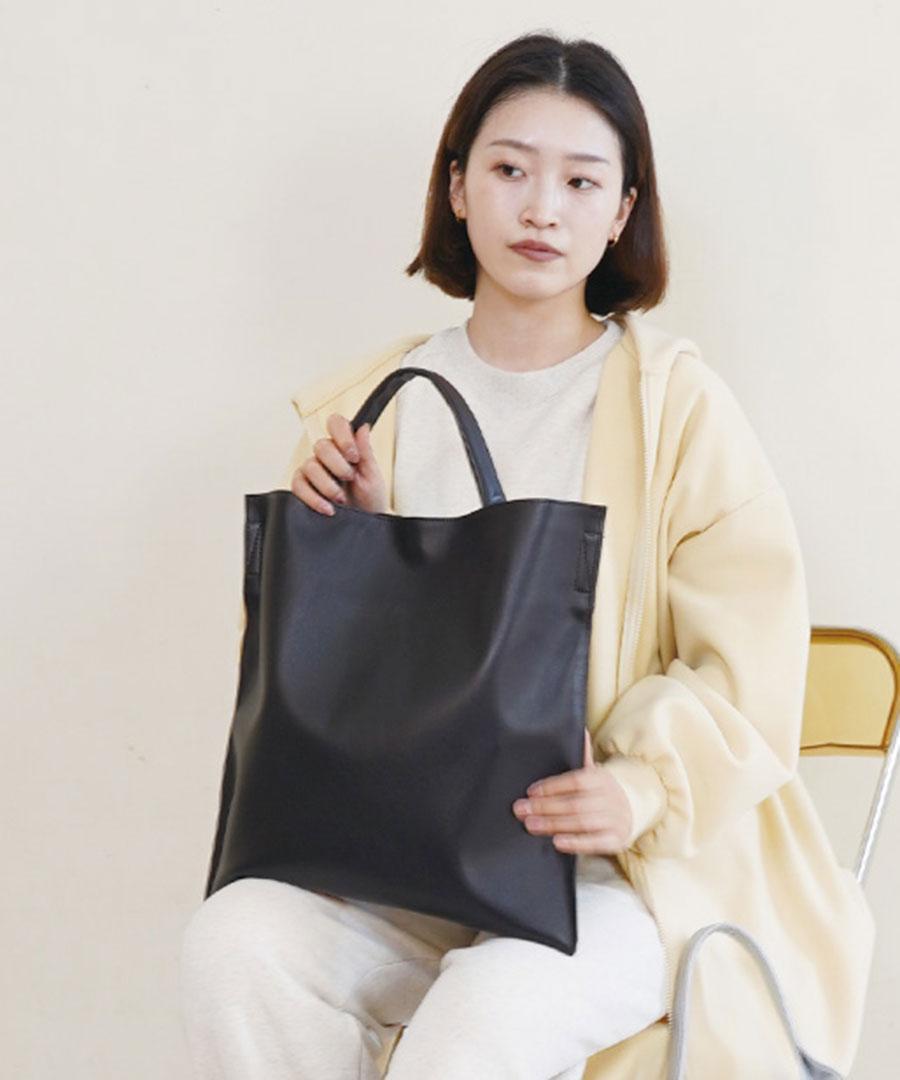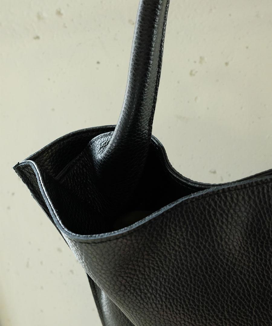 柔らかいレザーのマチのないトートバッグ。