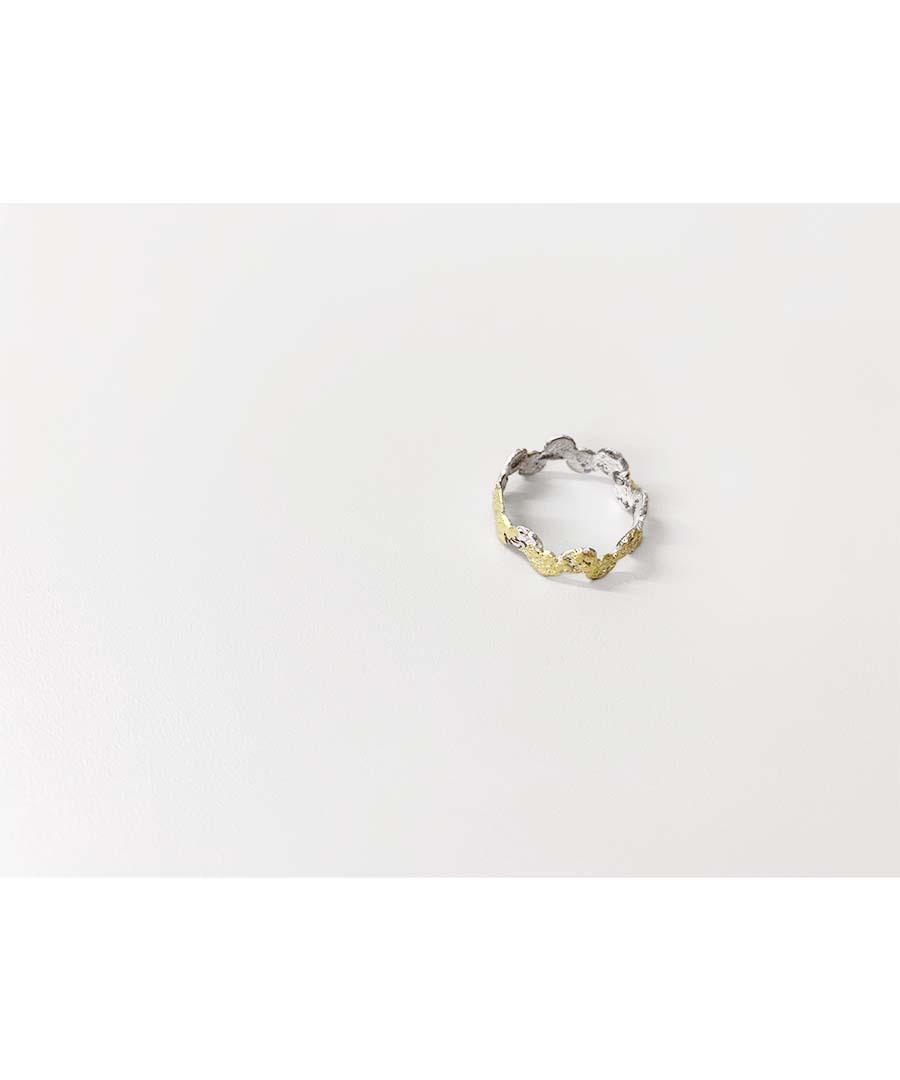 連なった丸いモチーフが、波の様な形を作っているリング。