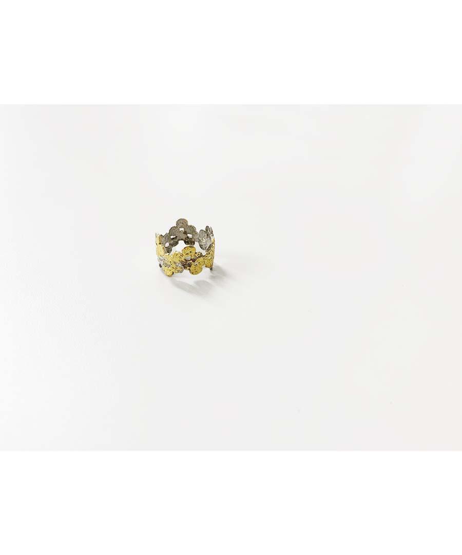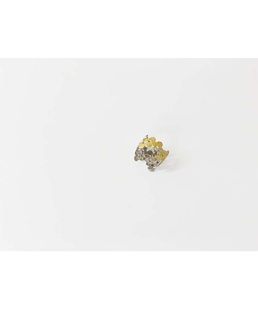 砂浜に長い時間埋もれていた金属のような、荒れたテクスチャーをもったジュエリーは、