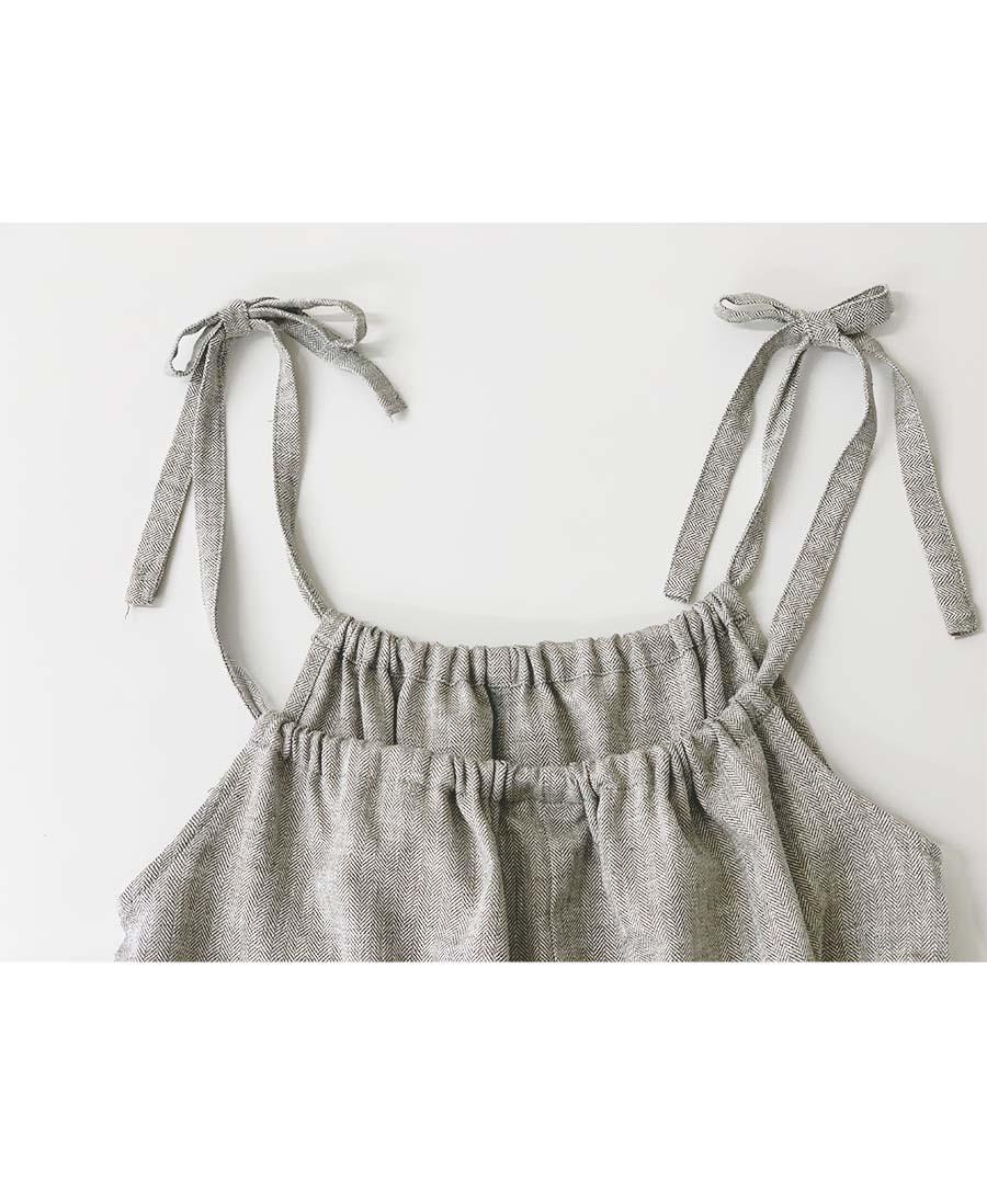 肩紐でギャザーを寄せたり、