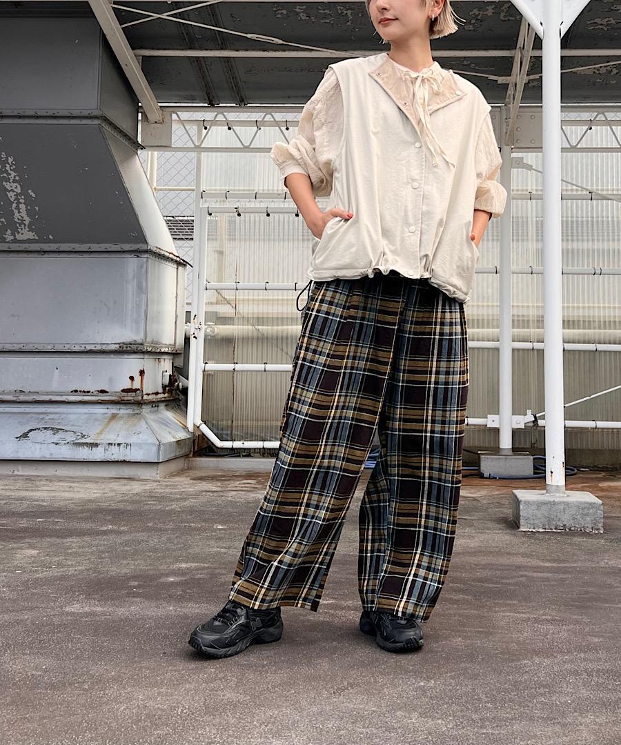 me.wear /old slub check タックワイドパンツ