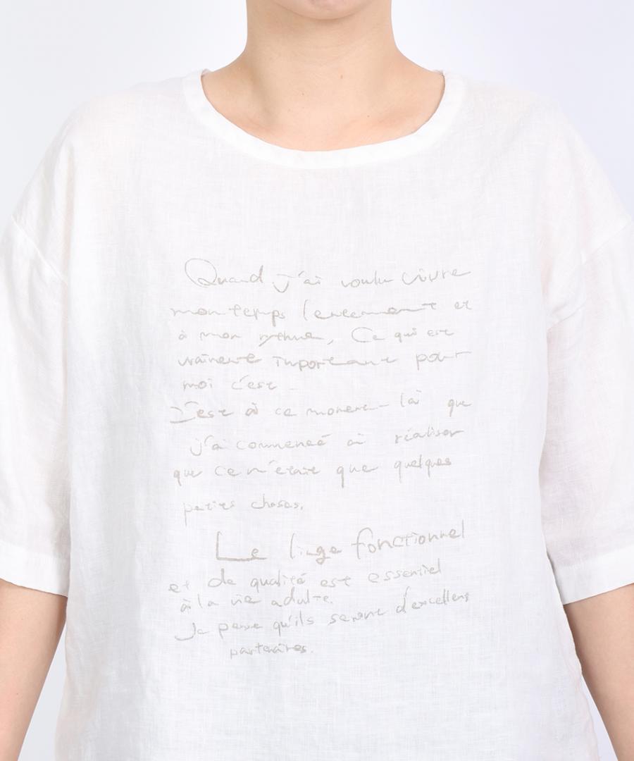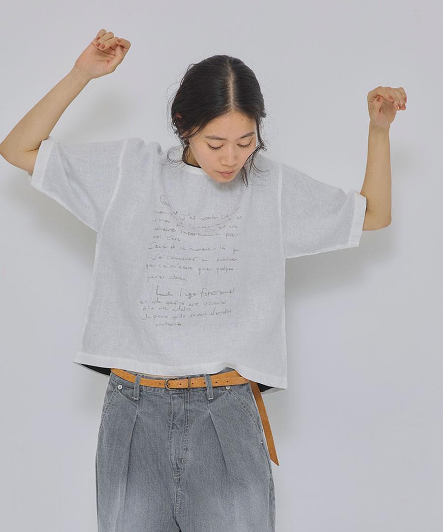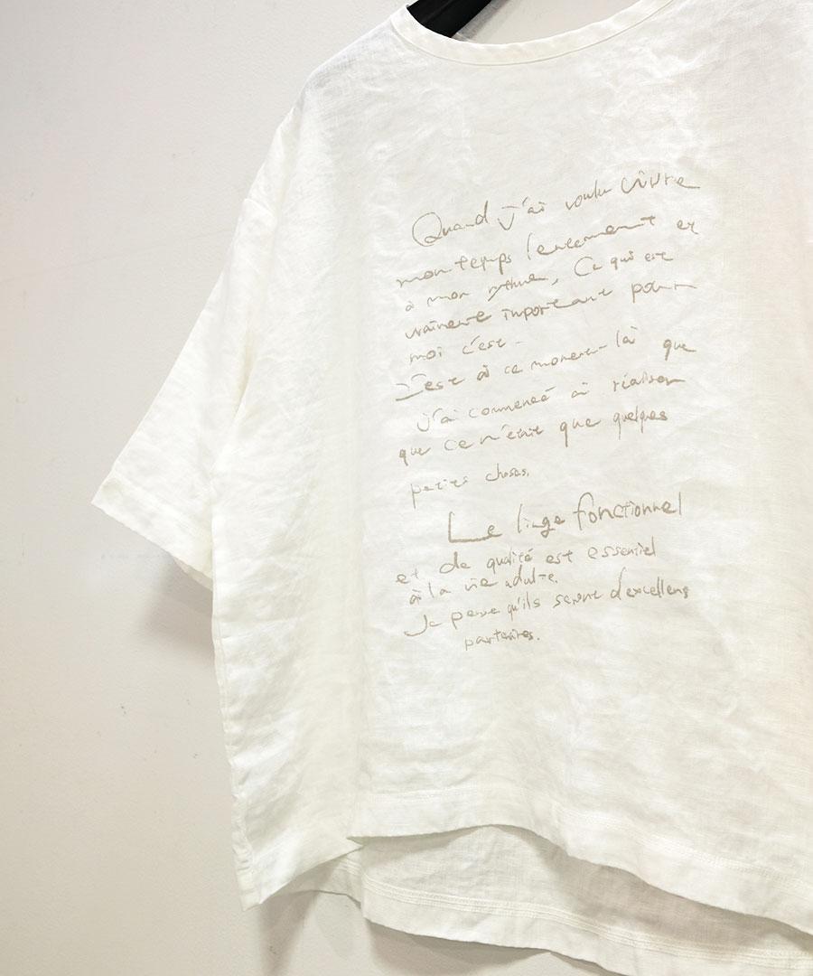 「リユールリネンを大切に着て欲しい」という思いをプリントしました。