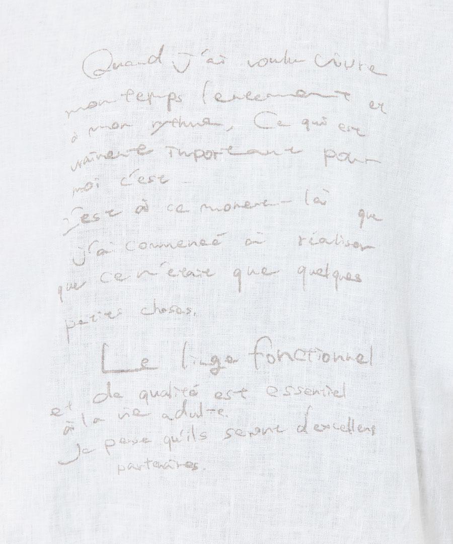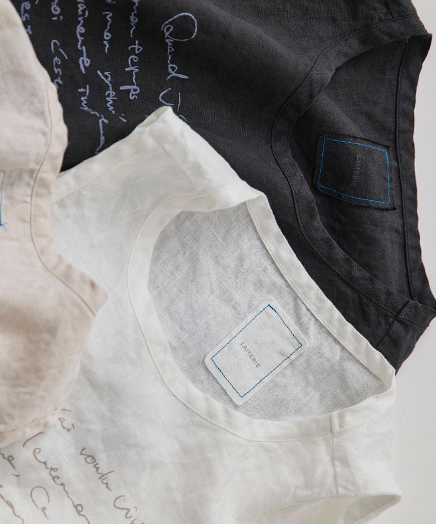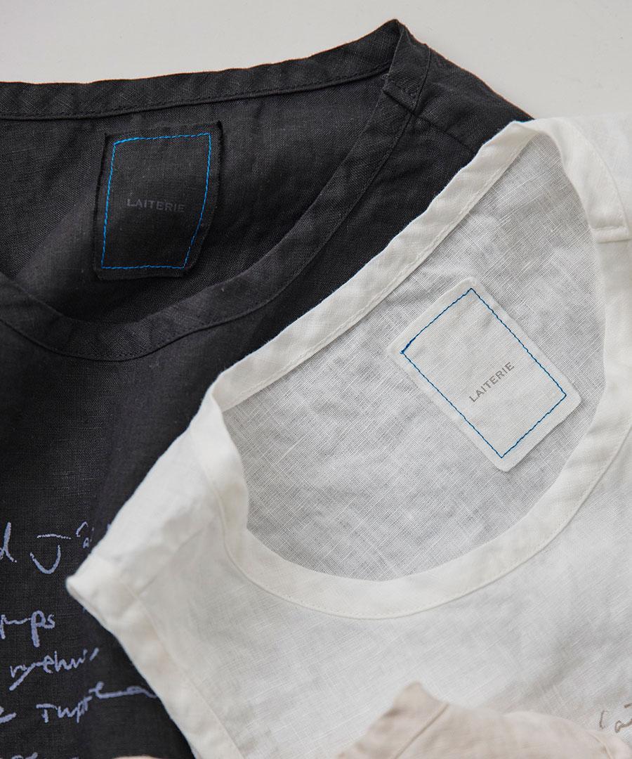 「リユールリネンを大切に着て欲しい」という思いをプリントしました。