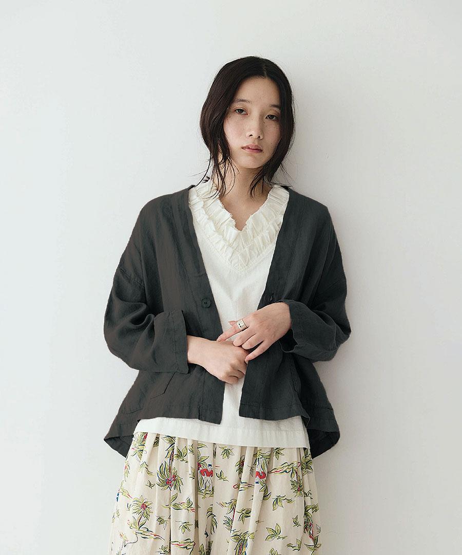 リネンは重ね着することで暖かさを持ち、オールシーズン着用できる万能な40/-のリネン素材です。