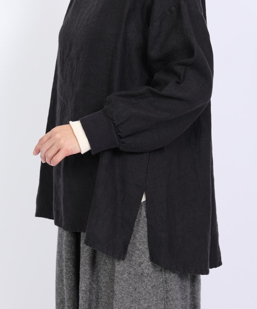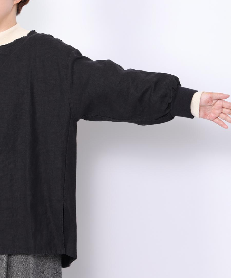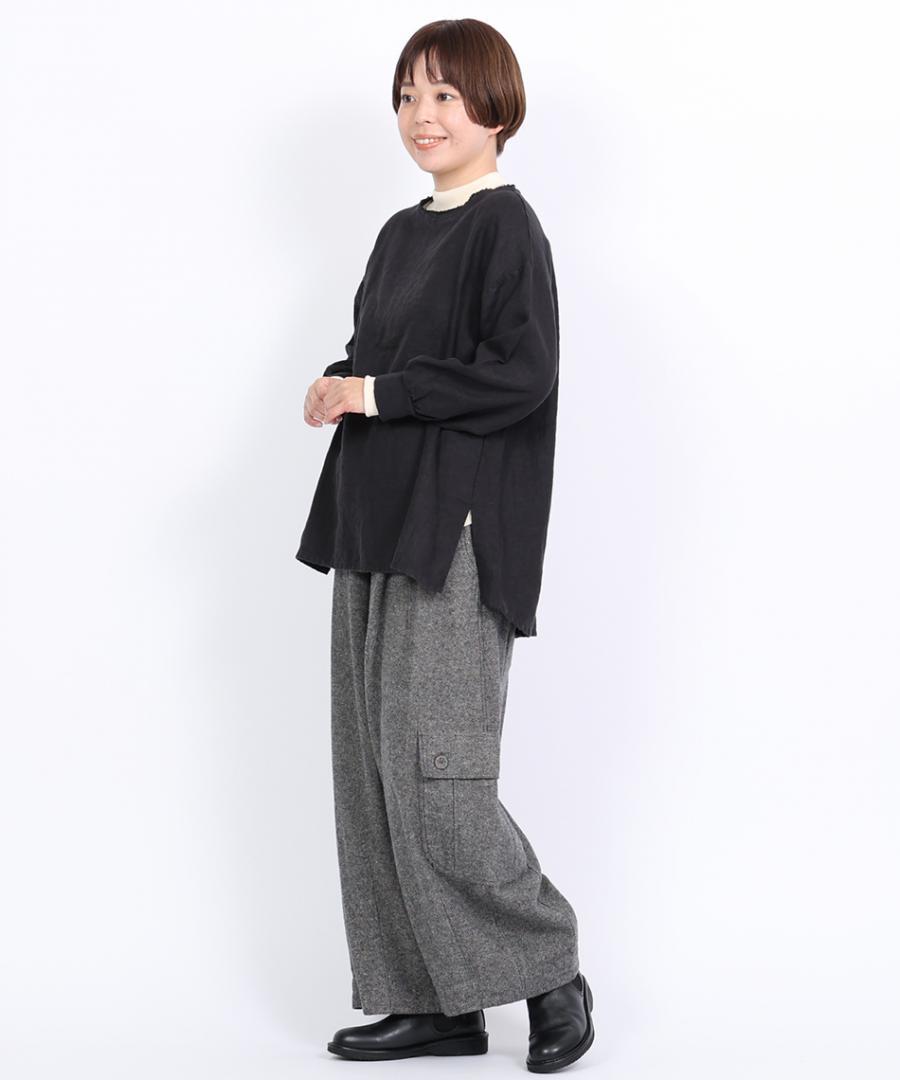 裾サイドにはスリット入りで抜け感があり、レイヤードもしやすい万能なアイテムです。
