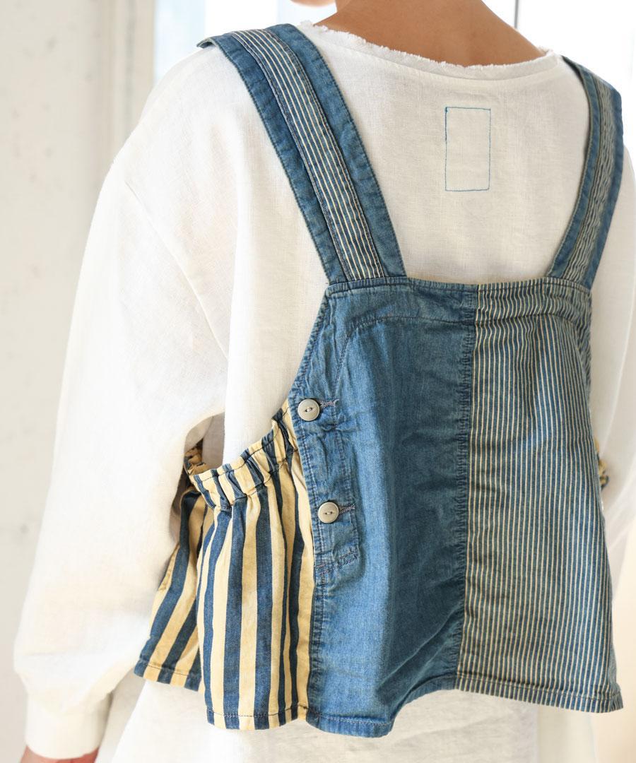 ベスト/tumugu:デニム×ヒッコリーストライプ ビスチェ