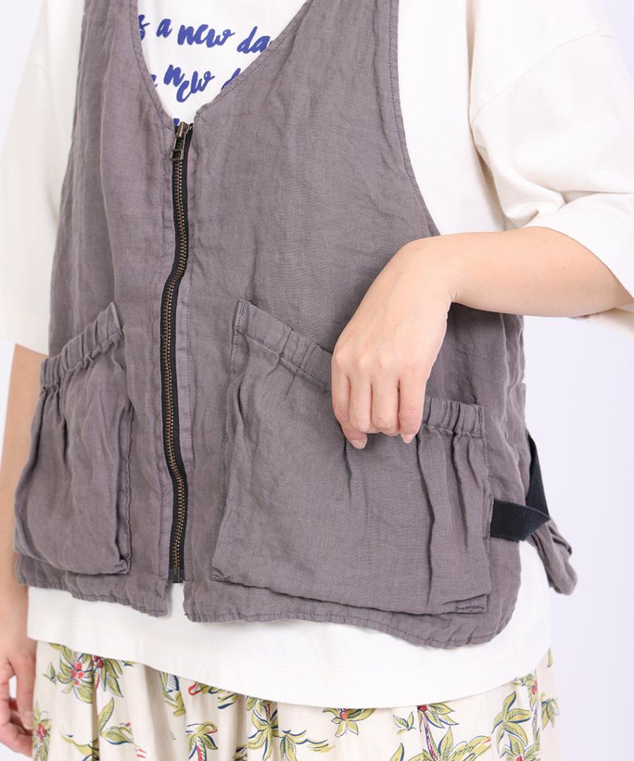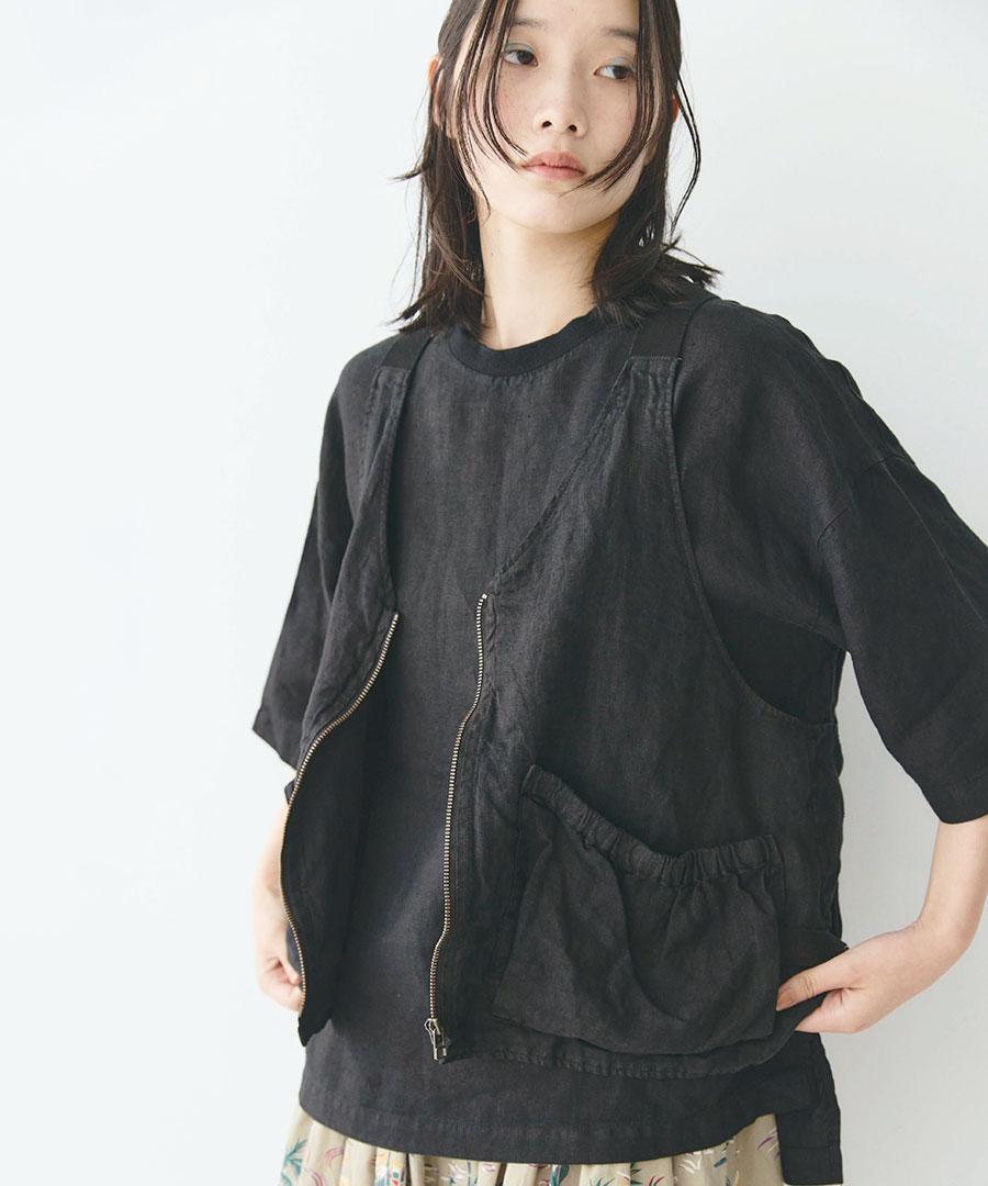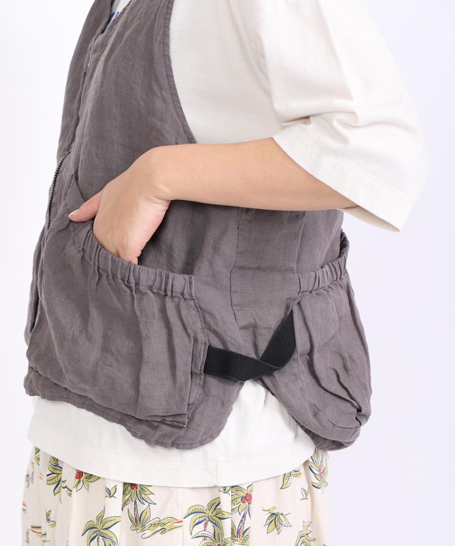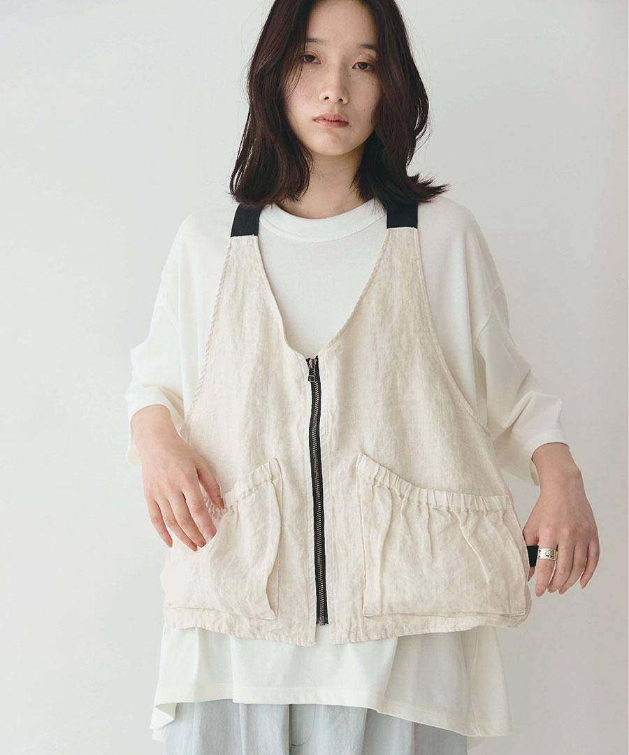 リネン素材ならではのさらっとした肌触りと、やさしい軽さのギアベスト。