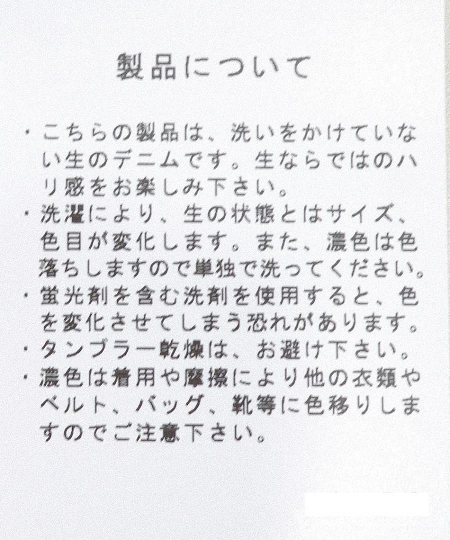 ※生デニムとは洗いをかけていないデニムの事。糊が付いている為、ハリのある状態です。