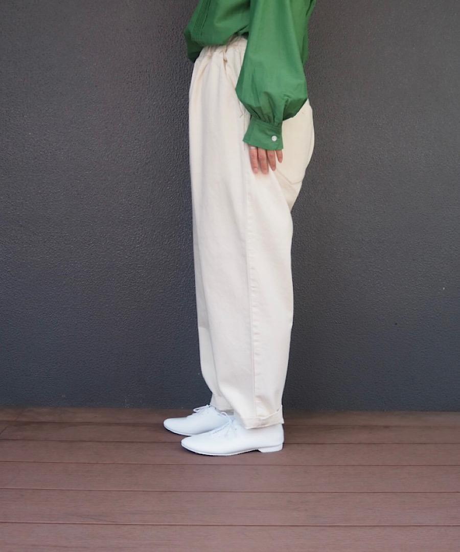 テーパードなので小柄な方もロールアップして履いていただけます。