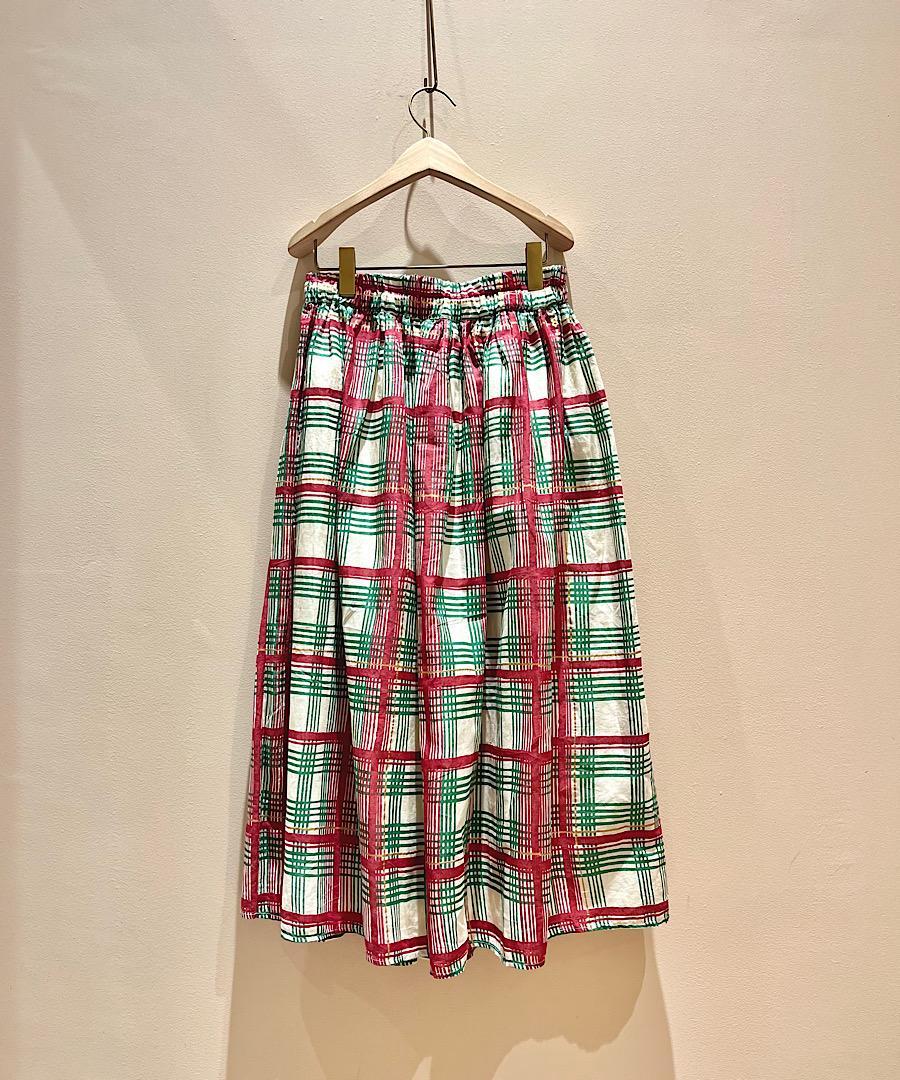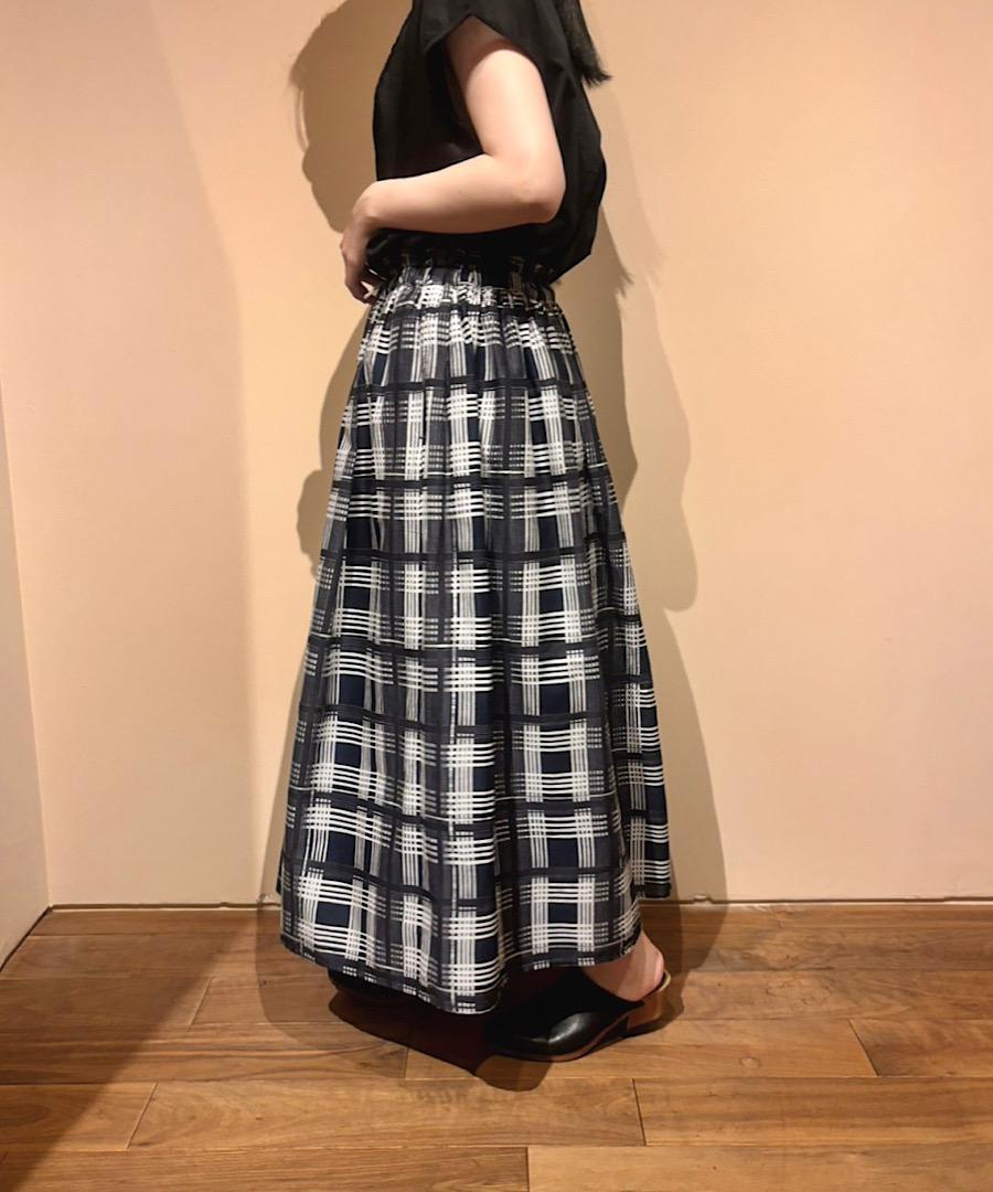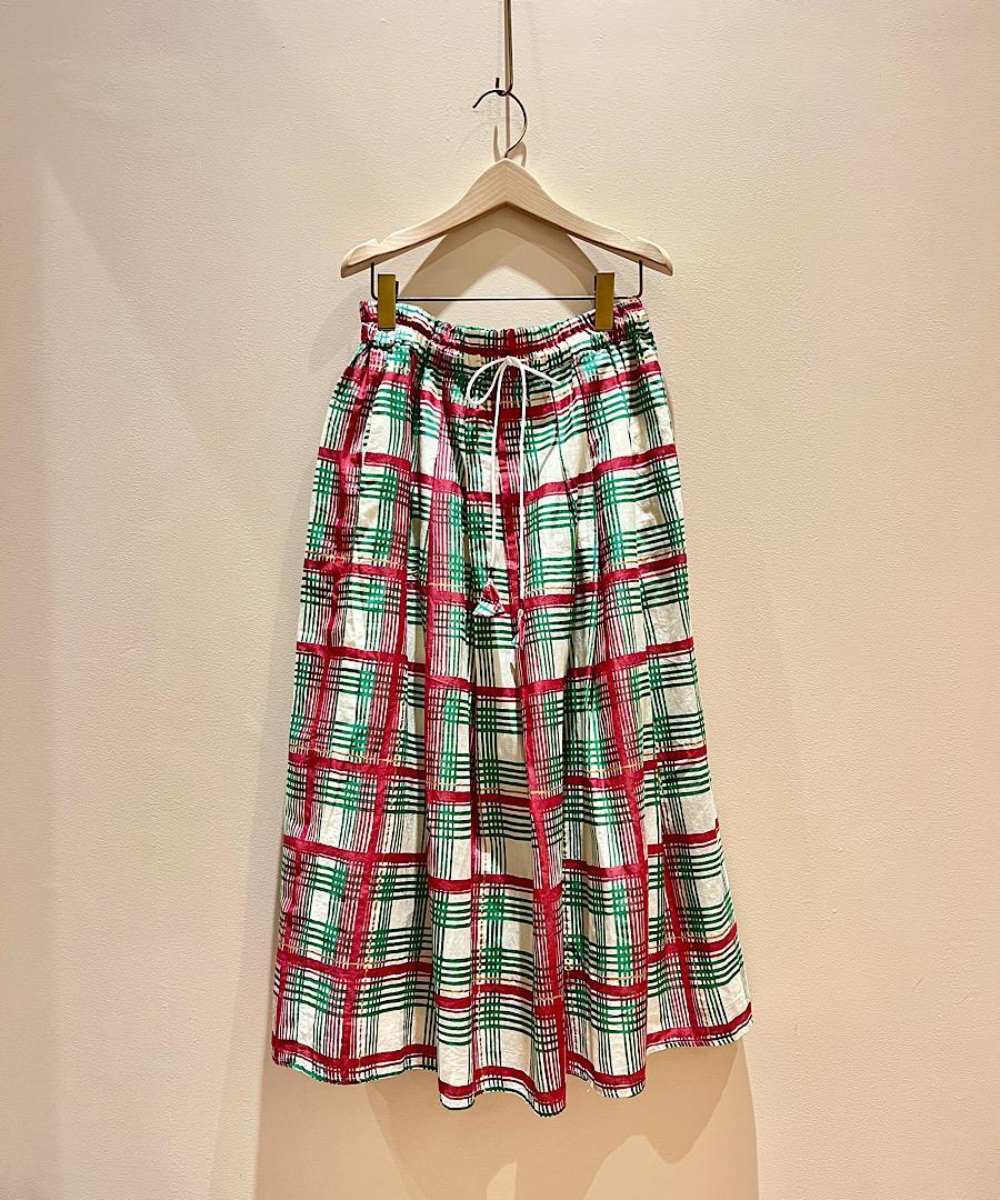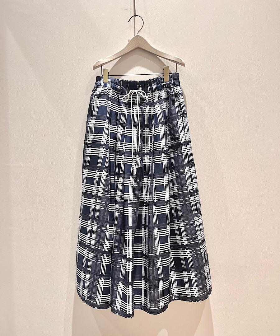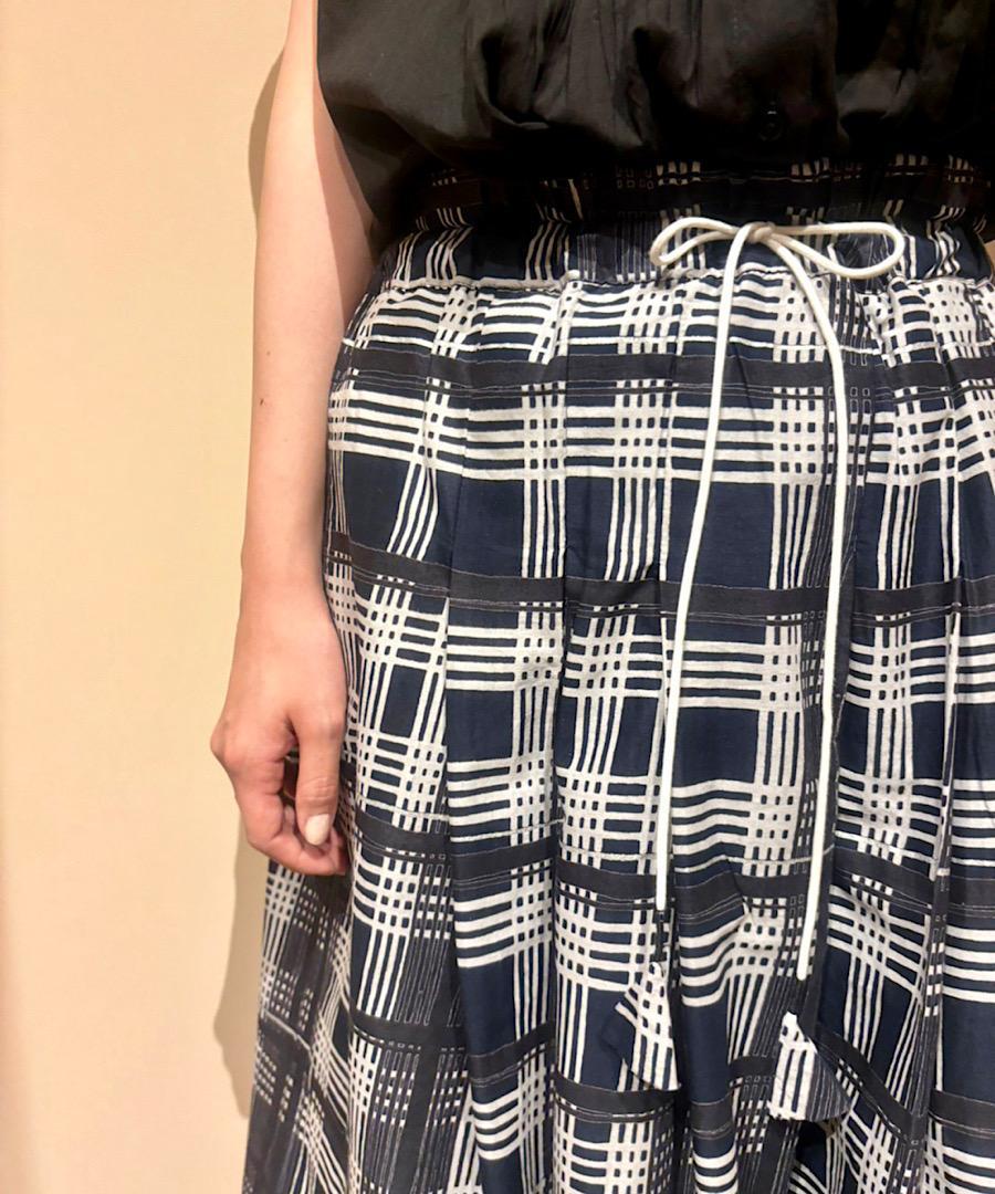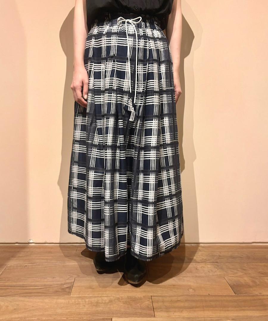 ウエストはゴムで、さらに紐で調節が可能なイージー仕様のギャザースカート。