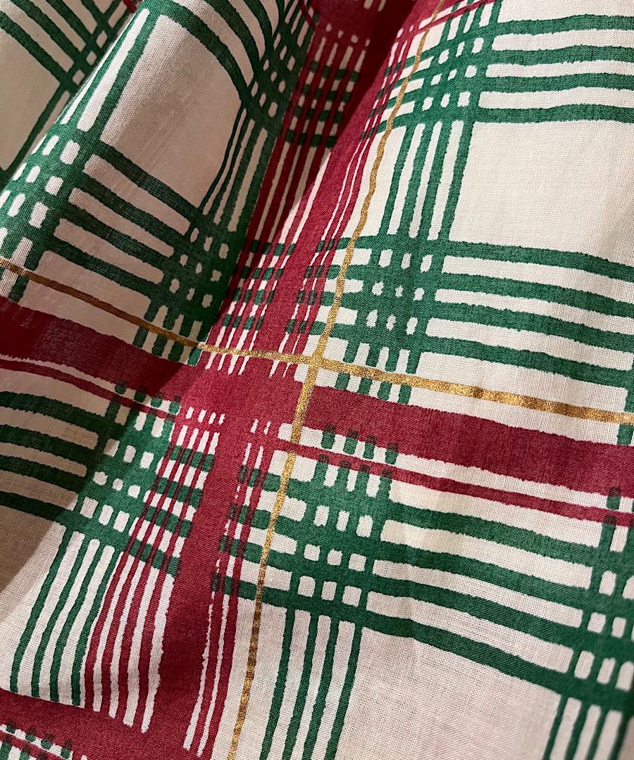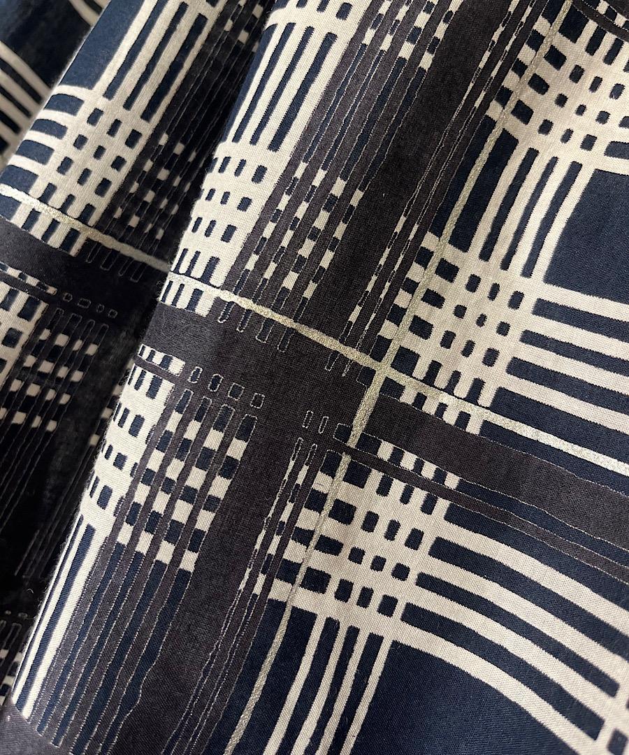 柔らかい綿ローンにオリジナルのチェック柄がプリントされた生地を使用。箔の細かいラインがアクセントになっています。