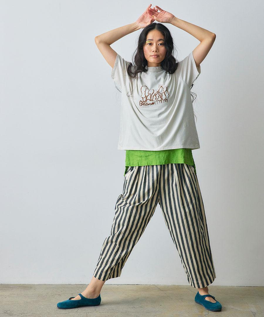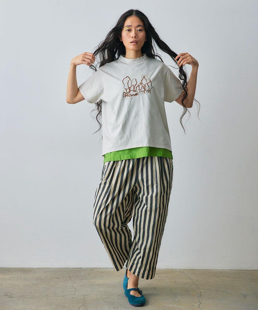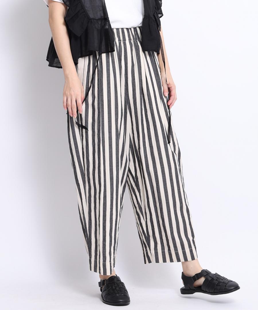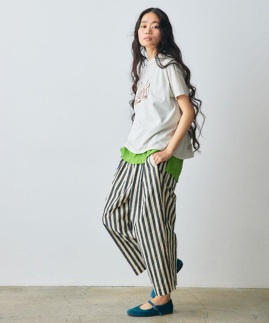 ワッシャー加工を施した肌離れのよい生地で仕立てたパンツ。