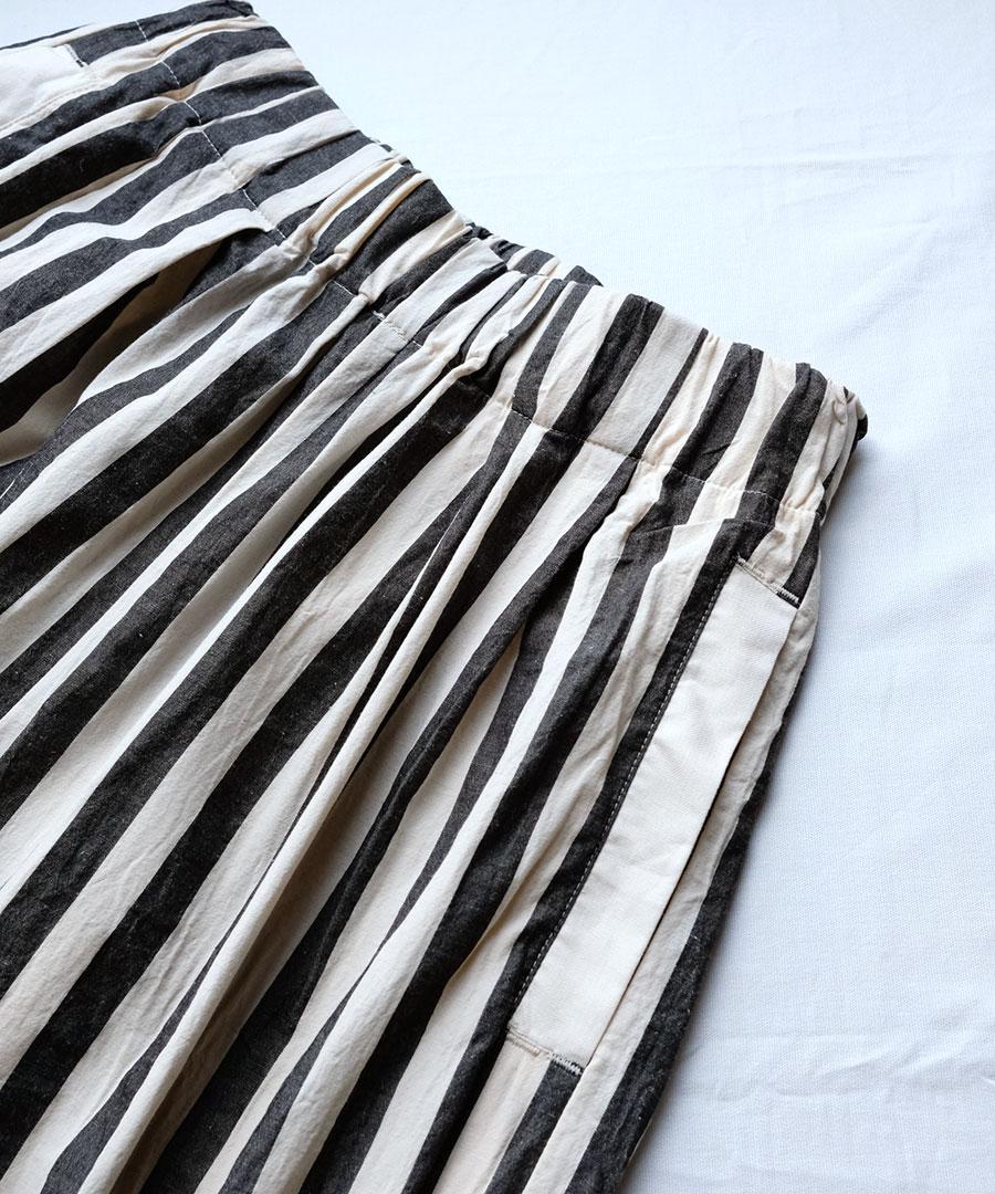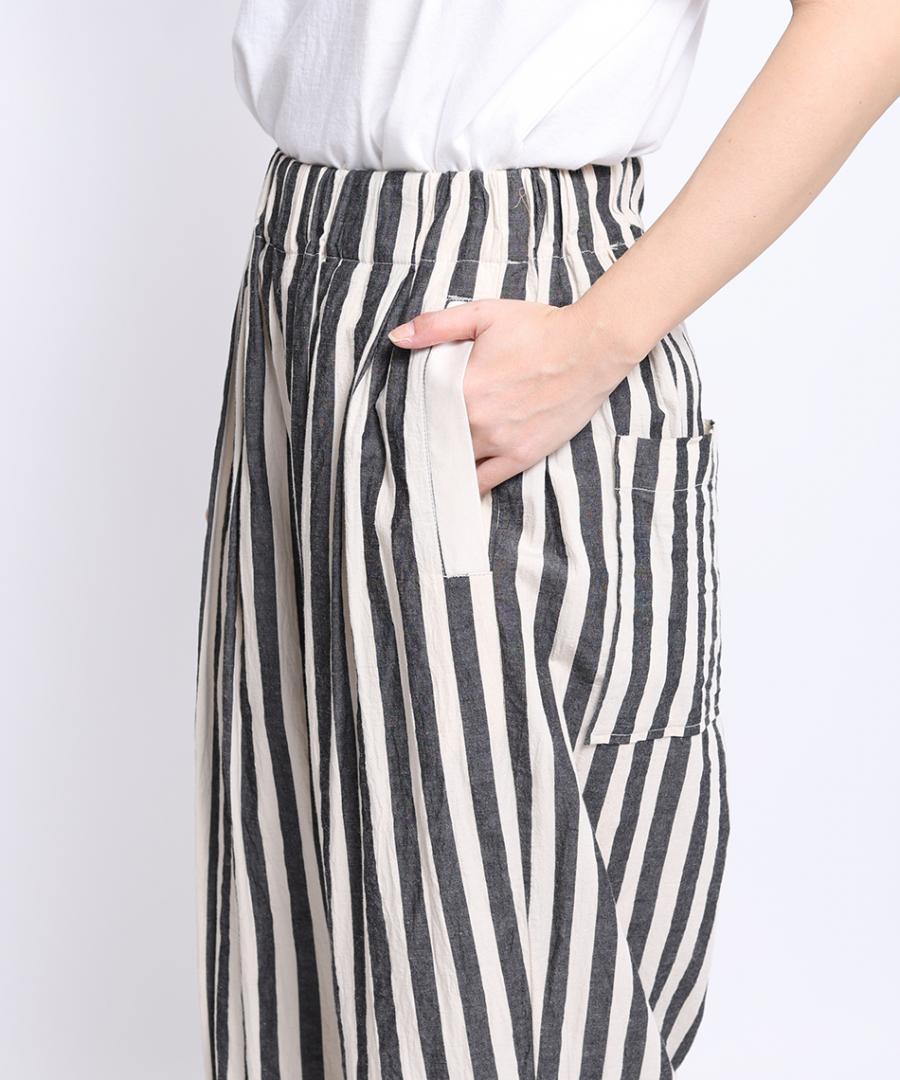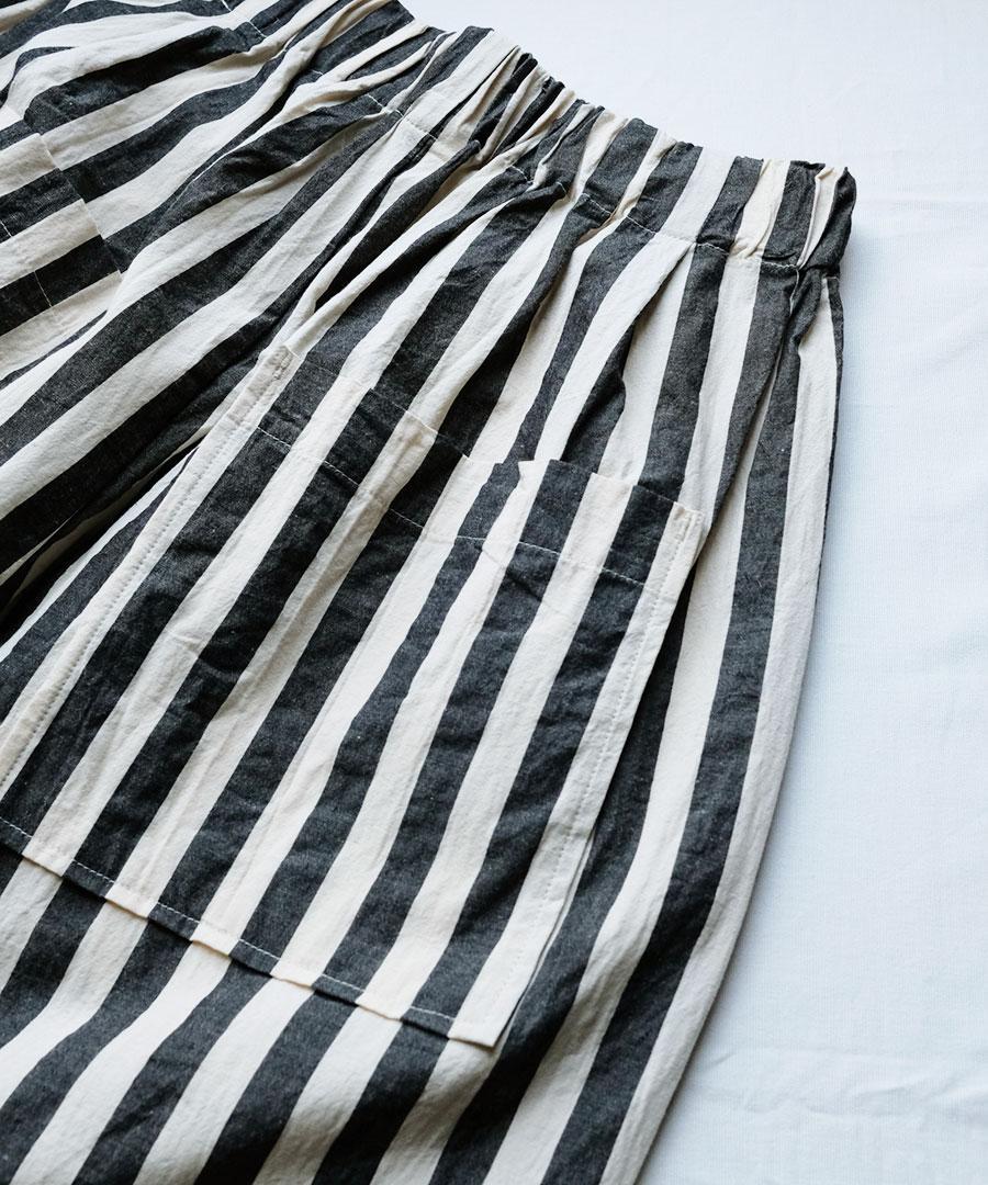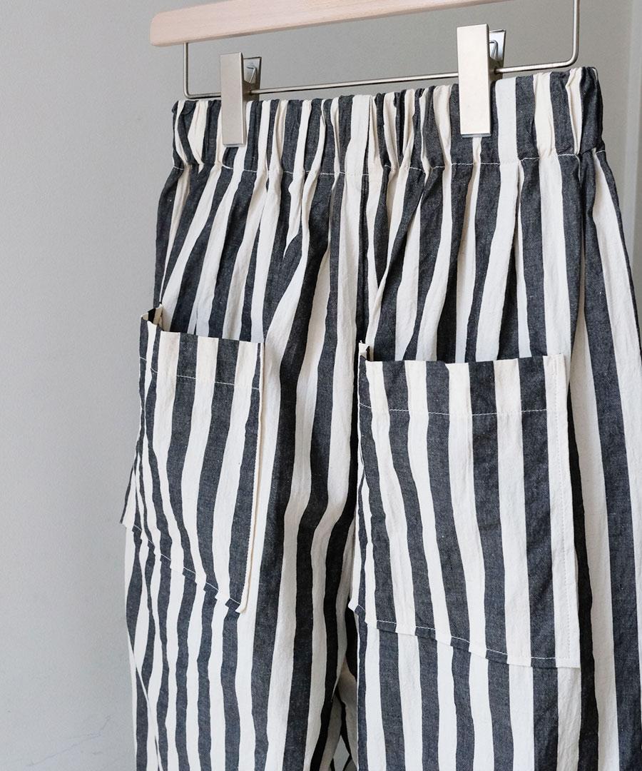 ナチュラルな風合いのストライプ生地で派手すぎず大人な雰囲気も出しつつ、